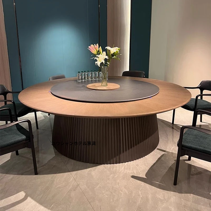 ホテル用電動岩板回転テーブル大円卓 - 天然木製、20人収容可能な新中式の商業用ダイニングテーブル。高級感あふれるデザインで、特別なひとときを演出します!