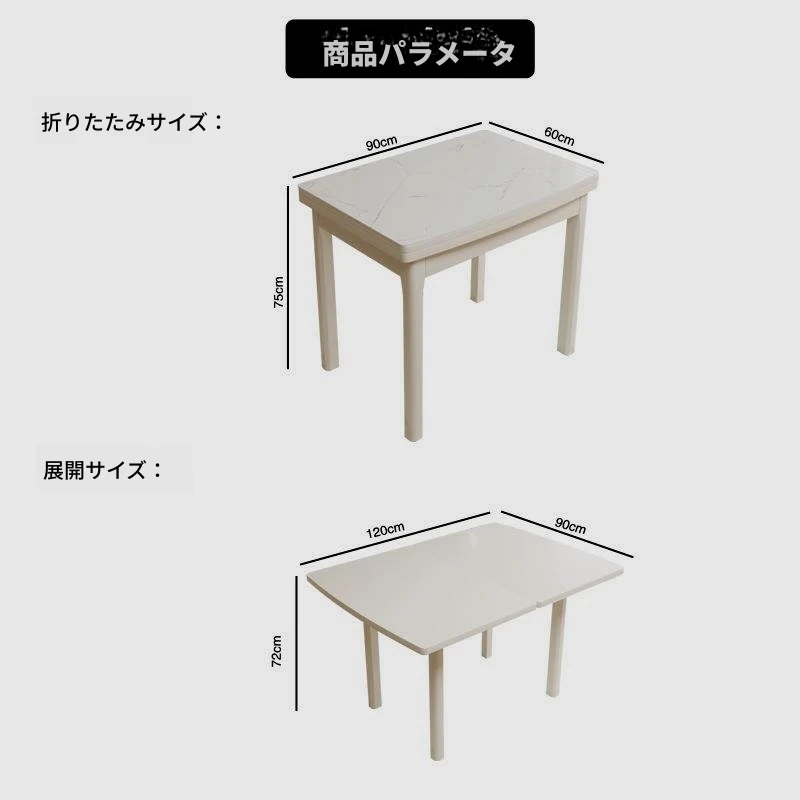高級折りたたみダイニングテーブル|小型住宅向け|移動可能な多機能デザイン|天然木製&伸縮式|サイドスタンドに最適な岩板仕様の食卓!