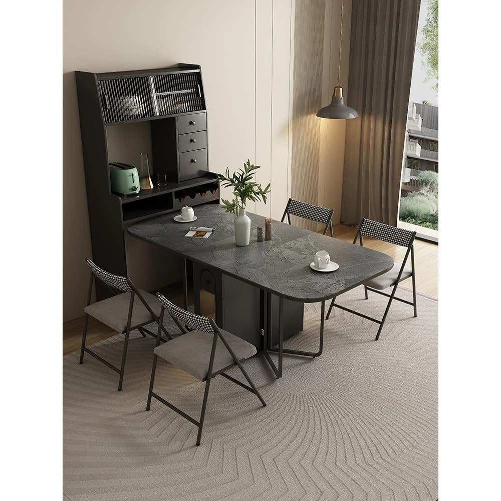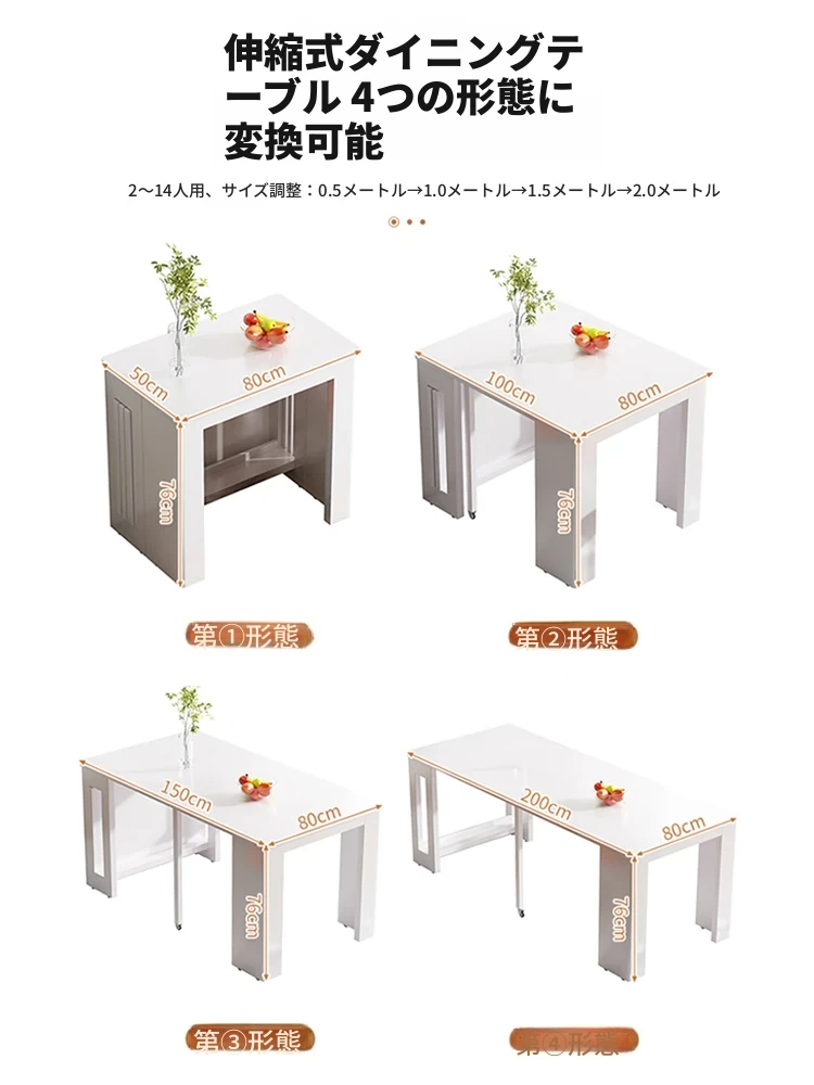 超薄折りたたみ式実木ダイニングテーブル - 小型住宅に最適な多機能デザイン、現代的でシンプル、伸縮可能な岩板テーブルで、家族団らんのひとときを演出します!