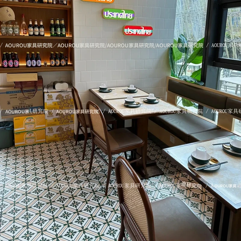 フレンチスタイルの実木岩板テーブル&チェアセット|おしゃれなカフェやタピオカスイーツ店にぴったり!インテリアを引き立てるデザインで、居心地の良い空間を演出します。