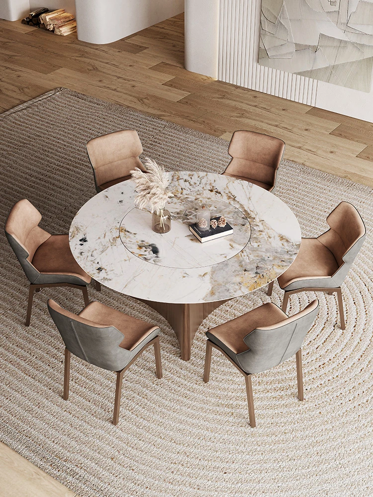 高級感溢れるパンドラ岩板製の円形ダイニングテーブル!小型住宅に最適な埋め込み式で、回転プレート付き。最大6人まで対応可能な、洗練されたデザインのダイニングセットで、食卓を華やかに演出します。