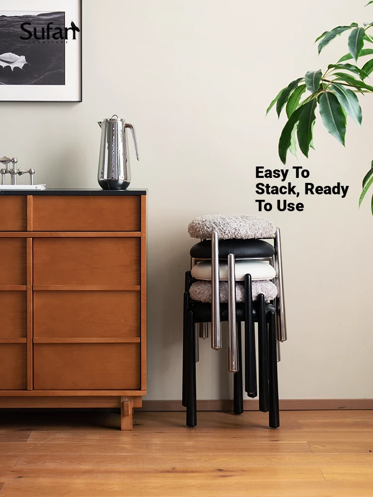 Shufan Shaon Multi-Functional Stacking Stool - Elegant Stainless Steel & Leather Upholstered Dining & Makeup Stool for Home Use