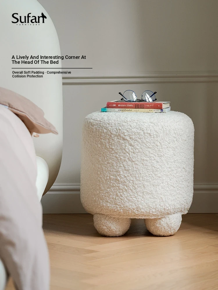 Shufan Lambswool Pouf - Elegant French Style Seating for Living Room, Bedroom, Bedside, or as a Cozy Footstool - Perfect Accent for Your Home Décor
