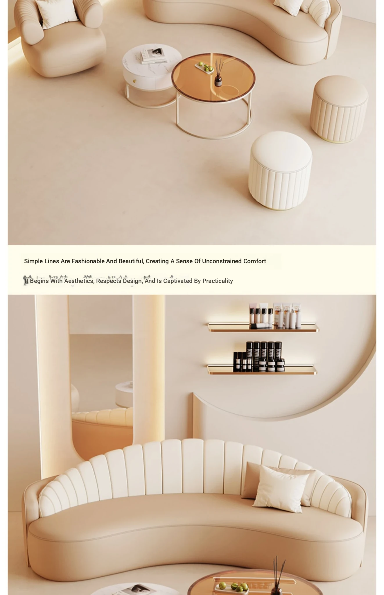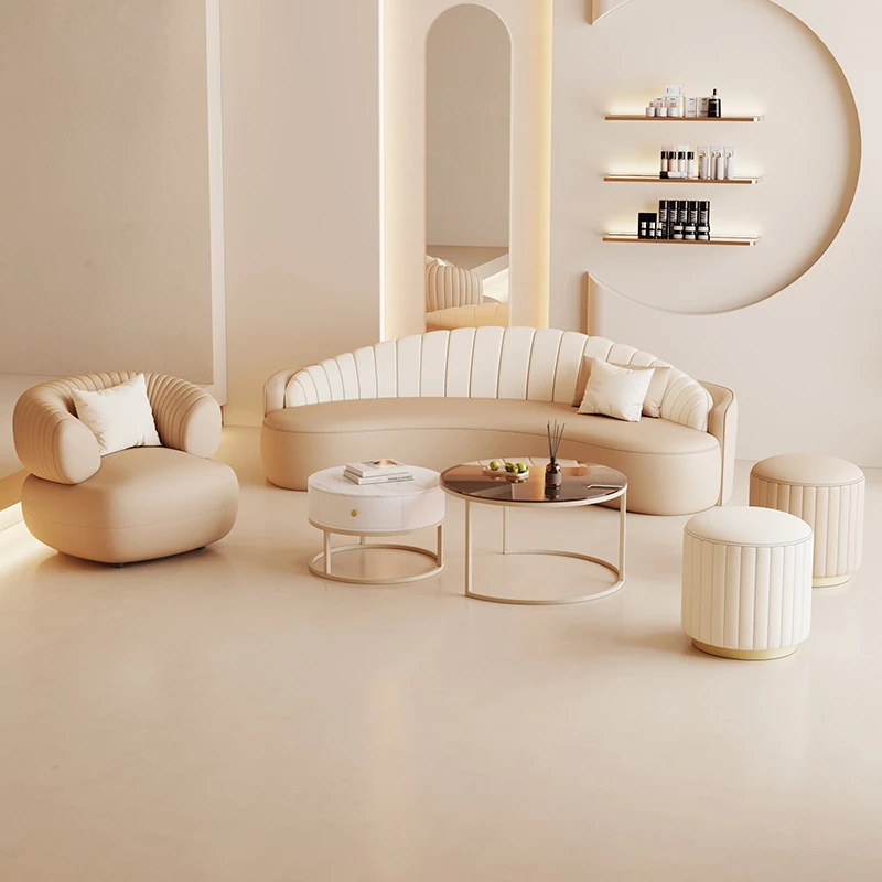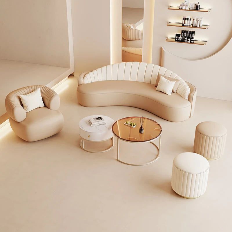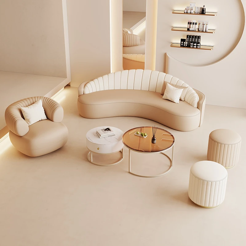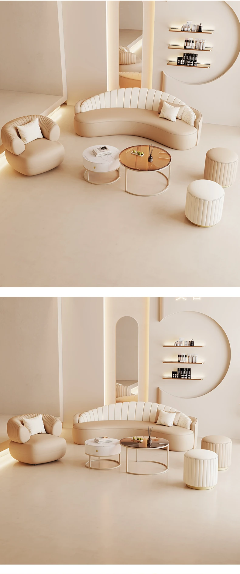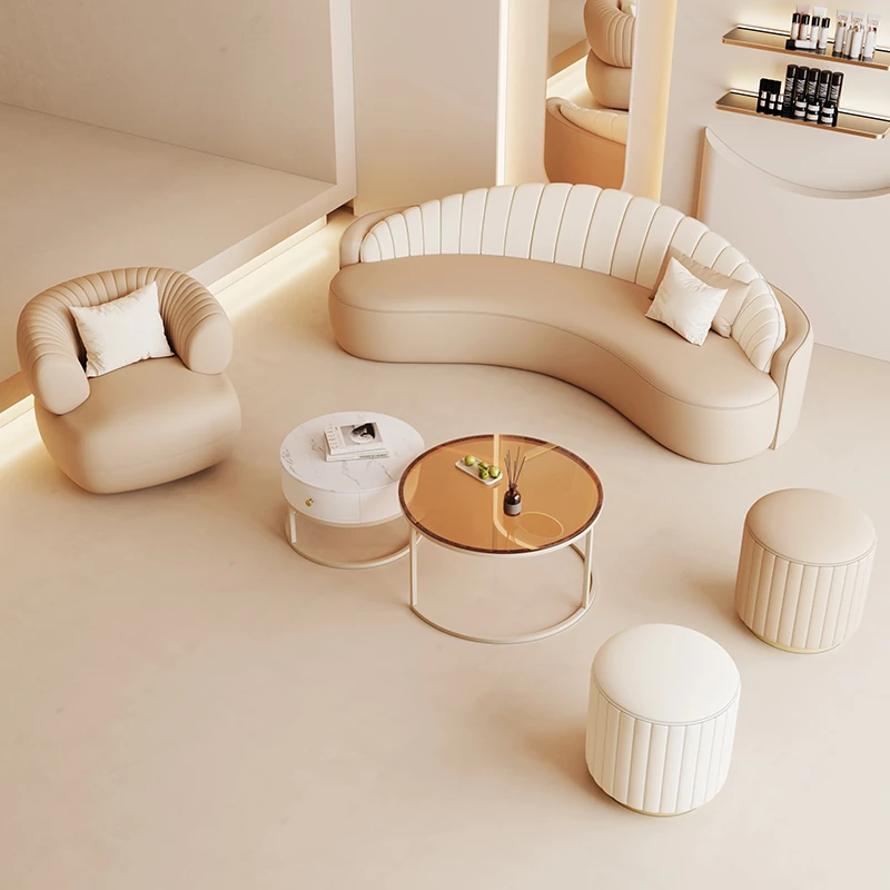Creamy Curved Sofa for Beauty Salons, Reception Areas, Clothing Stores, Wedding Dress Shops, and Small Spaces - Stylish and Unique Design for Modern Interiors