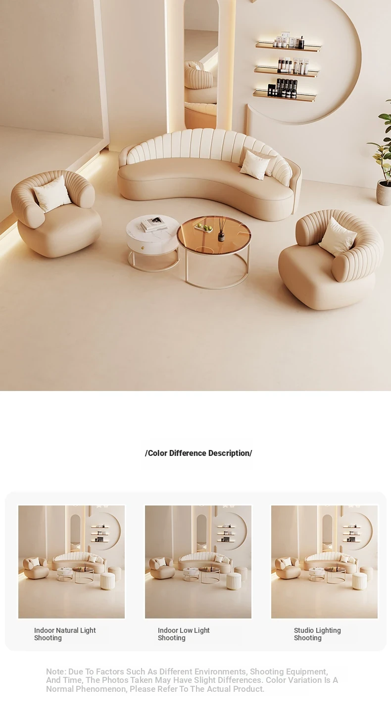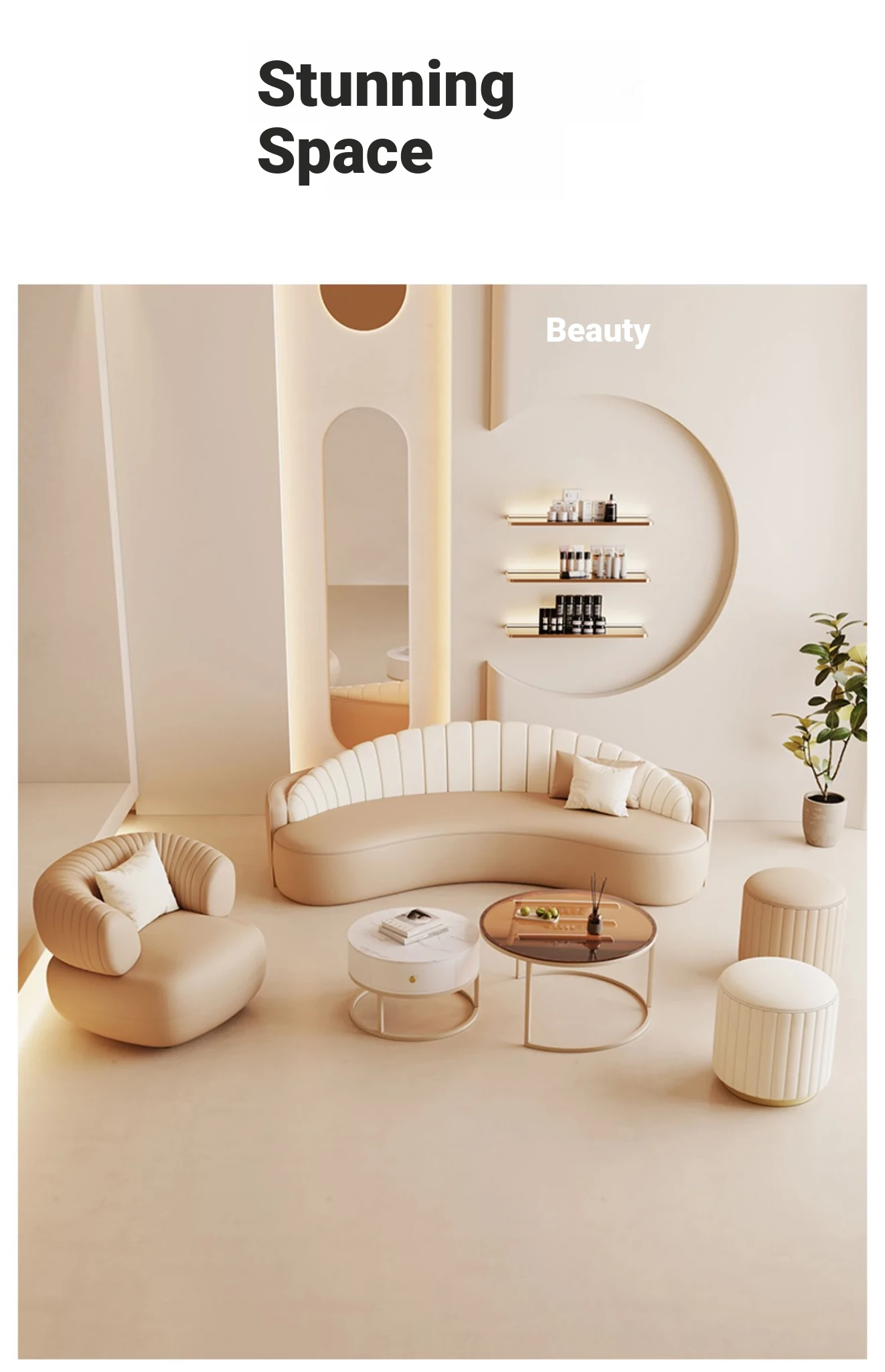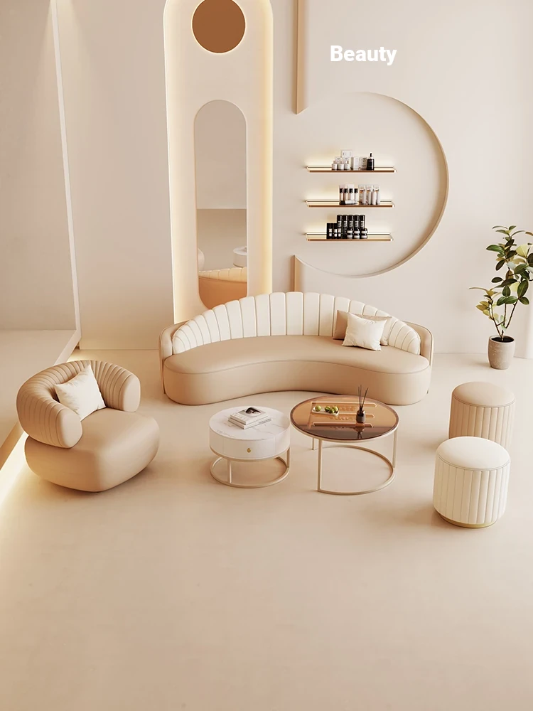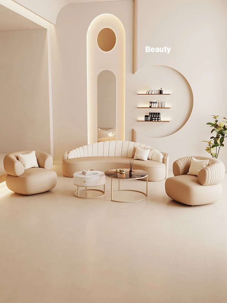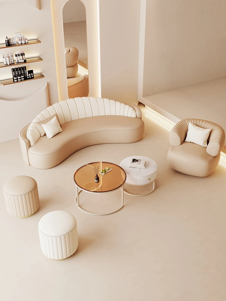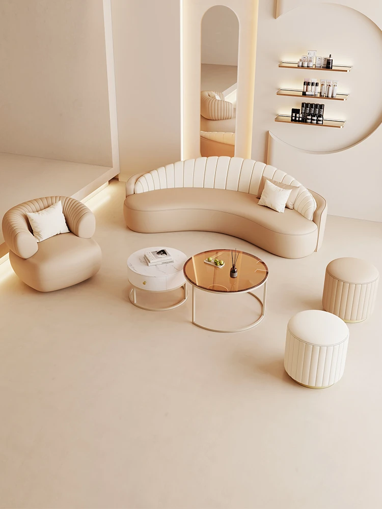 Creamy Curved Sofa for Beauty Salons, Reception Areas, Clothing Stores, Wedding Dress Shops, and Small Spaces - Stylish and Unique Design for Modern Interiors
