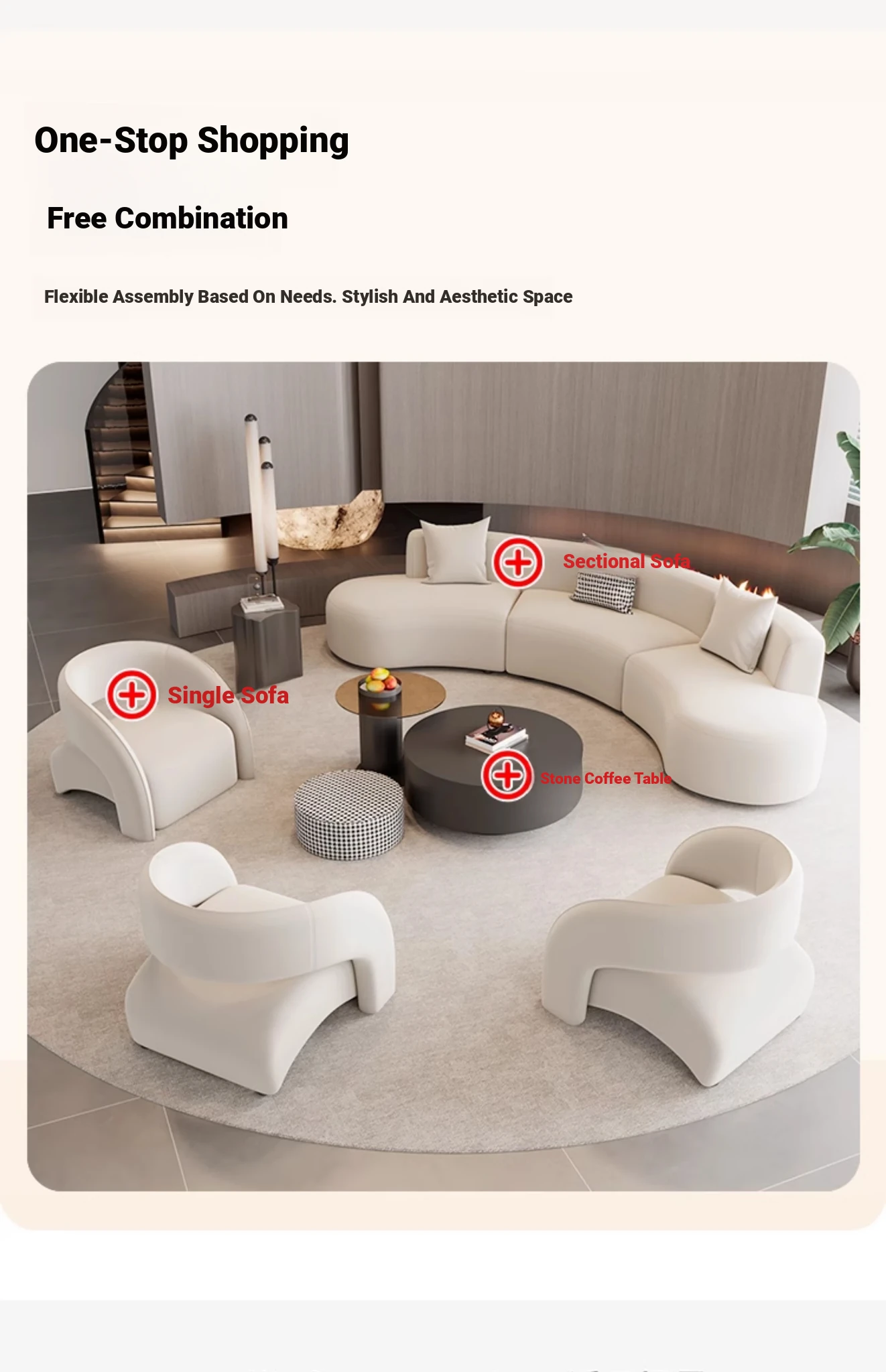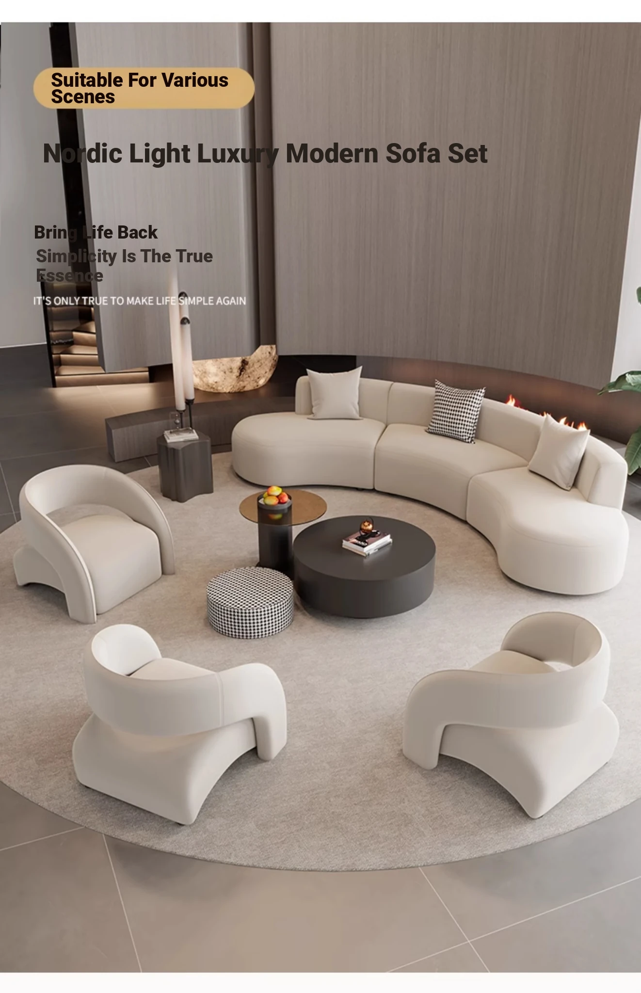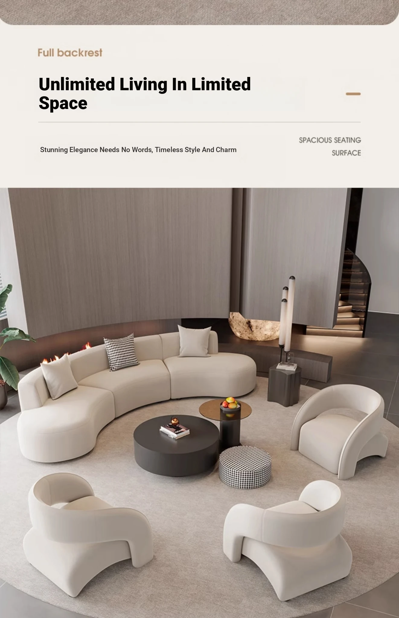 Elegant Curved Sofa and Coffee Table Set for Beauty Salons, Hotels, and Reception Areas - Perfect for Lounges, Meeting Rooms, and Corner Reception Spaces.
