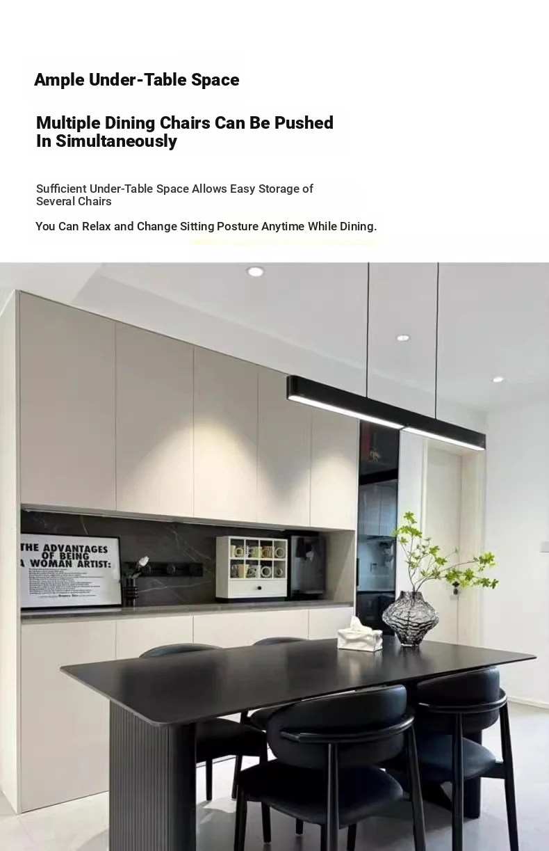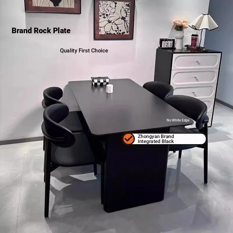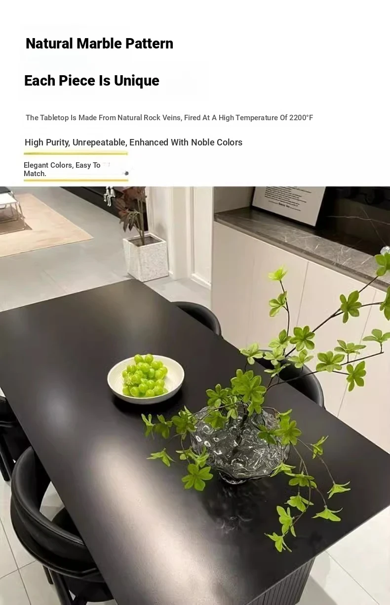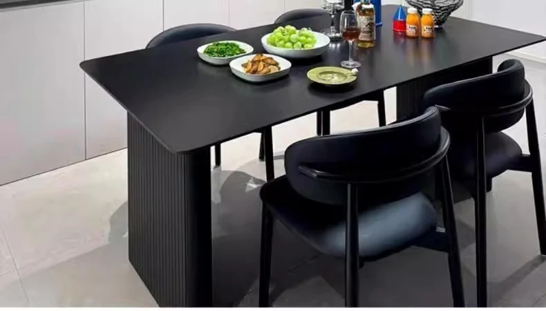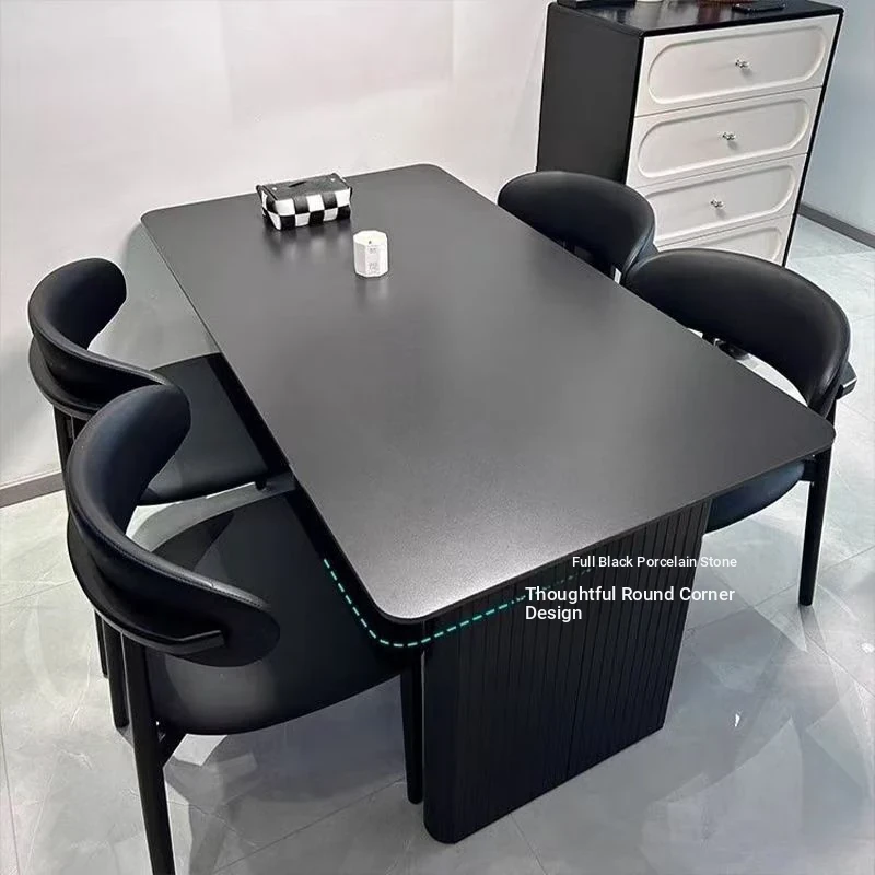 Italian High-End Matte Black Modern Dining Table - Elegant Rectangular Design for Small Spaces, Complete with Dining Chairs - Perfect for Home Use