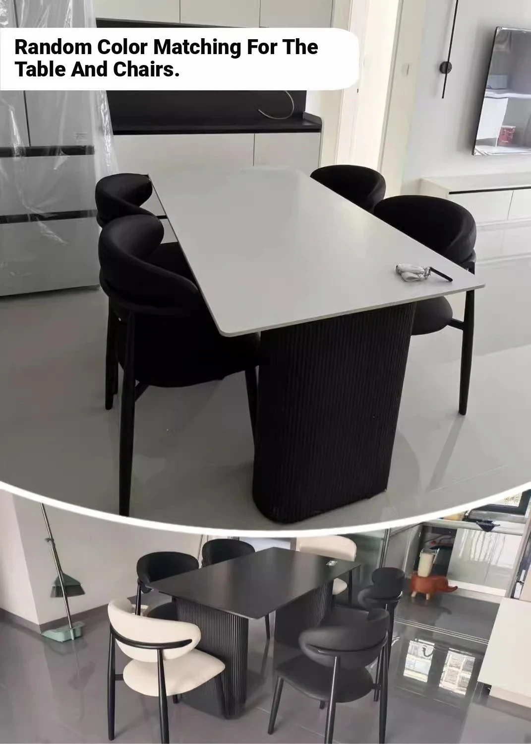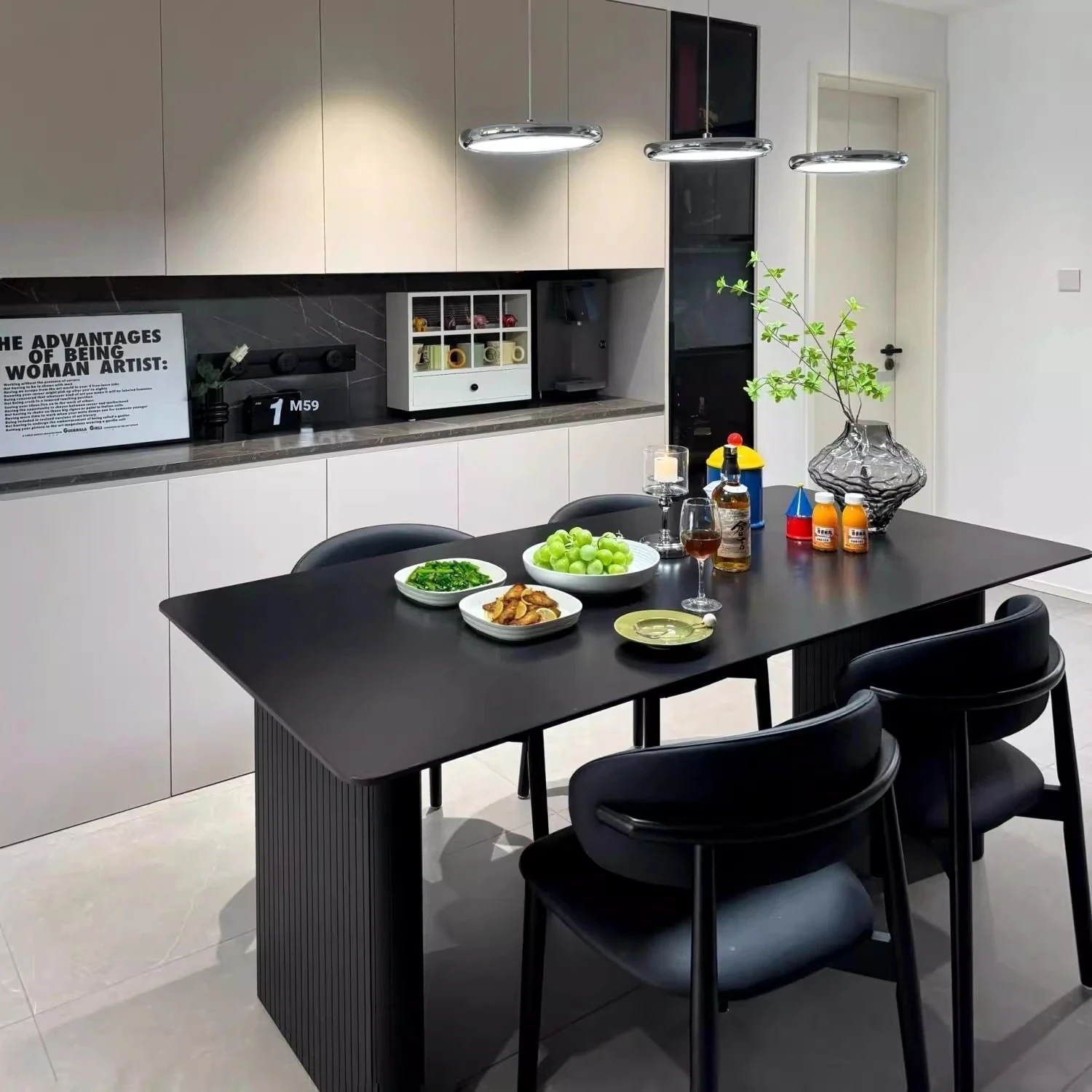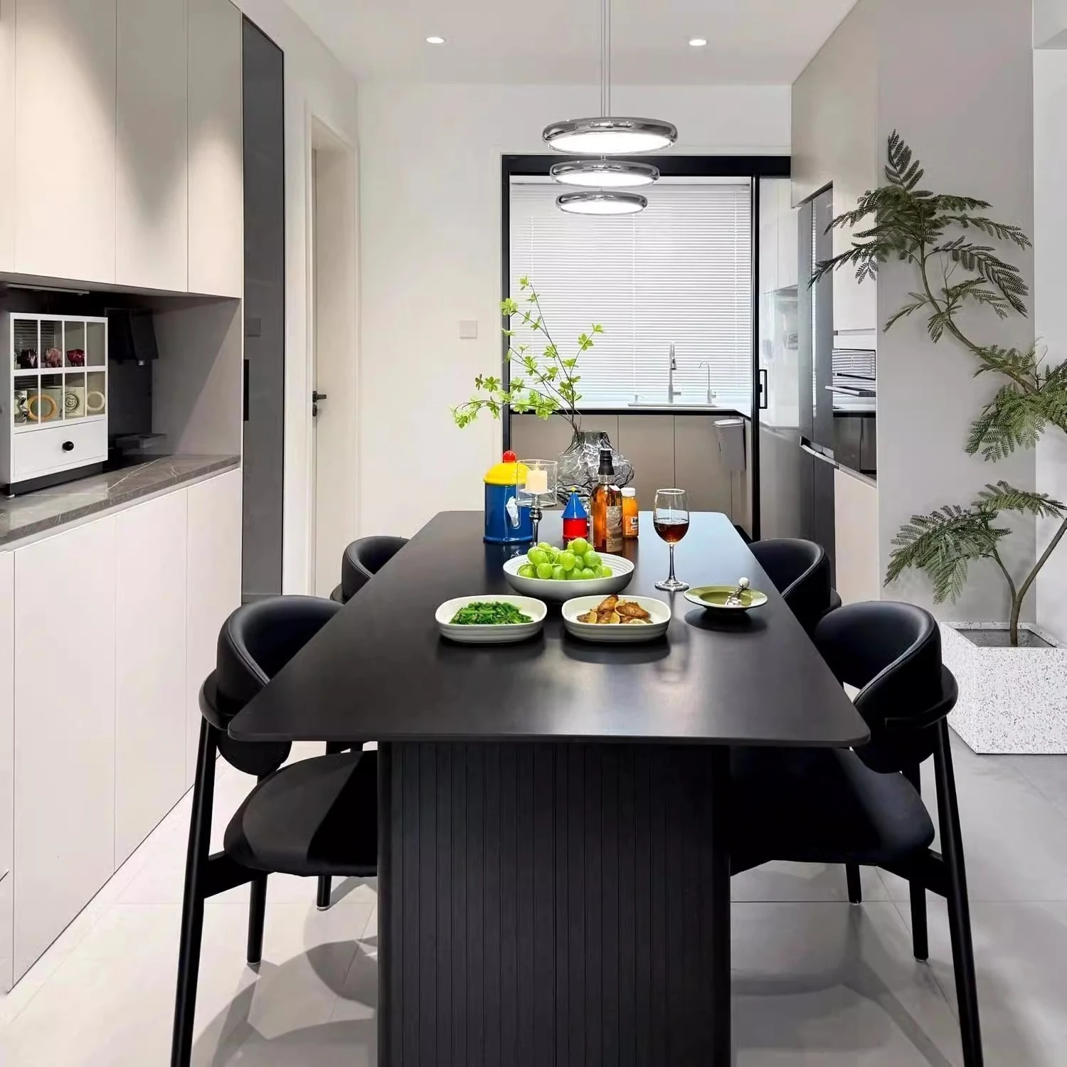 Italian High-End Matte Black Modern Dining Table - Elegant Rectangular Design for Small Spaces, Complete with Dining Chairs - Perfect for Home Use