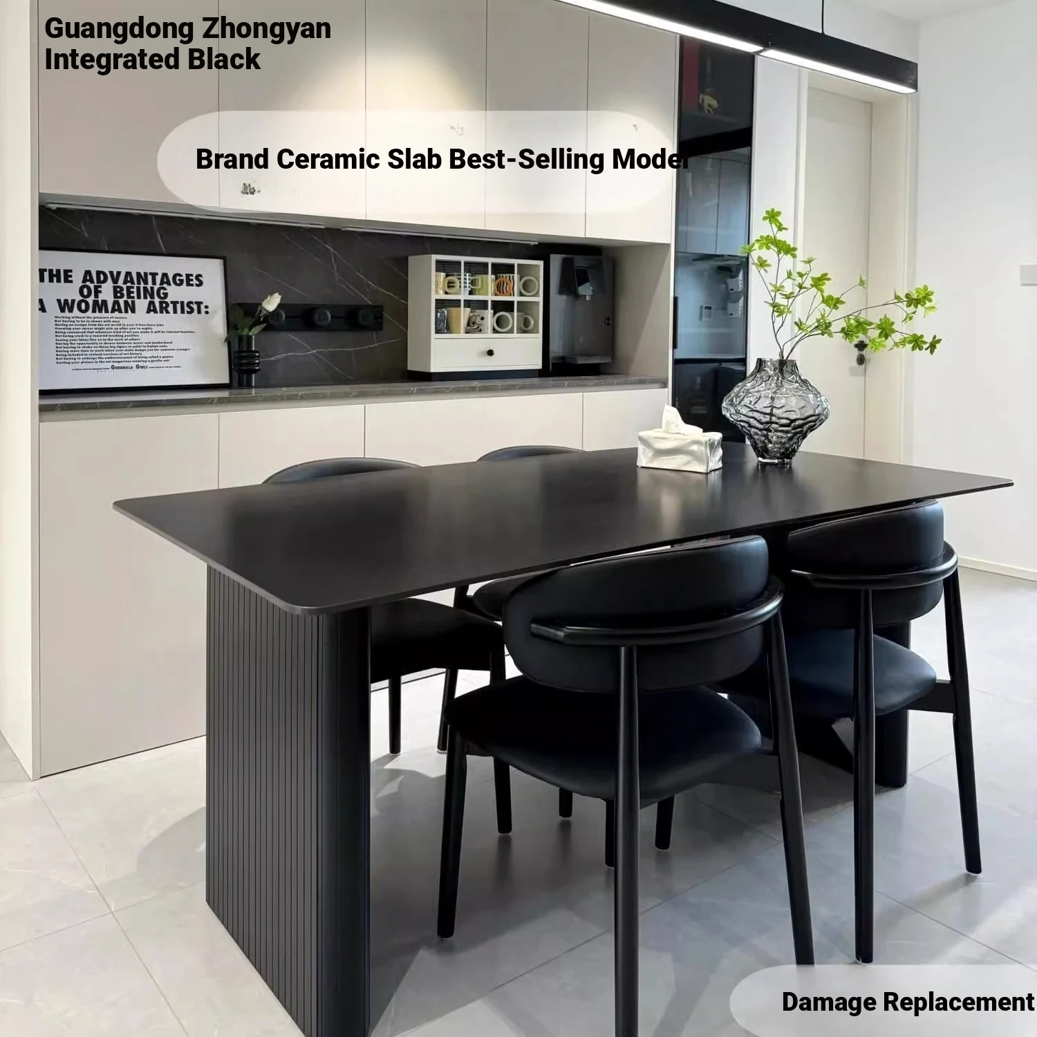 Reinforced Black U Design [Preferential] 78.74in*31.50in Rock Plate Dining Table + Four Corner Chairs