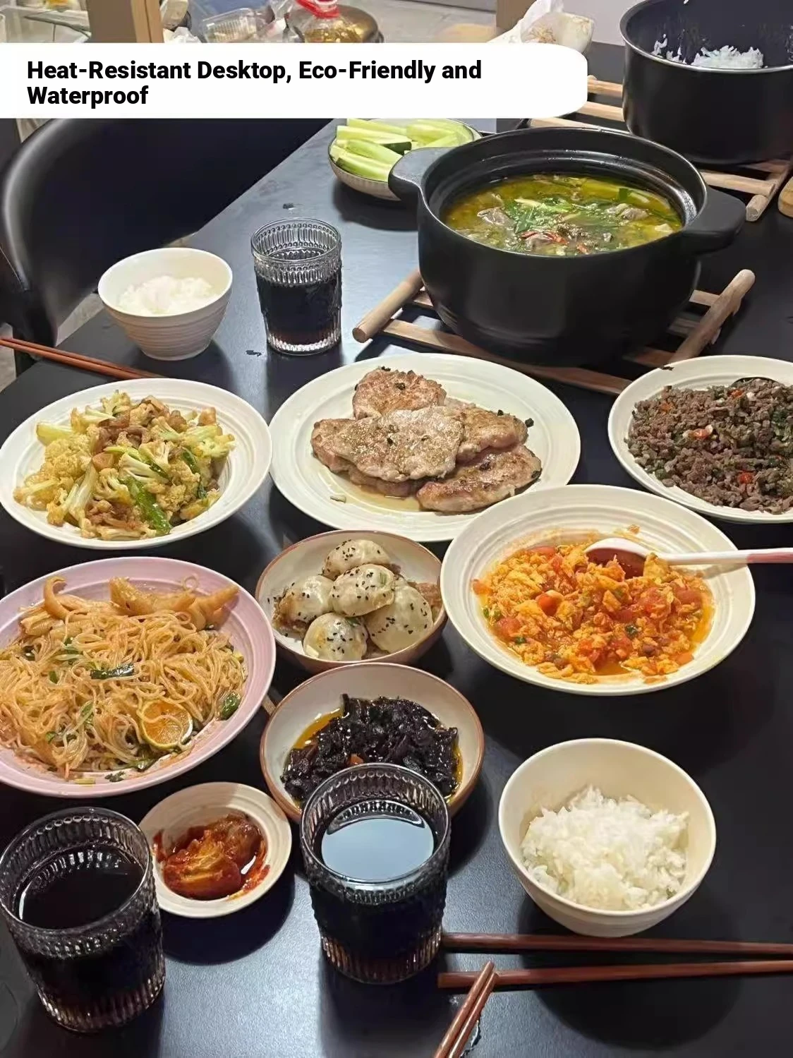 Reinforced black U design [special offer] 51.18in*27.56in rock plate single dining table