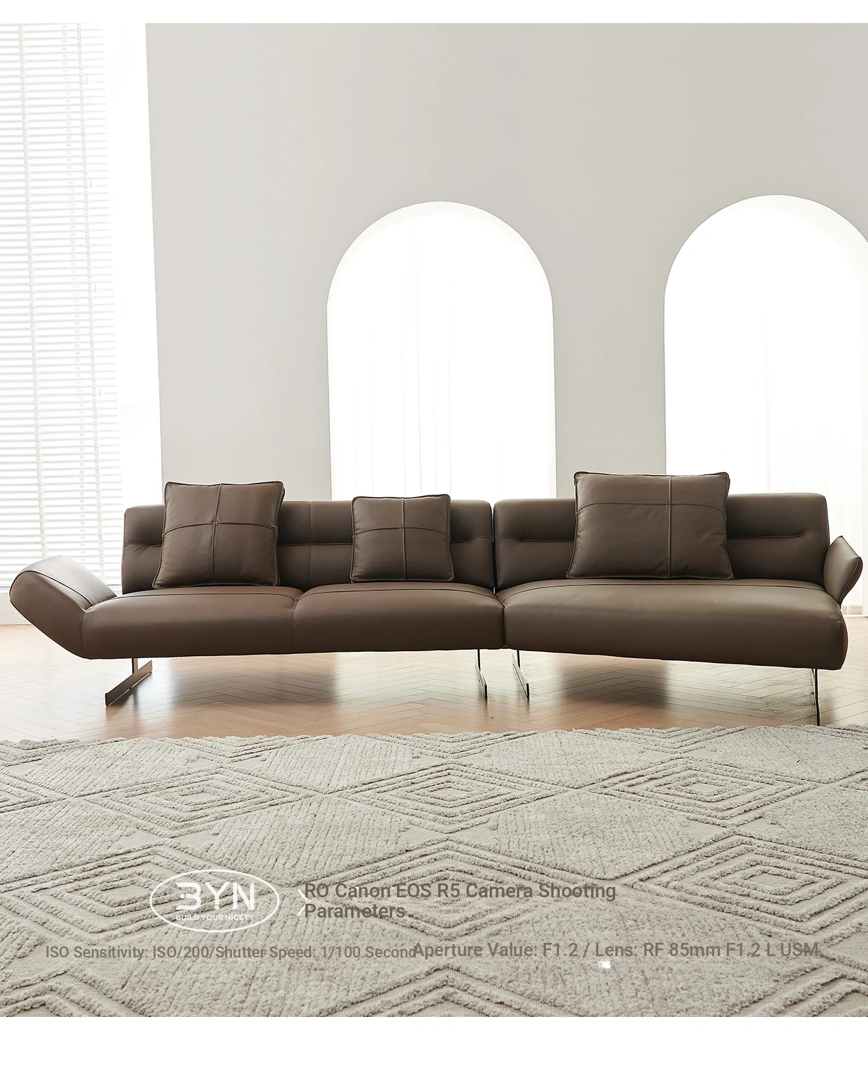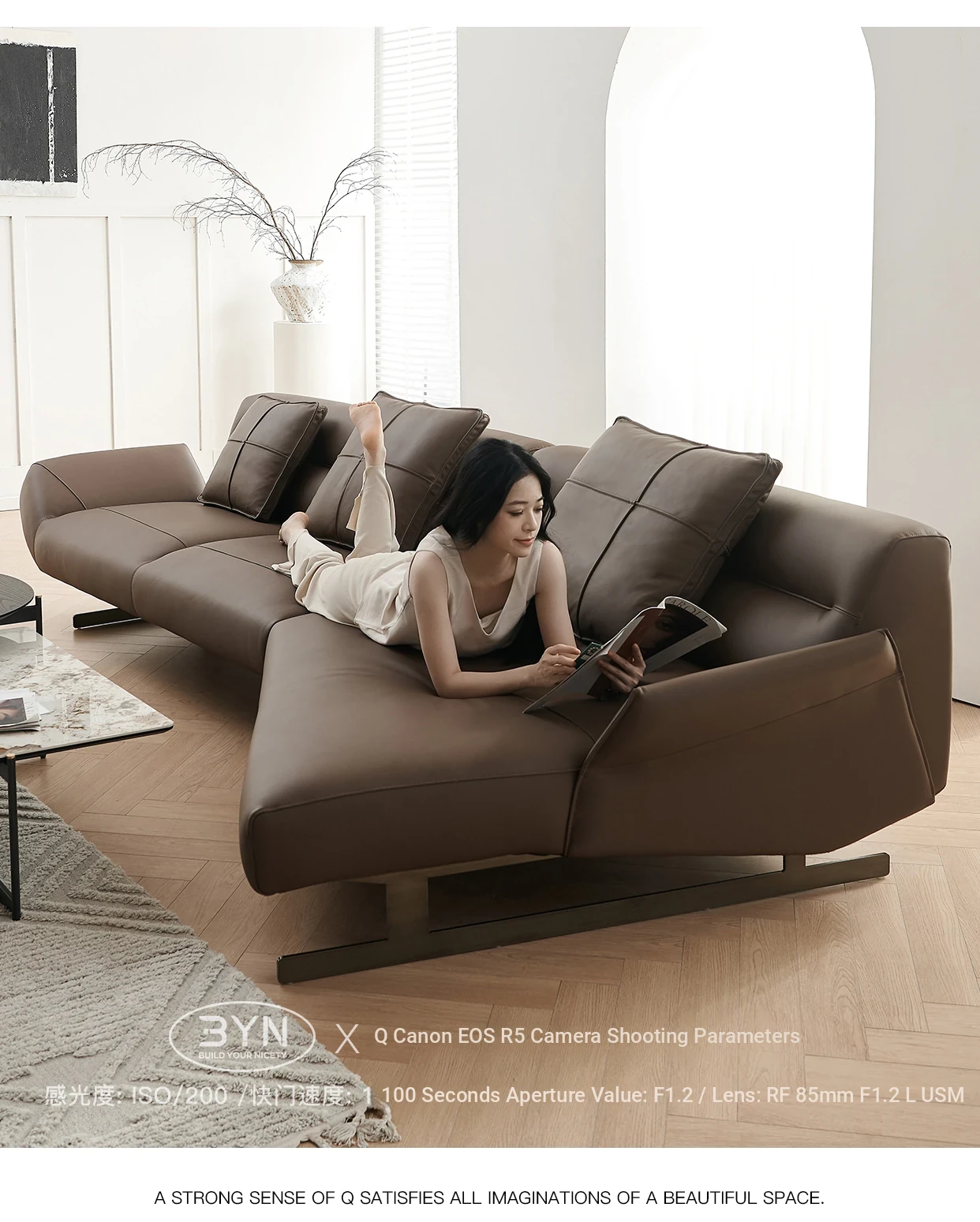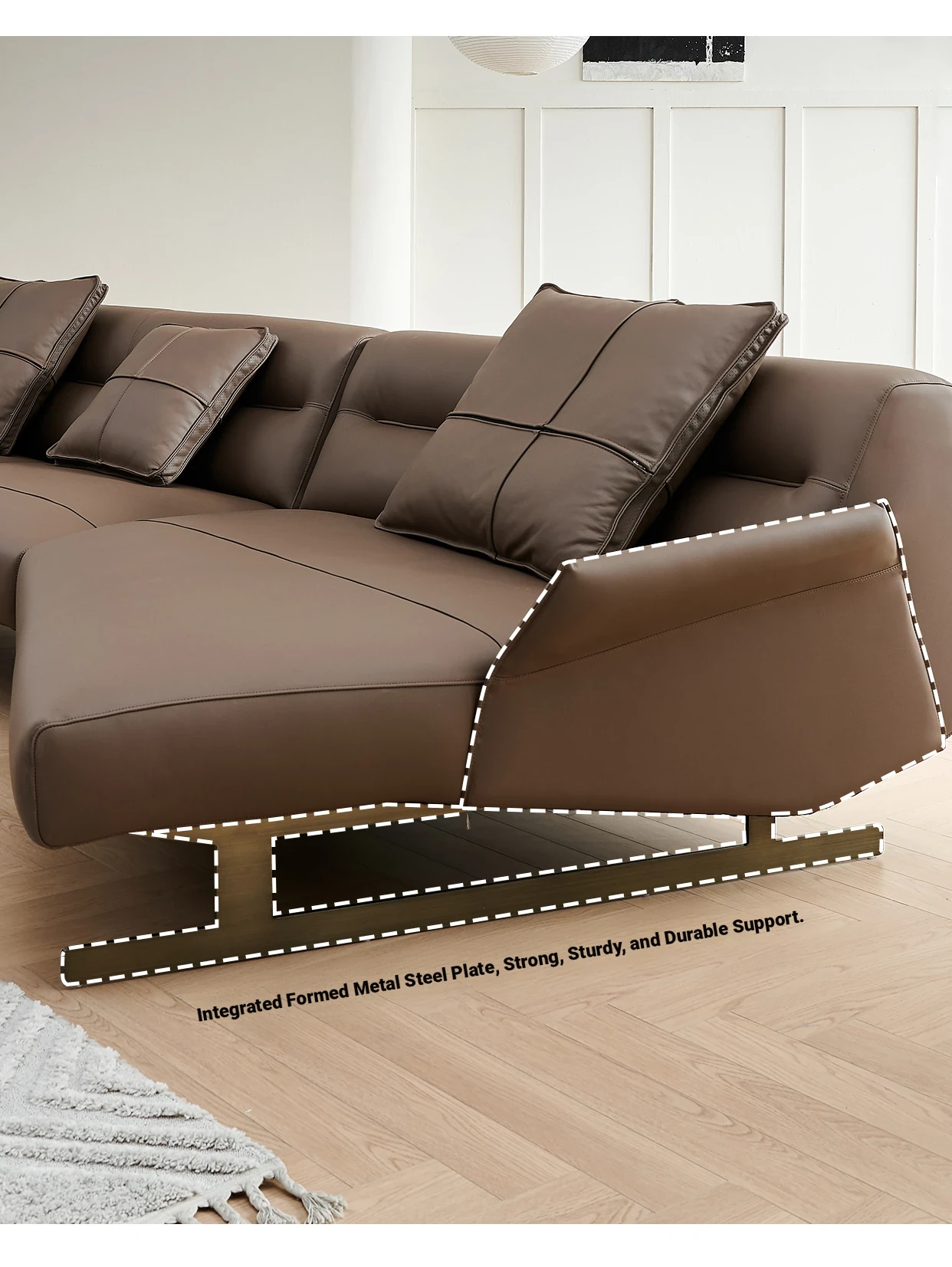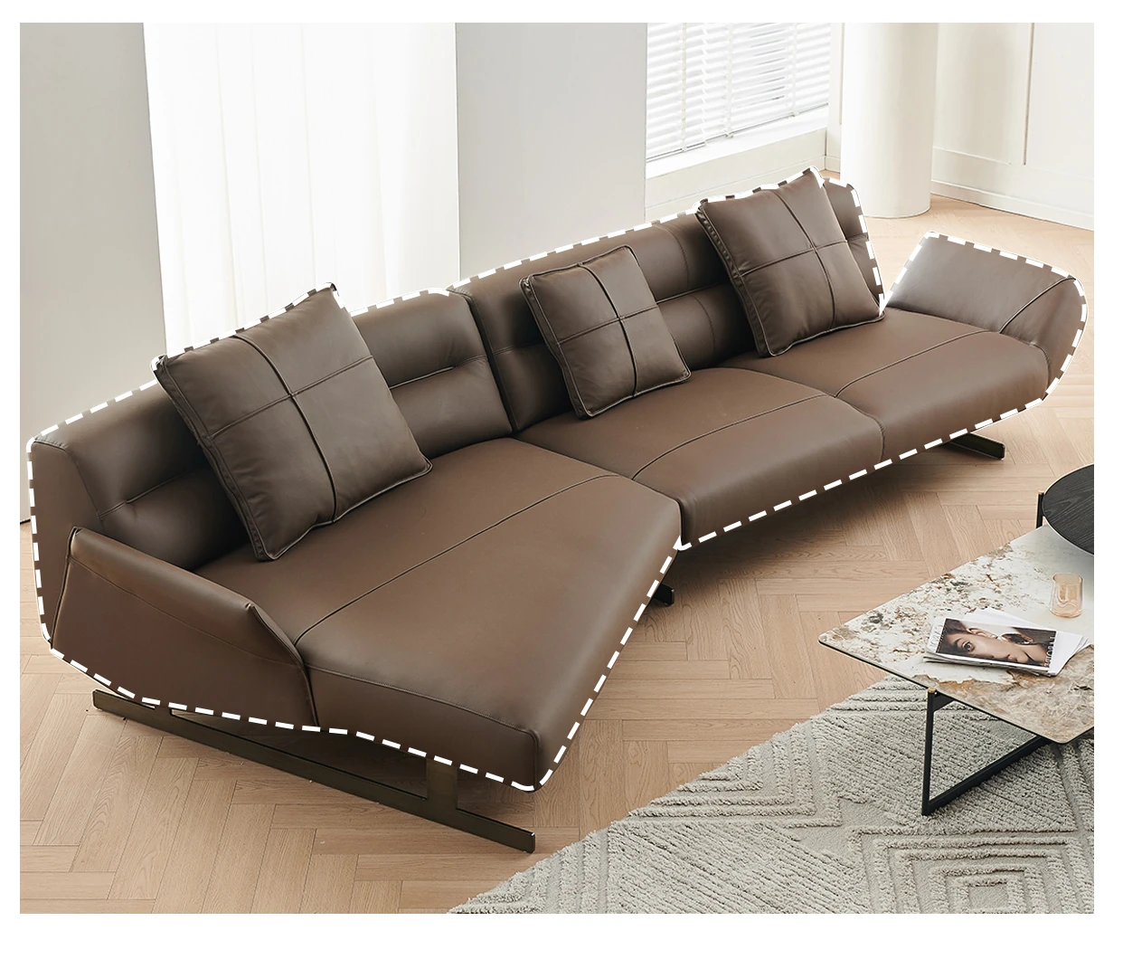 Italian Minimalist Genuine Leather Sofa for Luxurious Living Rooms - Brown Modern Asymmetrical Design for High-End Apartments and Villas, Perfect for Elegant Interiors.