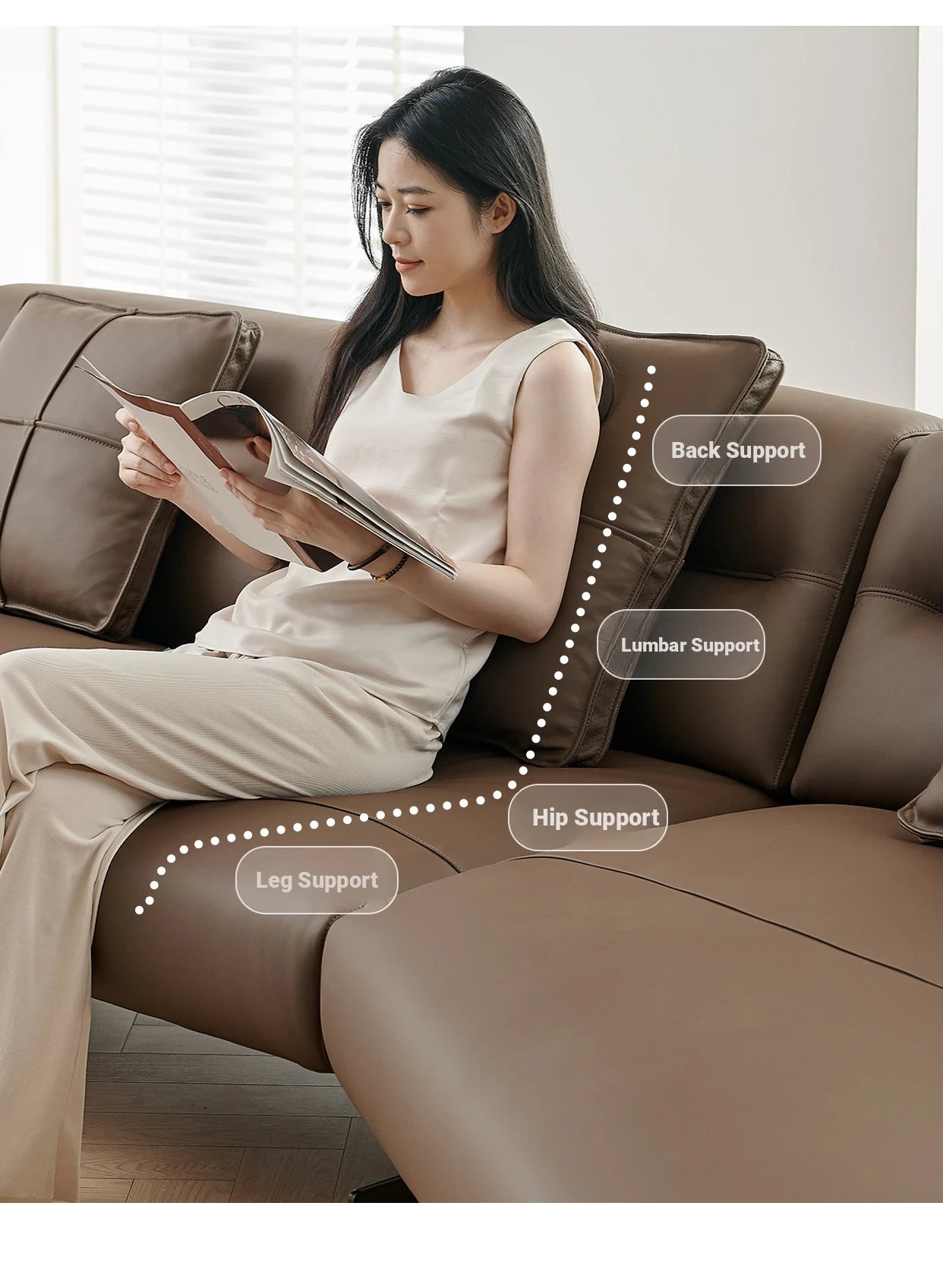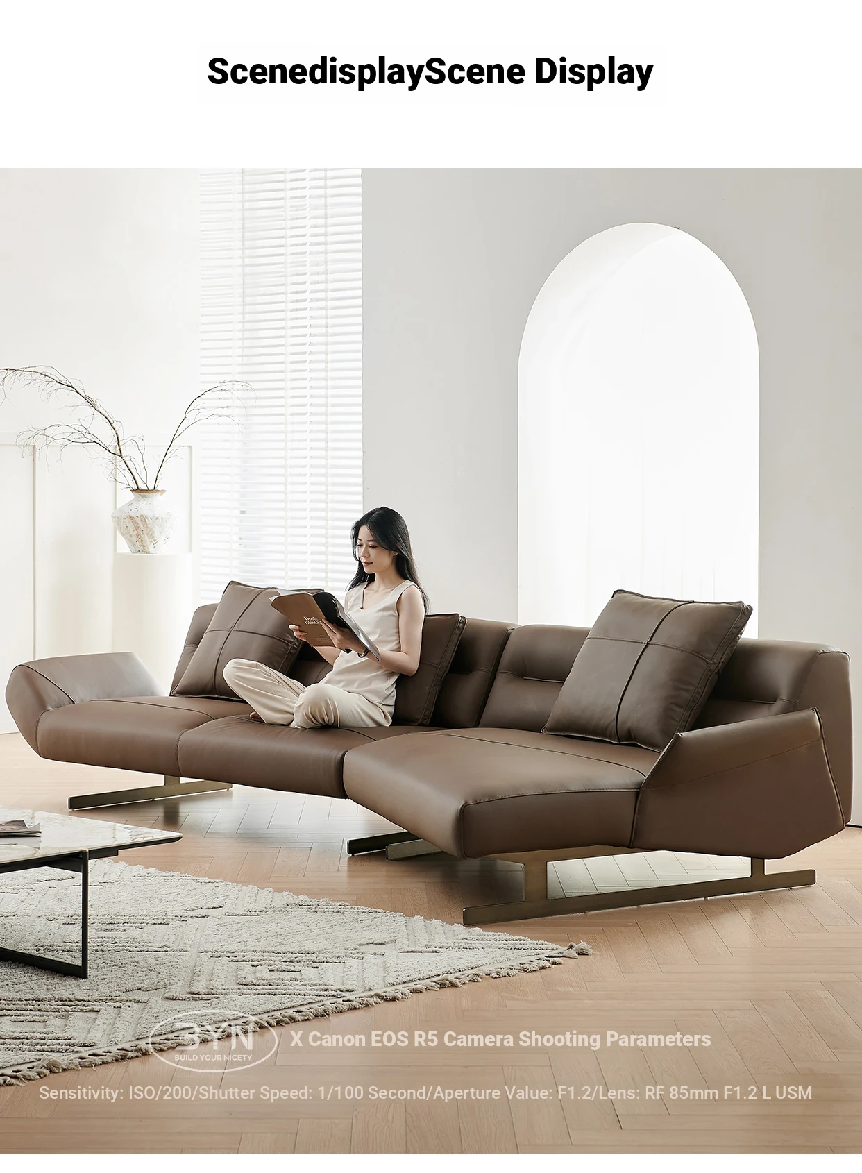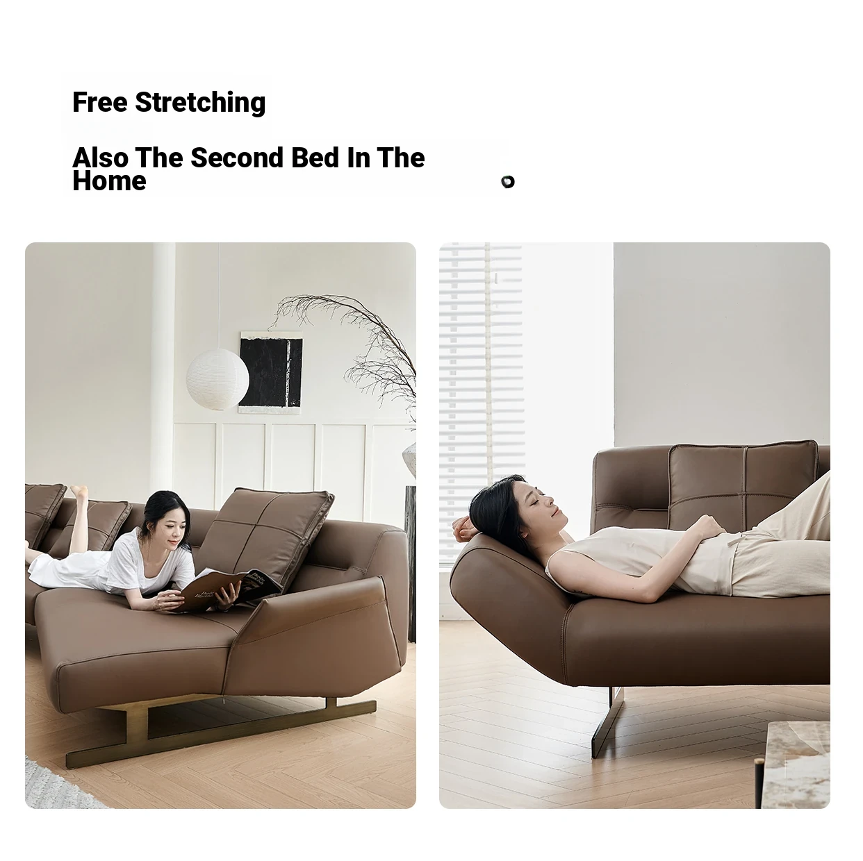 Italian Minimalist Genuine Leather Sofa for Luxurious Living Rooms - Brown Modern Asymmetrical Design for High-End Apartments and Villas, Perfect for Elegant Interiors.
