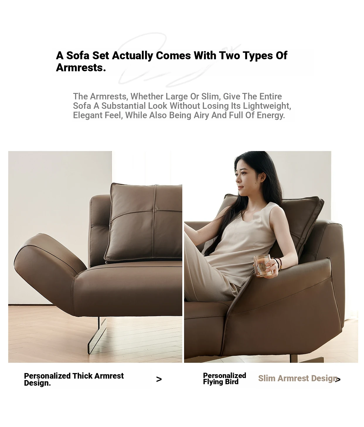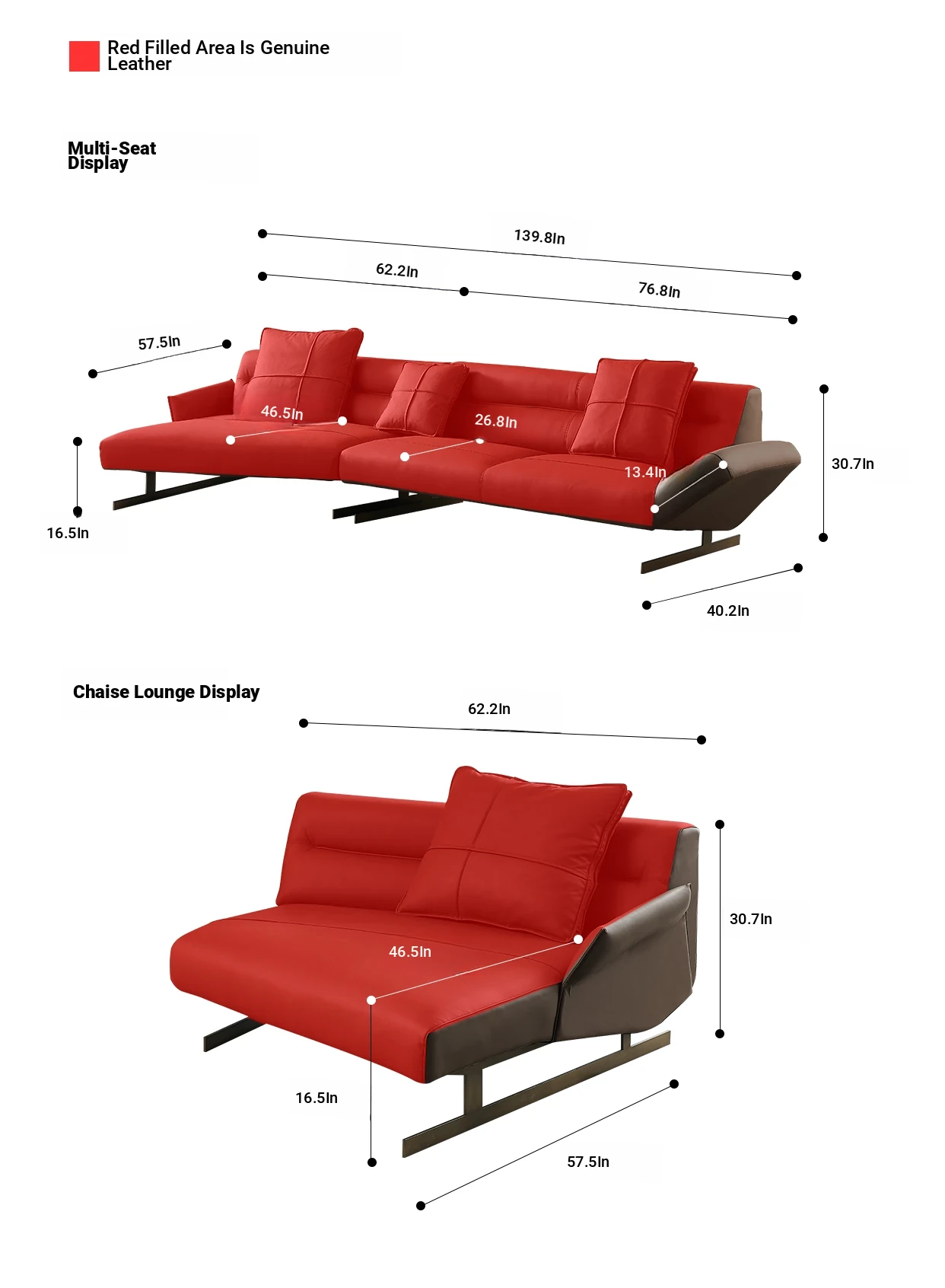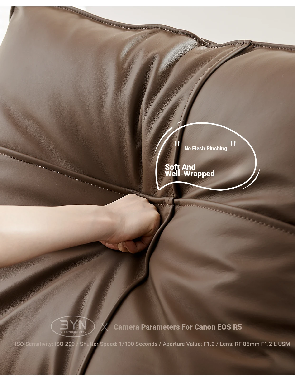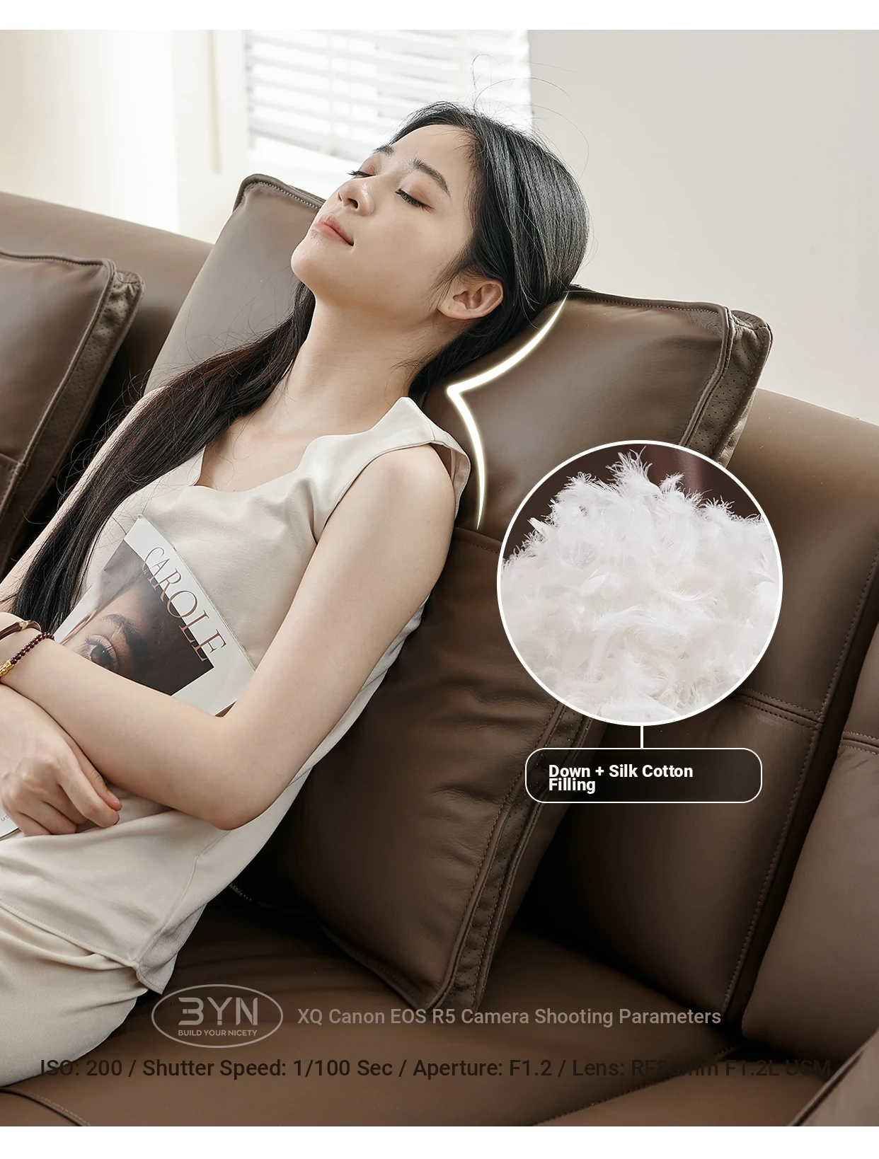 Italian Minimalist Genuine Leather Sofa for Luxurious Living Rooms - Brown Modern Asymmetrical Design for High-End Apartments and Villas, Perfect for Elegant Interiors.