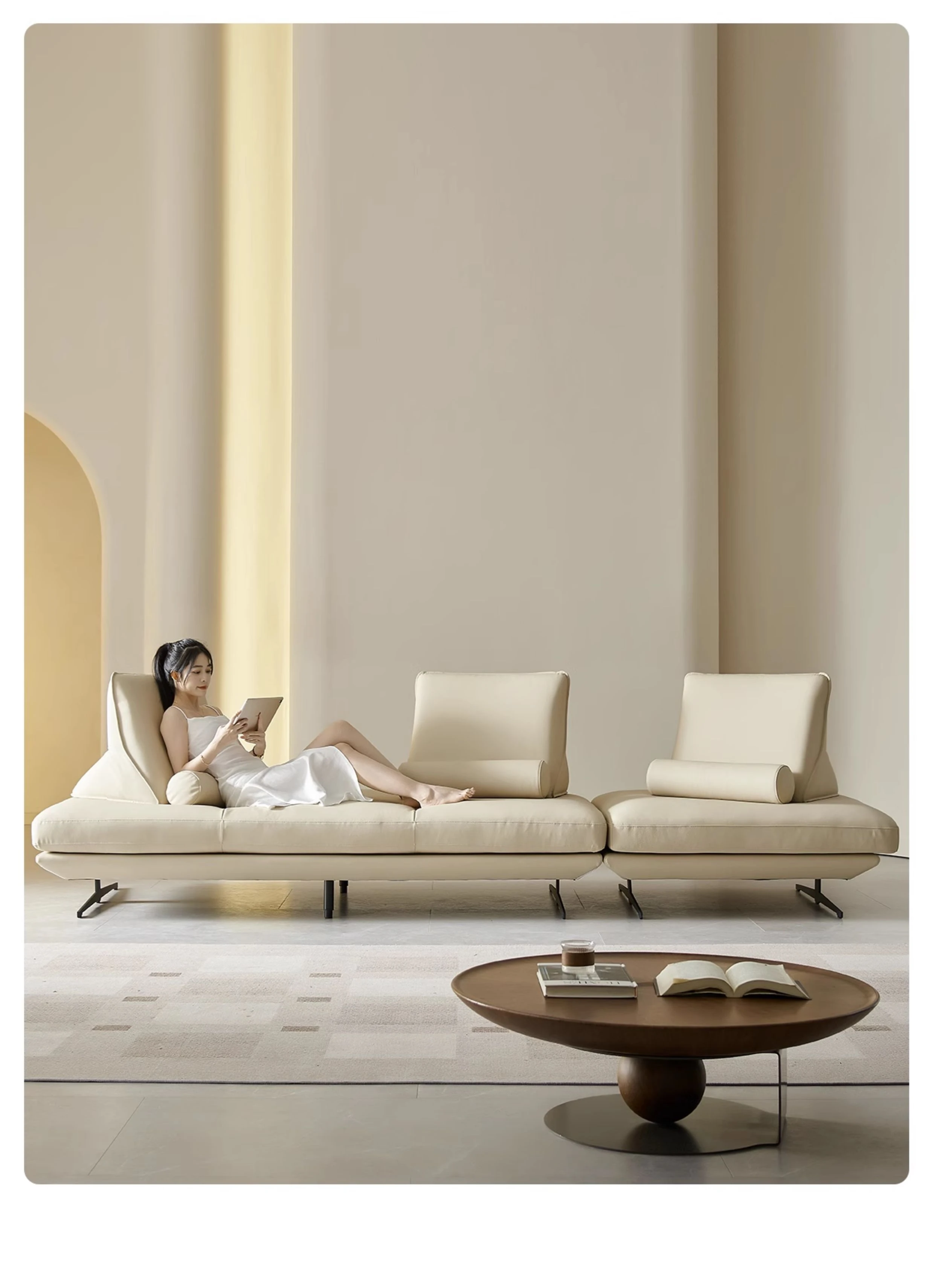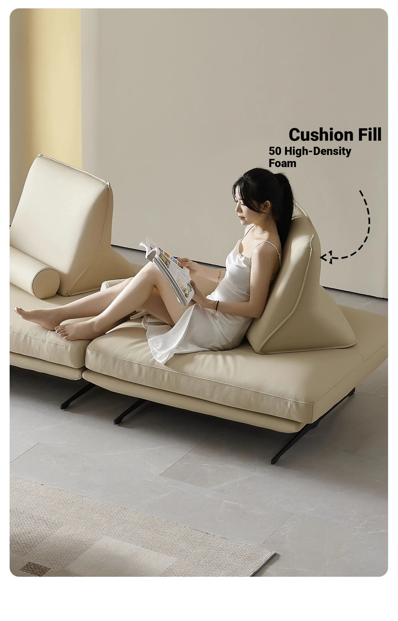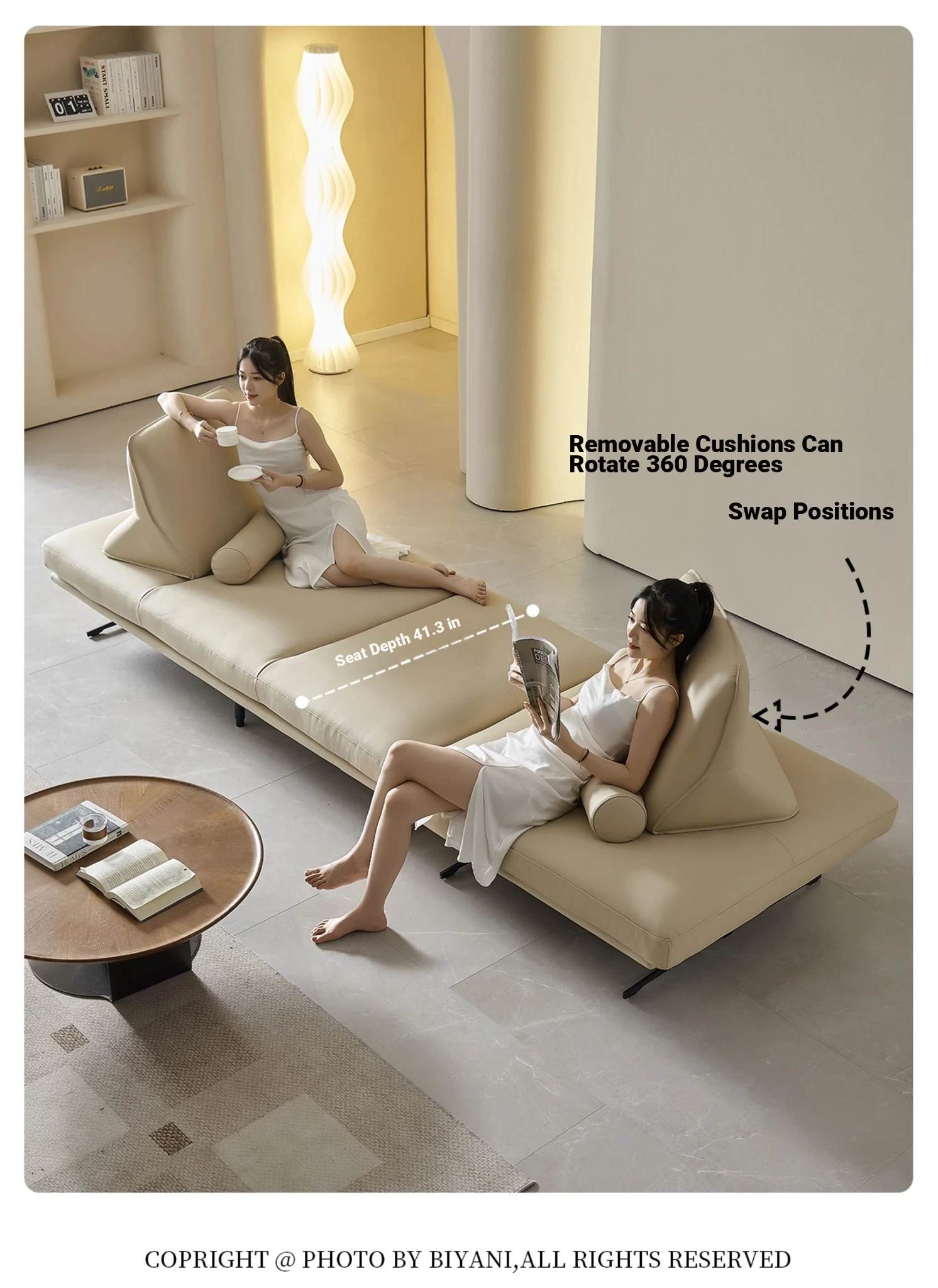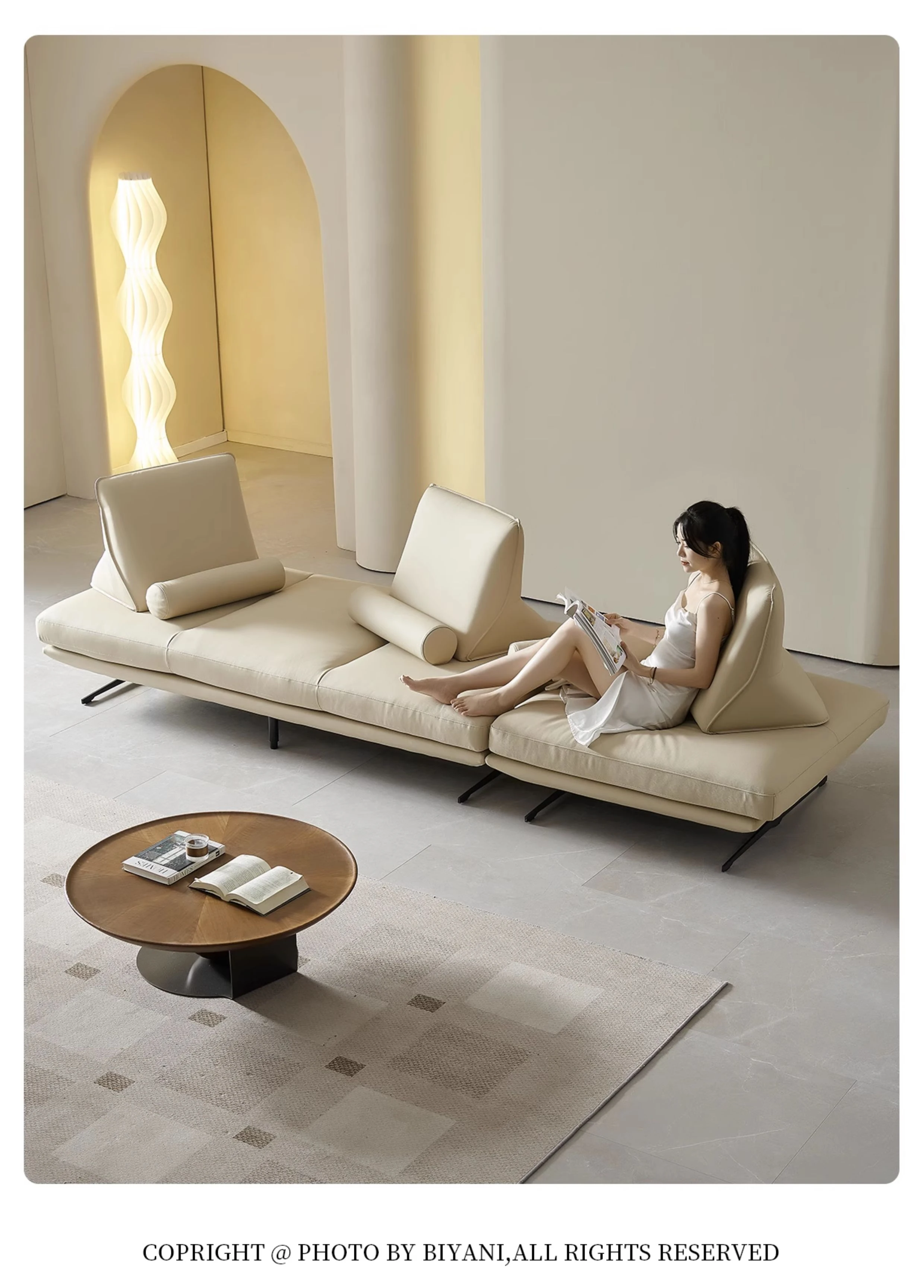 Italian Minimalist High-End Artistic Space Armrest-Free Double-Sided Sofa for Small Apartments - Creamy Tofu Block Genuine Leather Couch