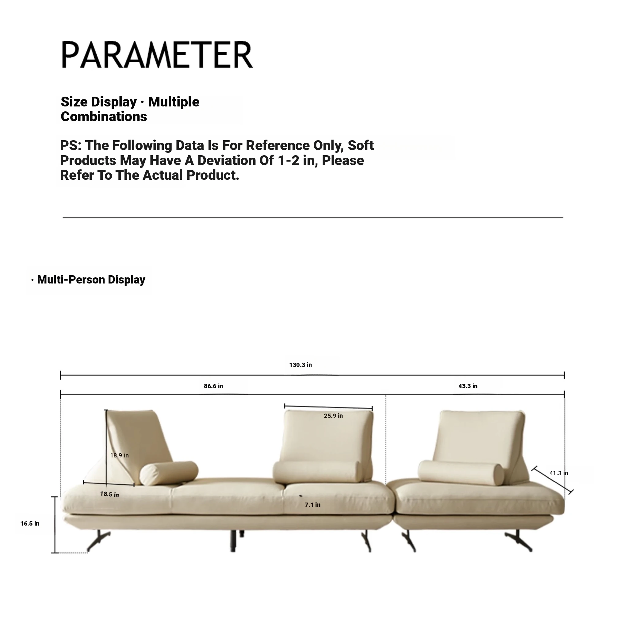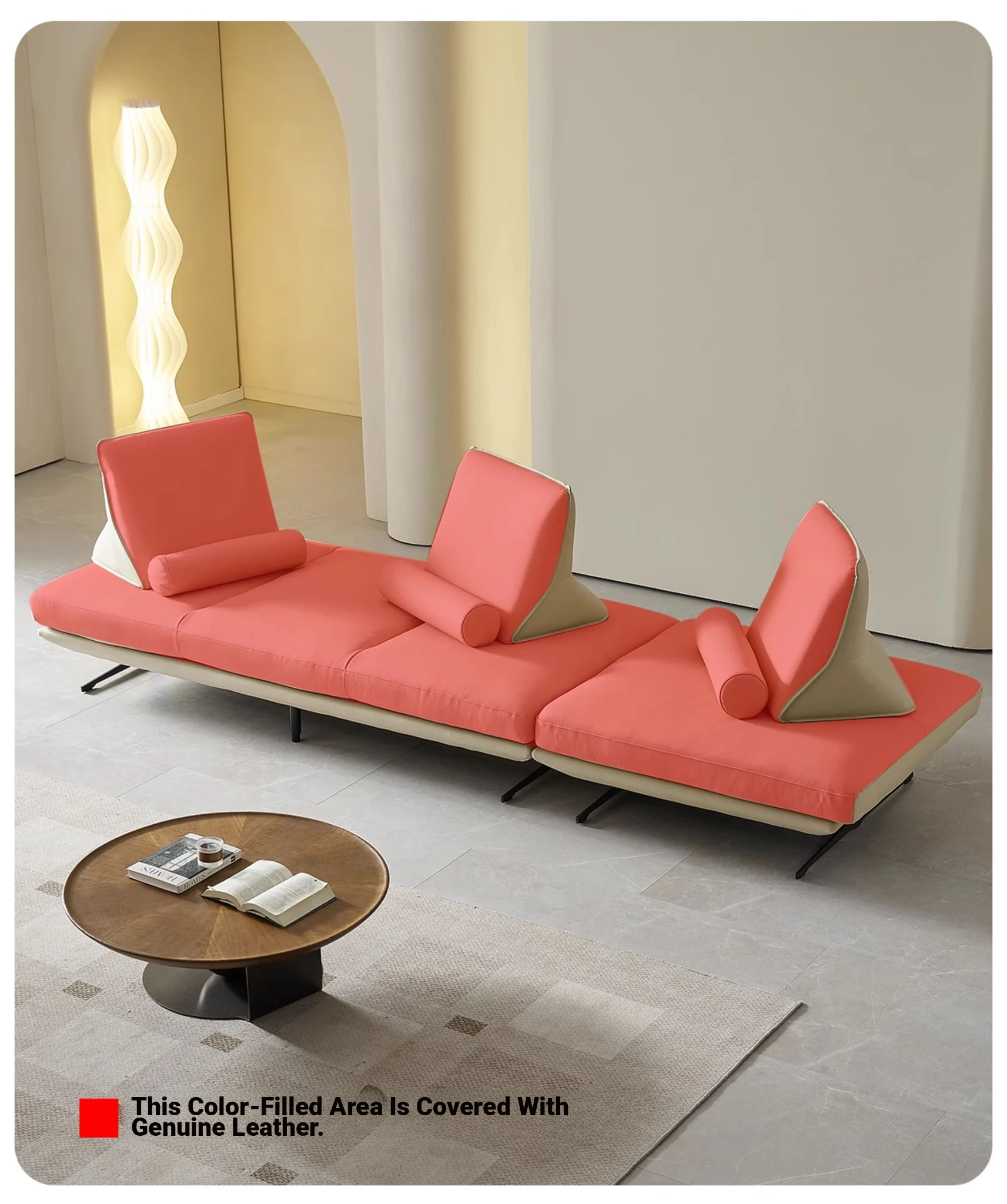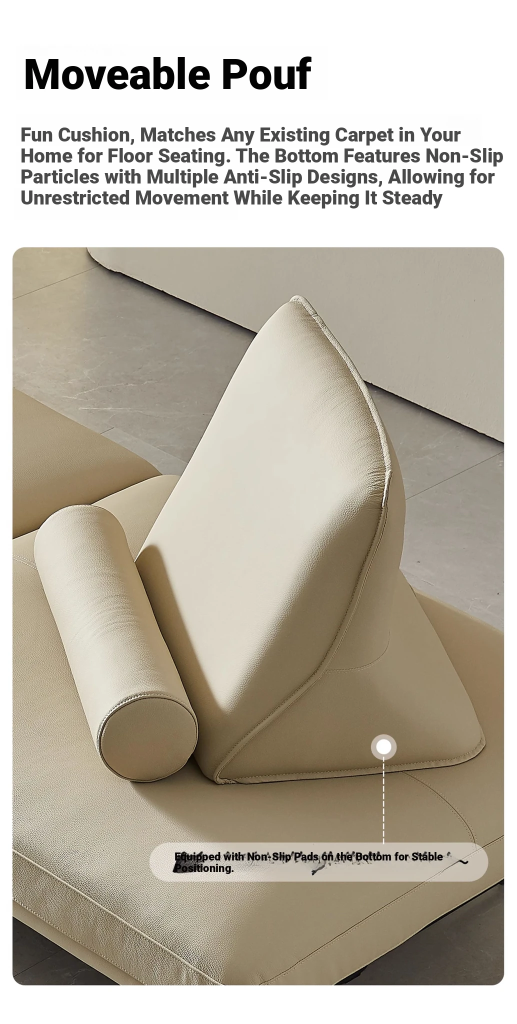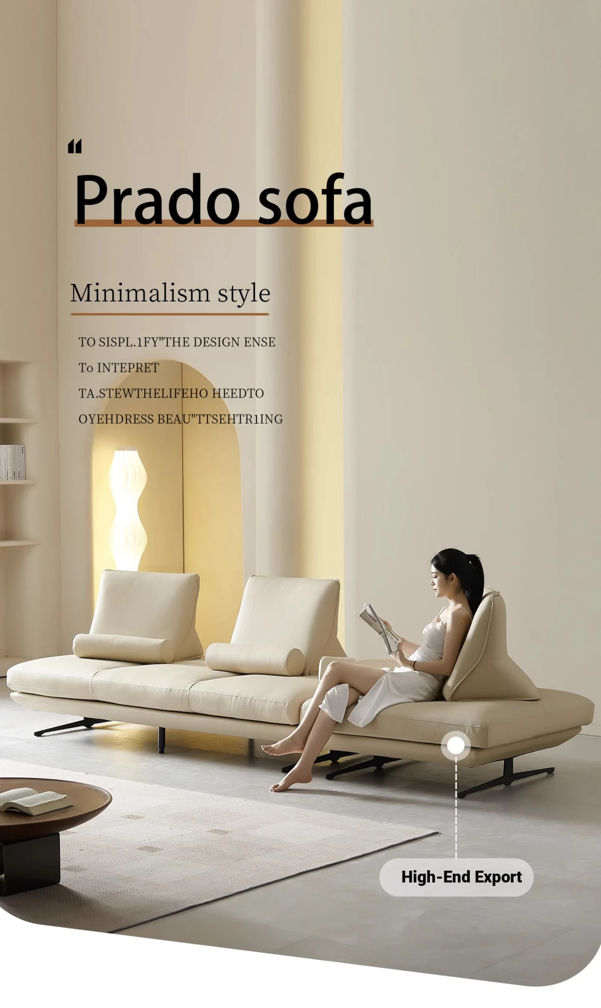 Italian Minimalist High-End Artistic Space Armrest-Free Double-Sided Sofa for Small Apartments - Creamy Tofu Block Genuine Leather Couch