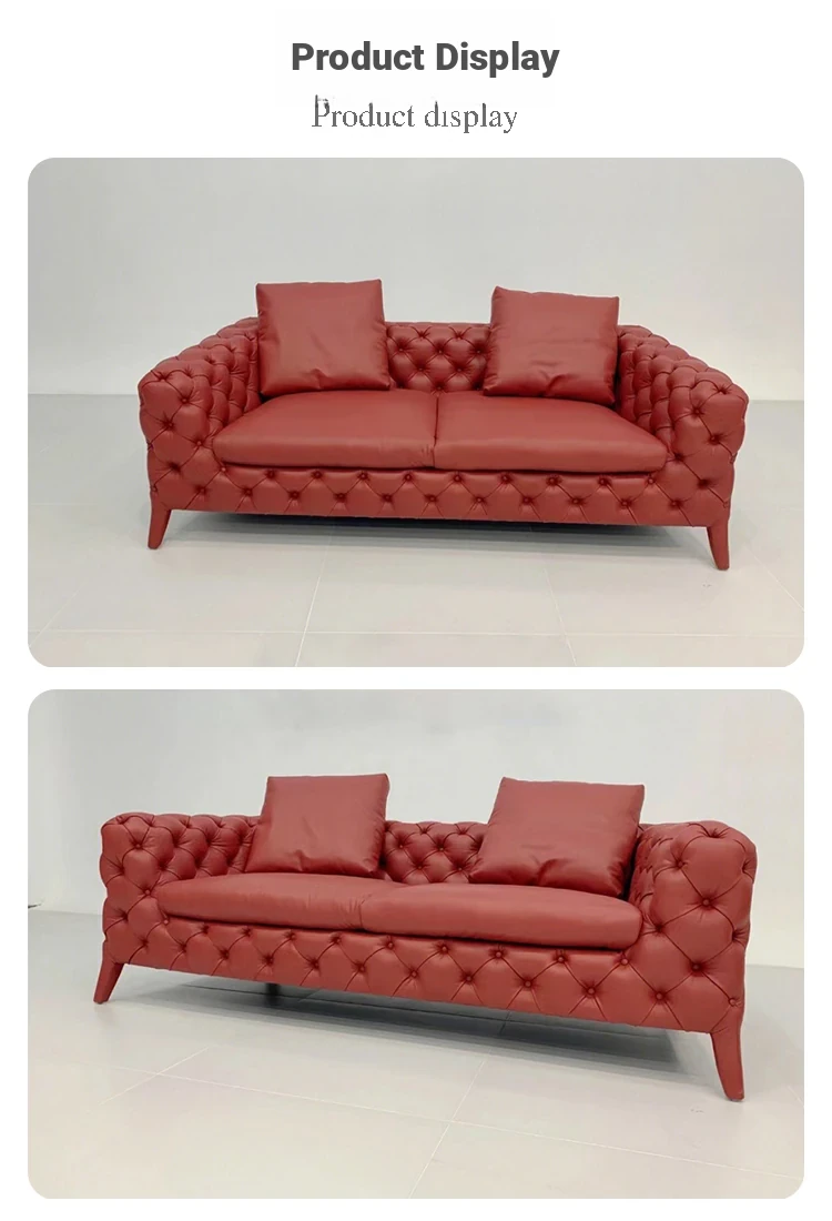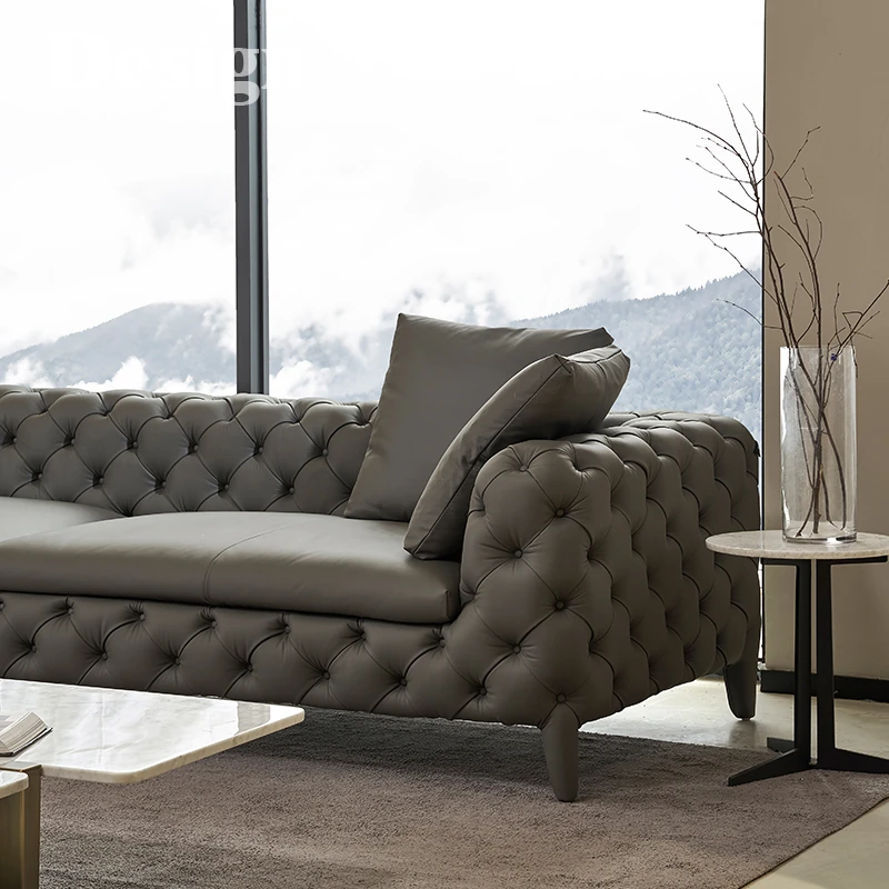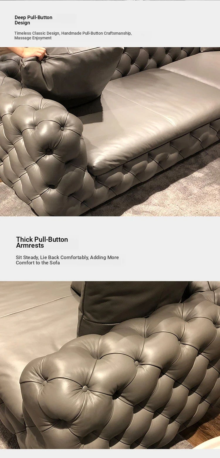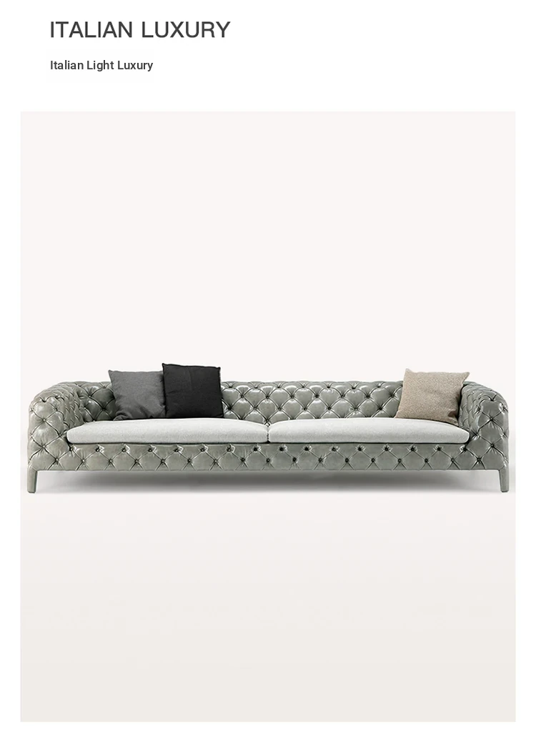 Italian Minimalist Luxury Leather Sofa with Pull-Down Design for Villas and Small Apartments - Perfect for Modern Living Rooms and Hotel Reception Areas
