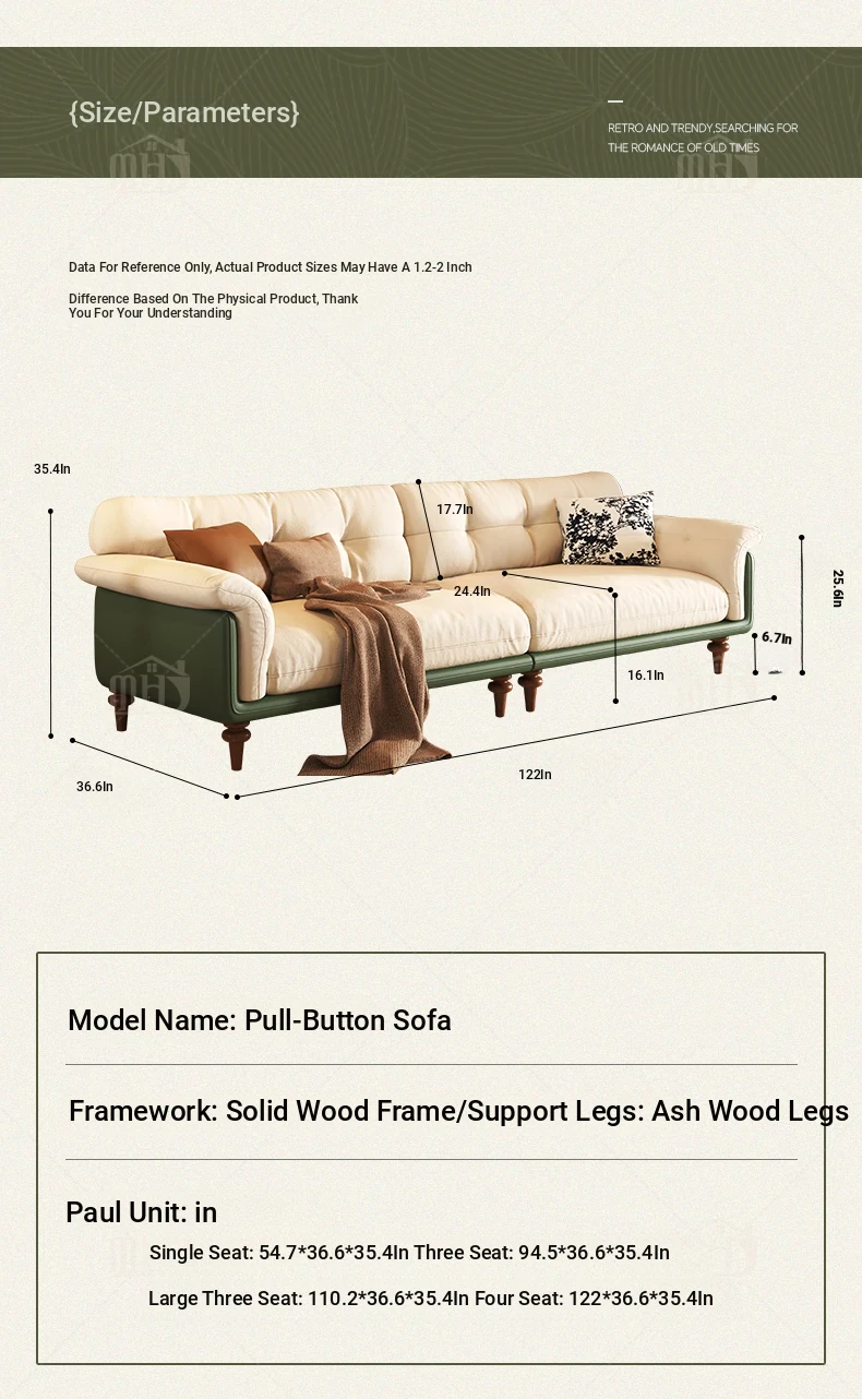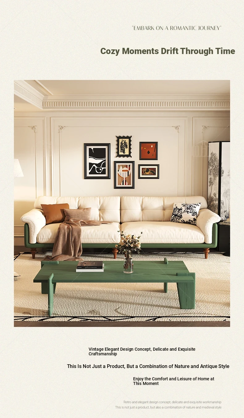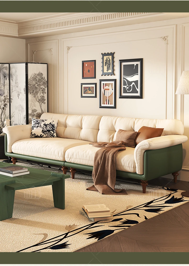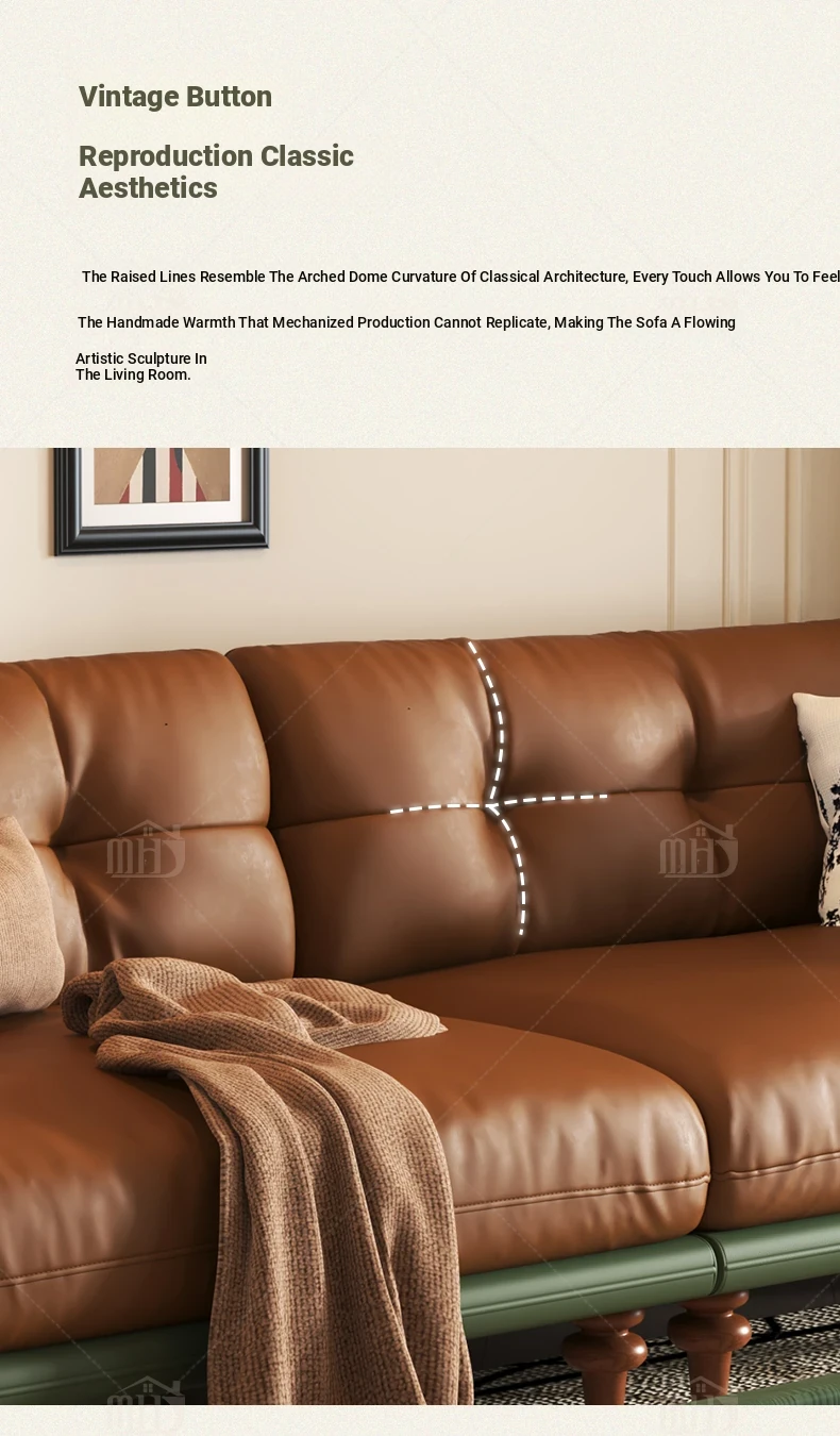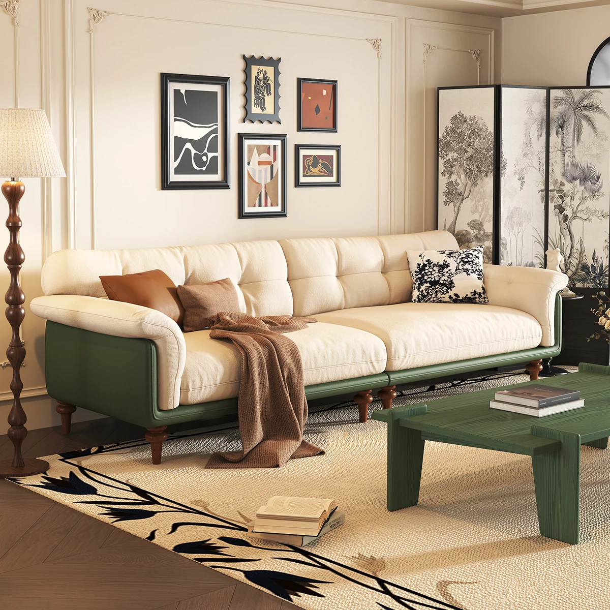 MHJ French Style Genuine Leather Sofa - Vintage American 3-Seater, Removable and Washable Fabric, Perfect for a Classic Home Aesthetic