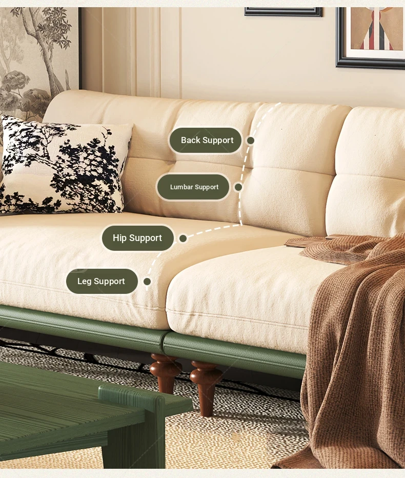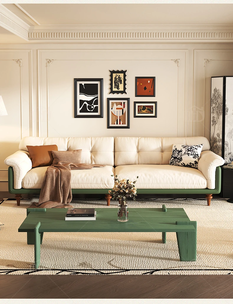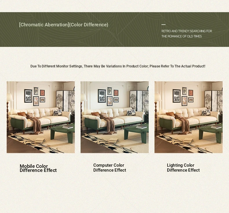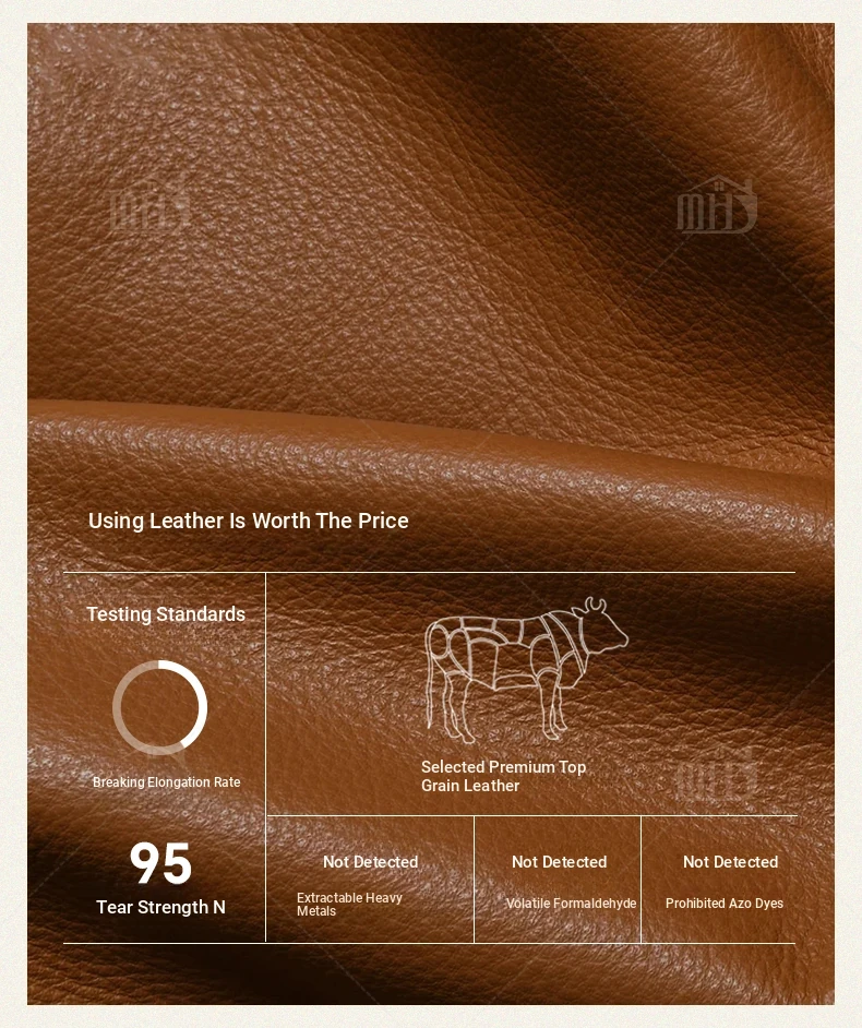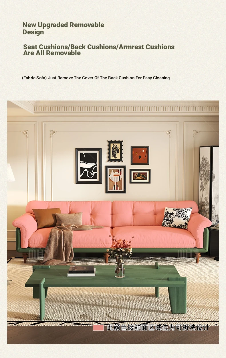 MHJ French Style Genuine Leather Sofa - Vintage American 3-Seater, Removable and Washable Fabric, Perfect for a Classic Home Aesthetic