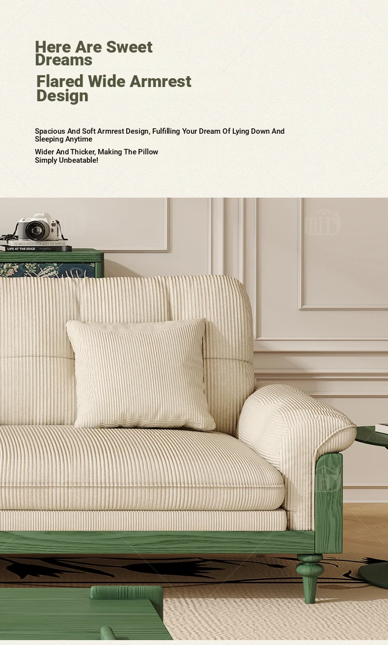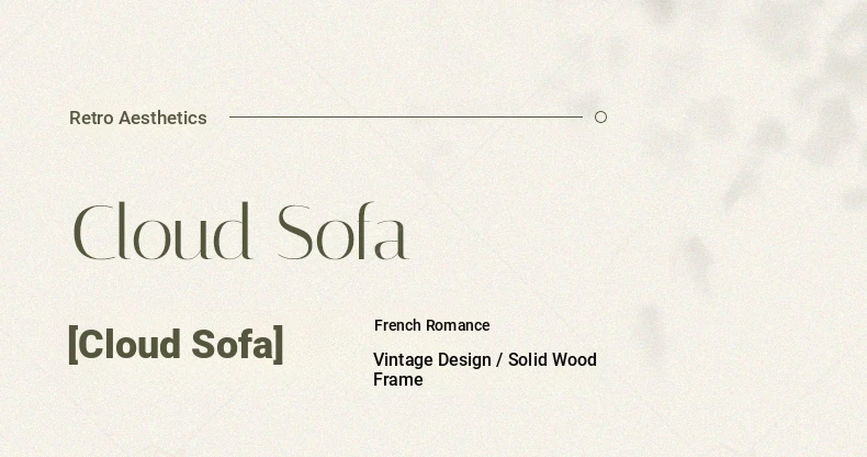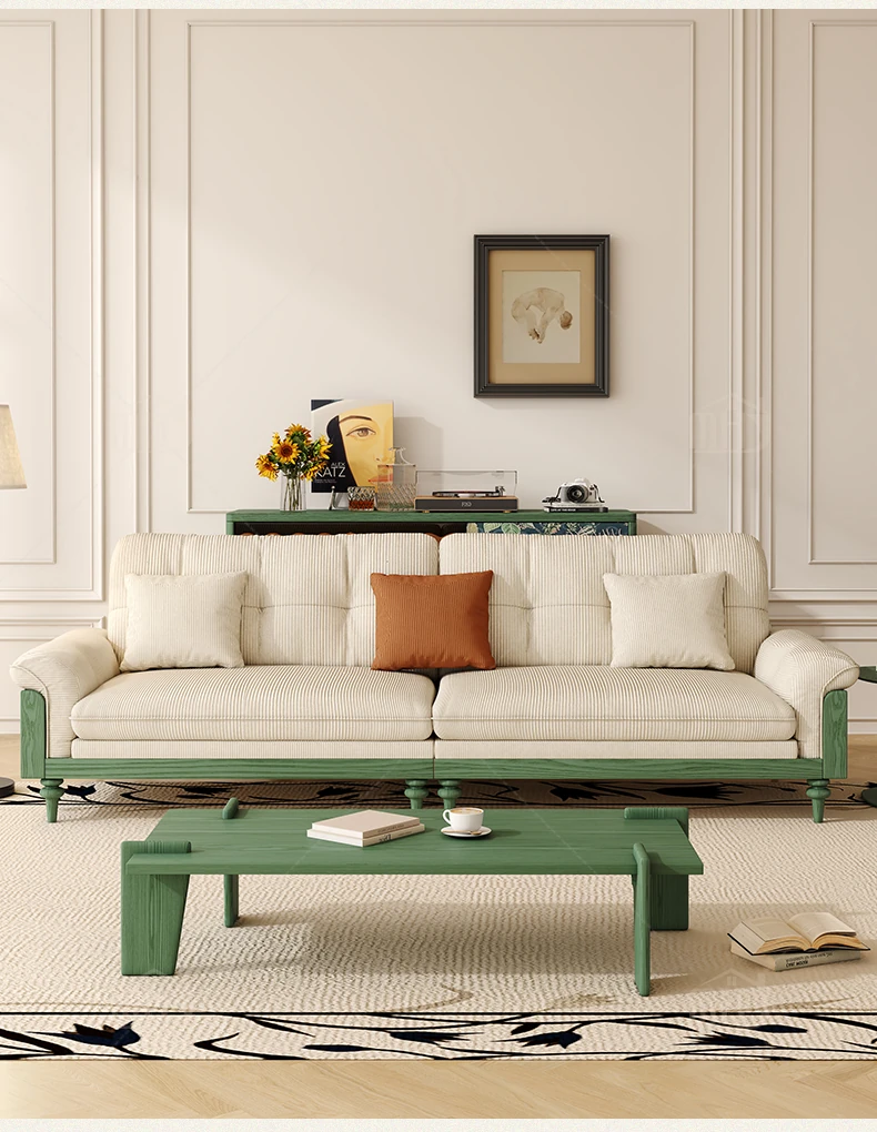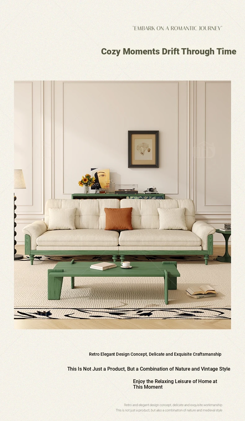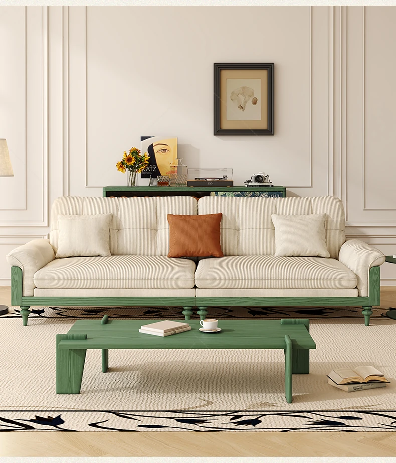 MHJ French Vintage Solid Wood Sofa - Retro Fabric Three-Seat Combination for Small Spaces, American Cloud Style