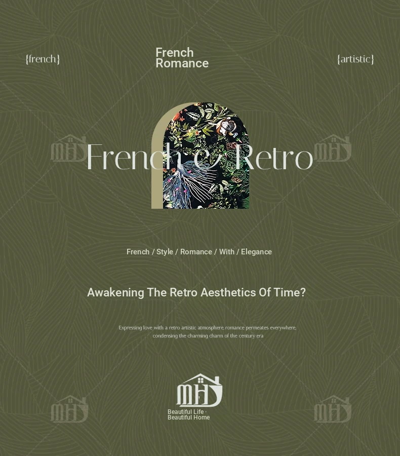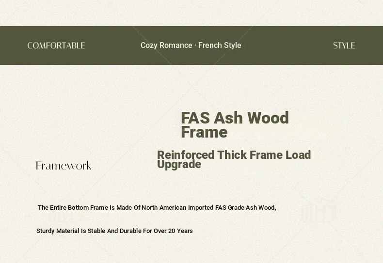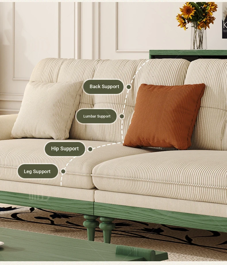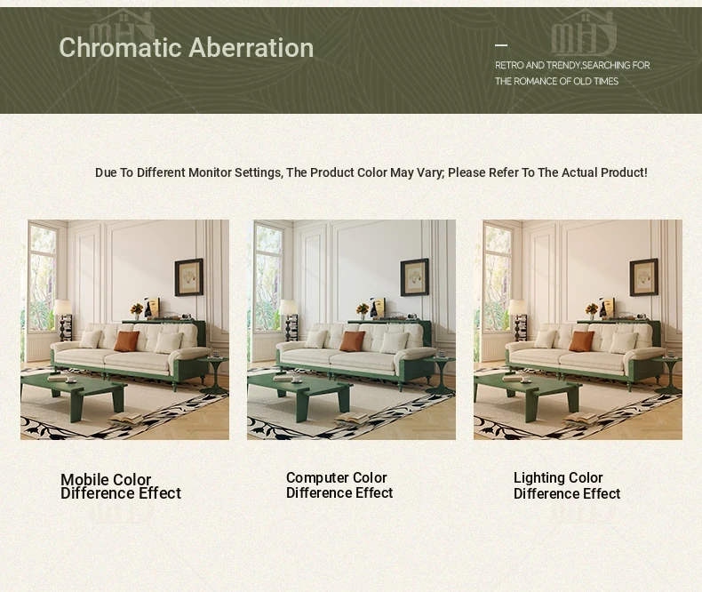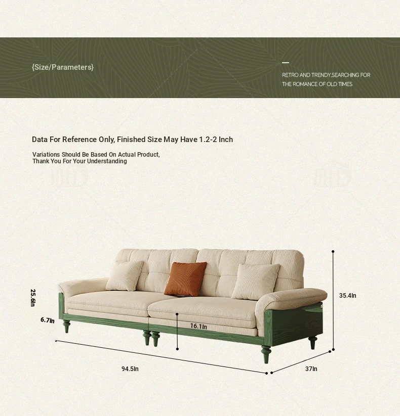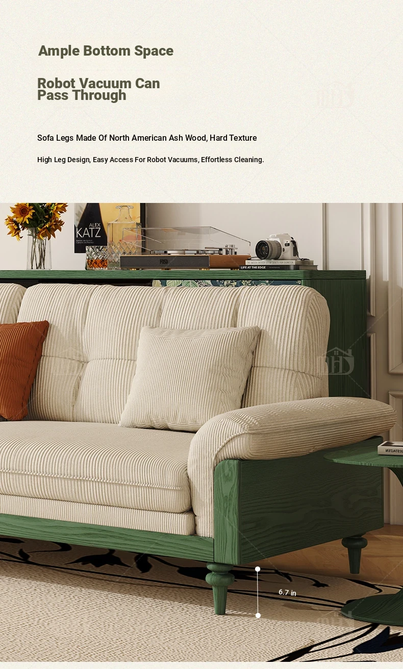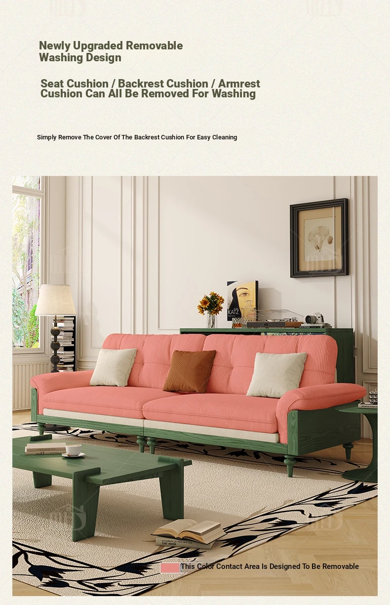 MHJ French Vintage Solid Wood Sofa - Retro Fabric Three-Seat Combination for Small Spaces, American Cloud Style