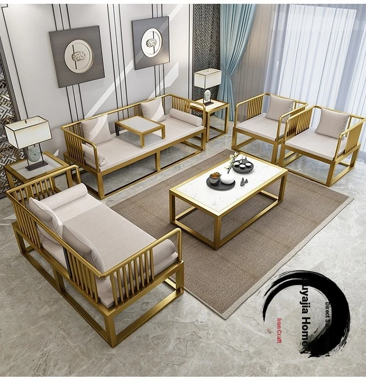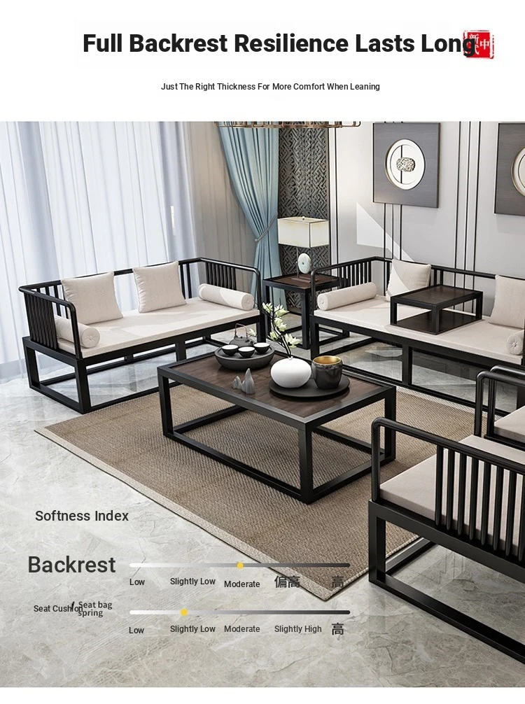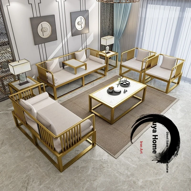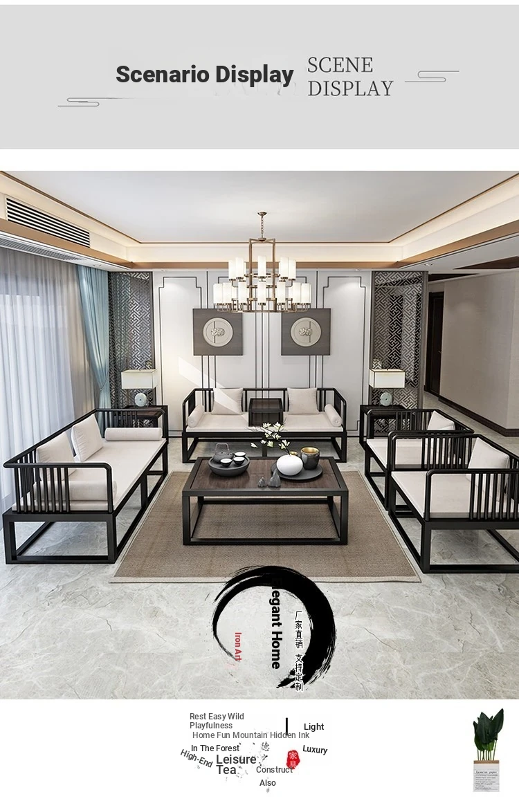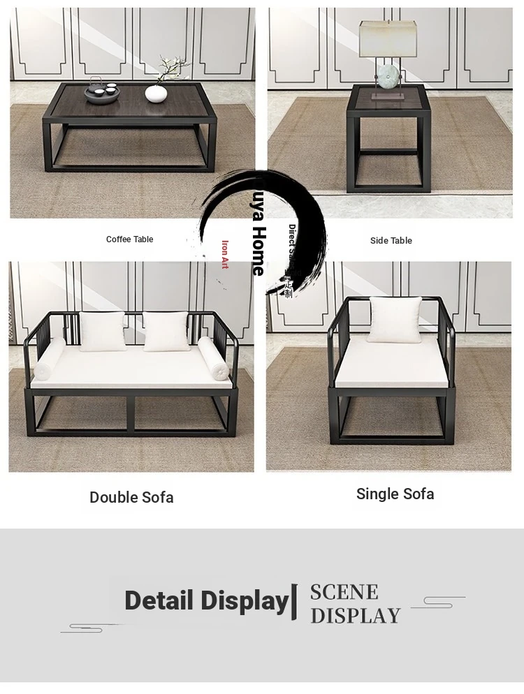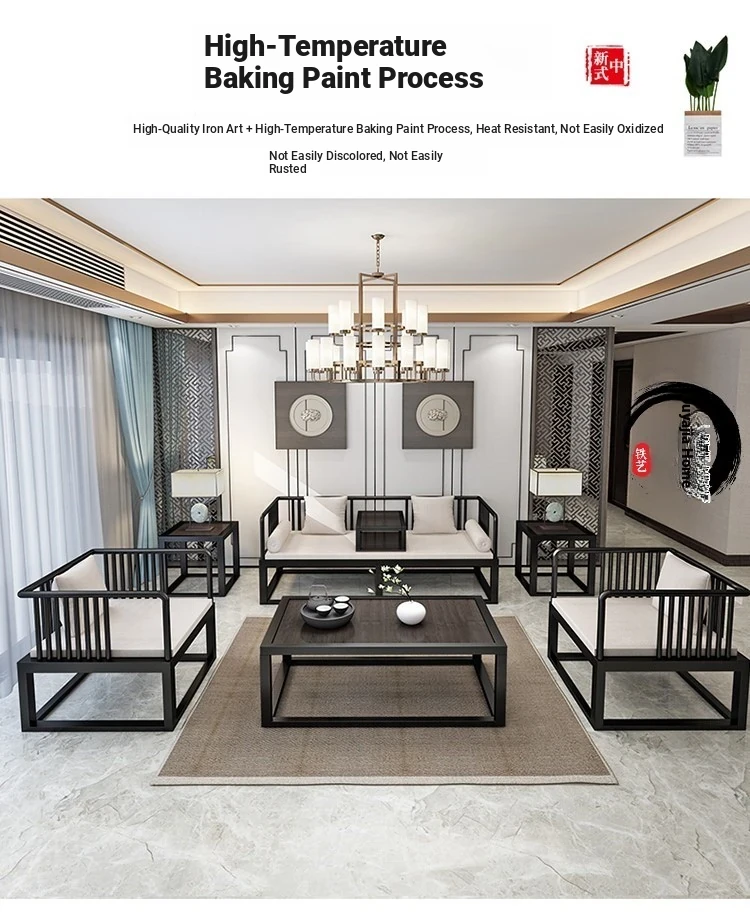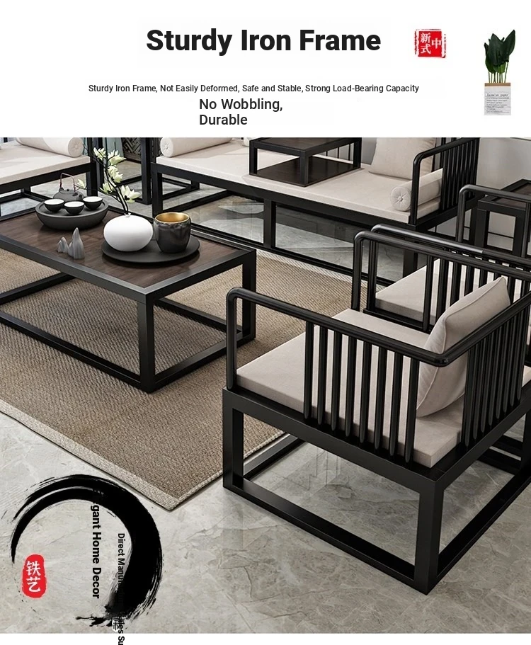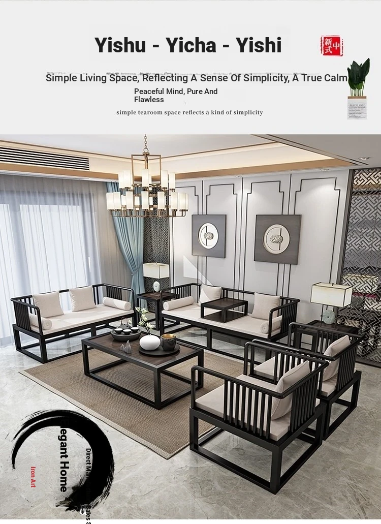 Modern Chinese Sofa Set - Complete Iron Frame Tea Table for Living Room, Minimalist Luxury Wabi-Sabi Zen Furniture Collection