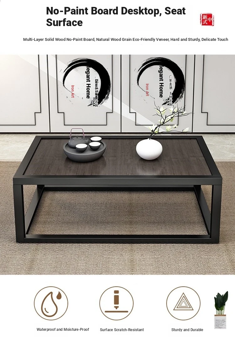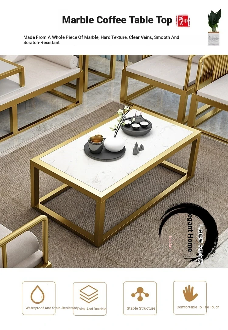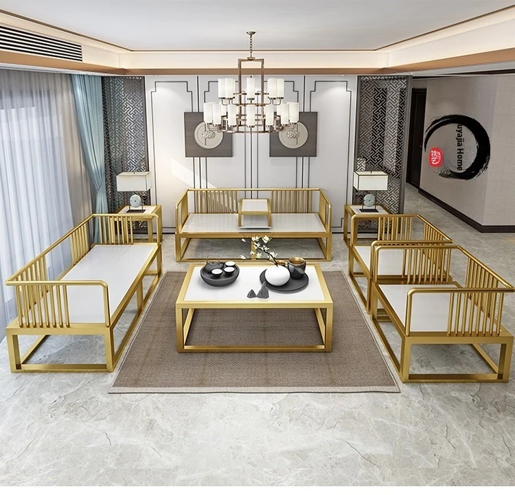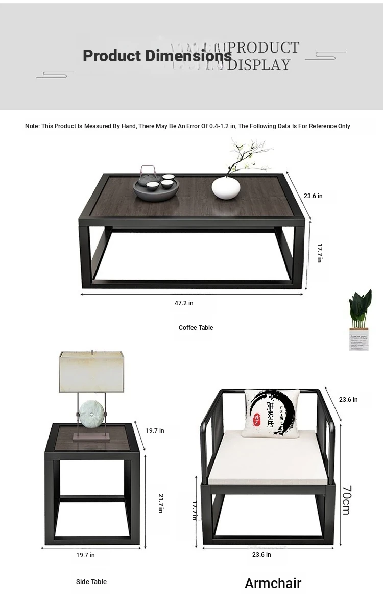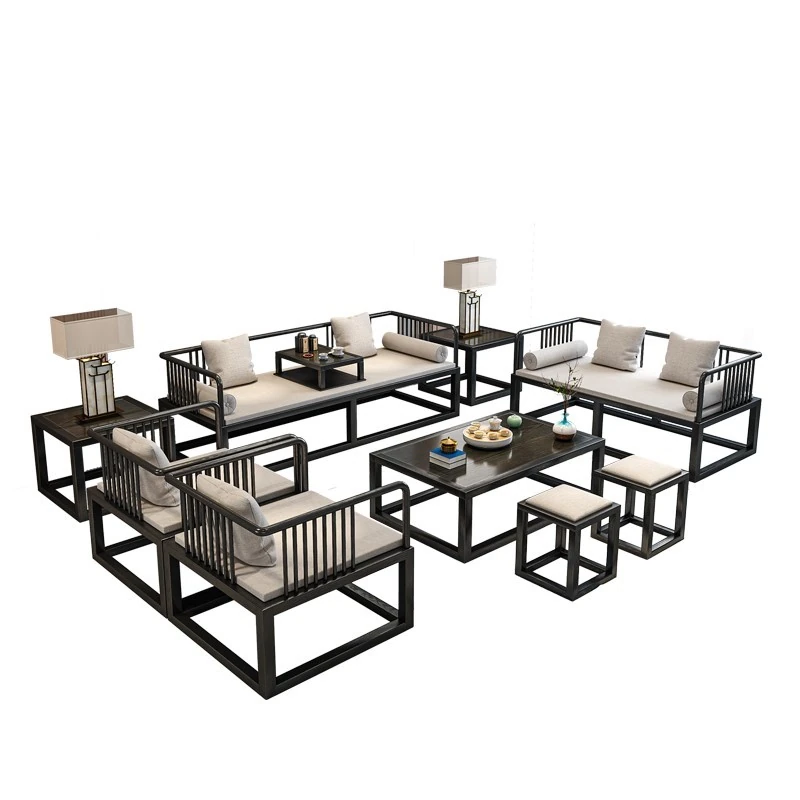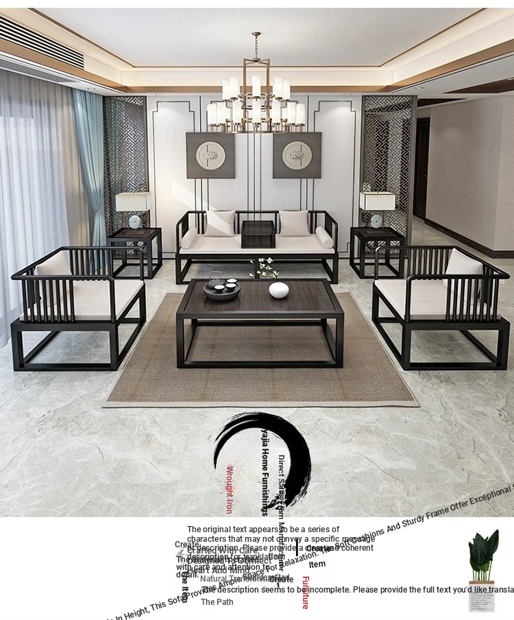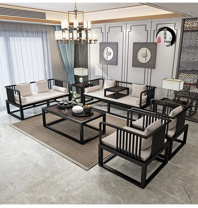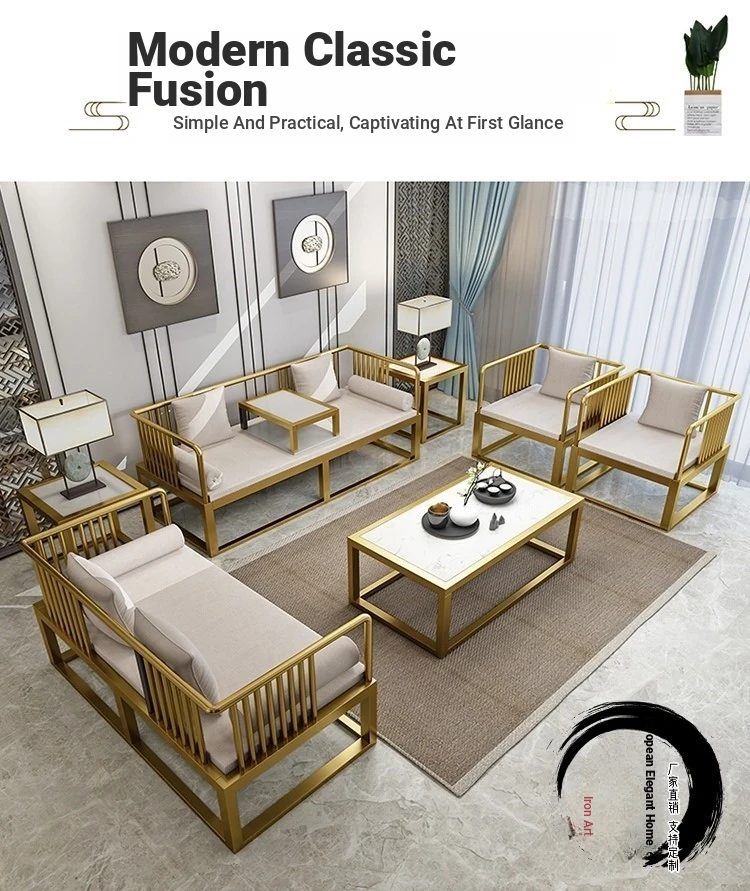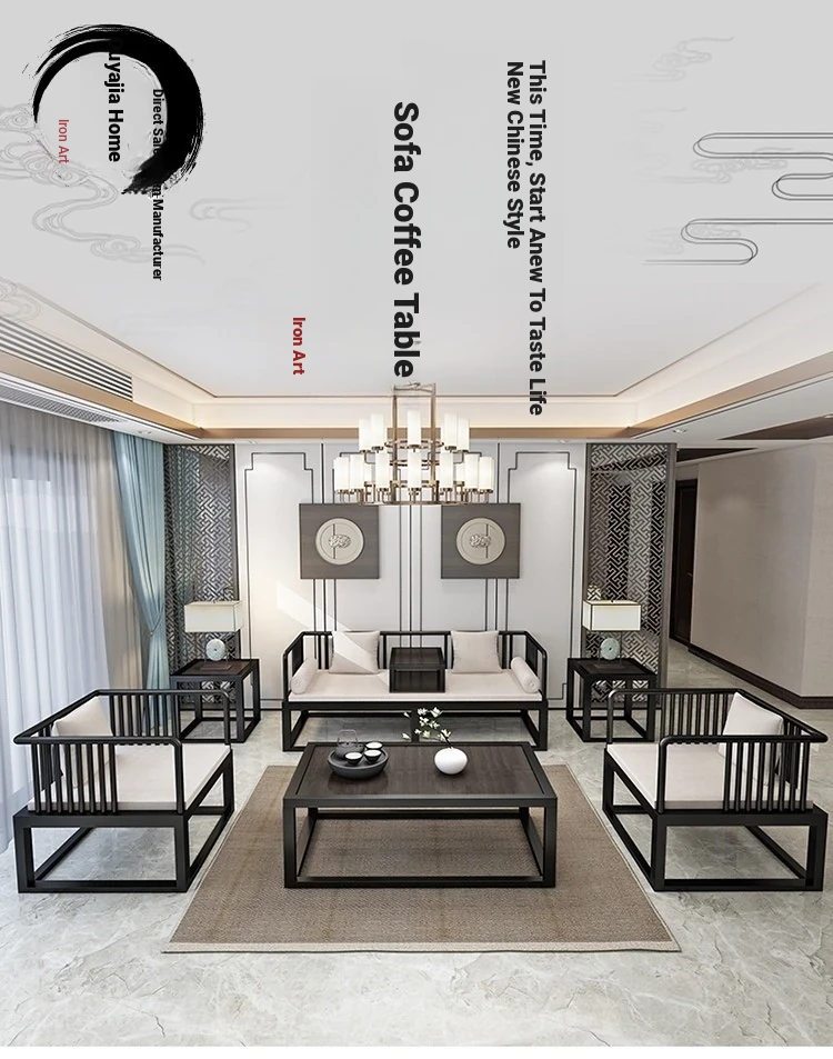 Modern Chinese Sofa Set - Complete Iron Frame Tea Table for Living Room, Minimalist Luxury Wabi-Sabi Zen Furniture Collection