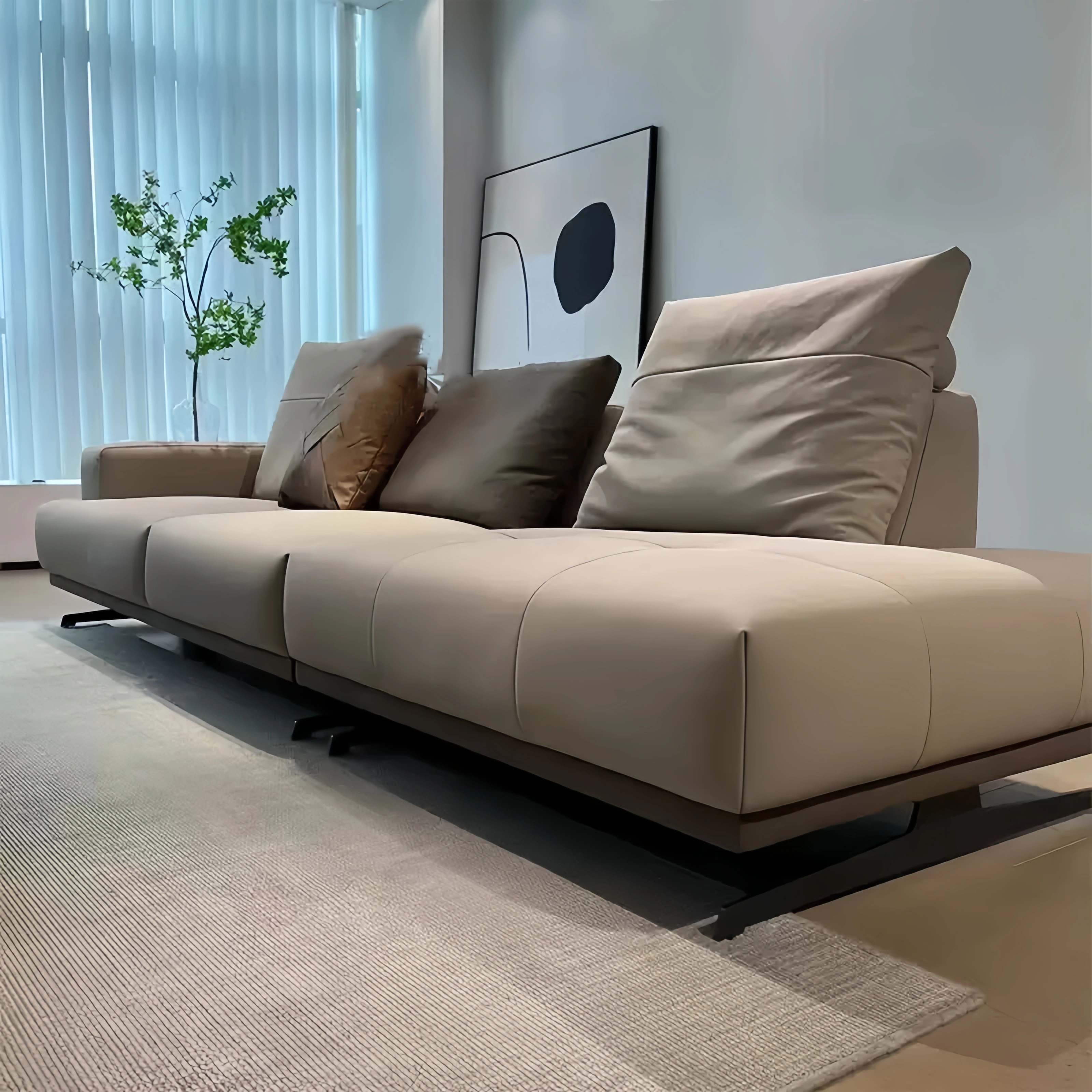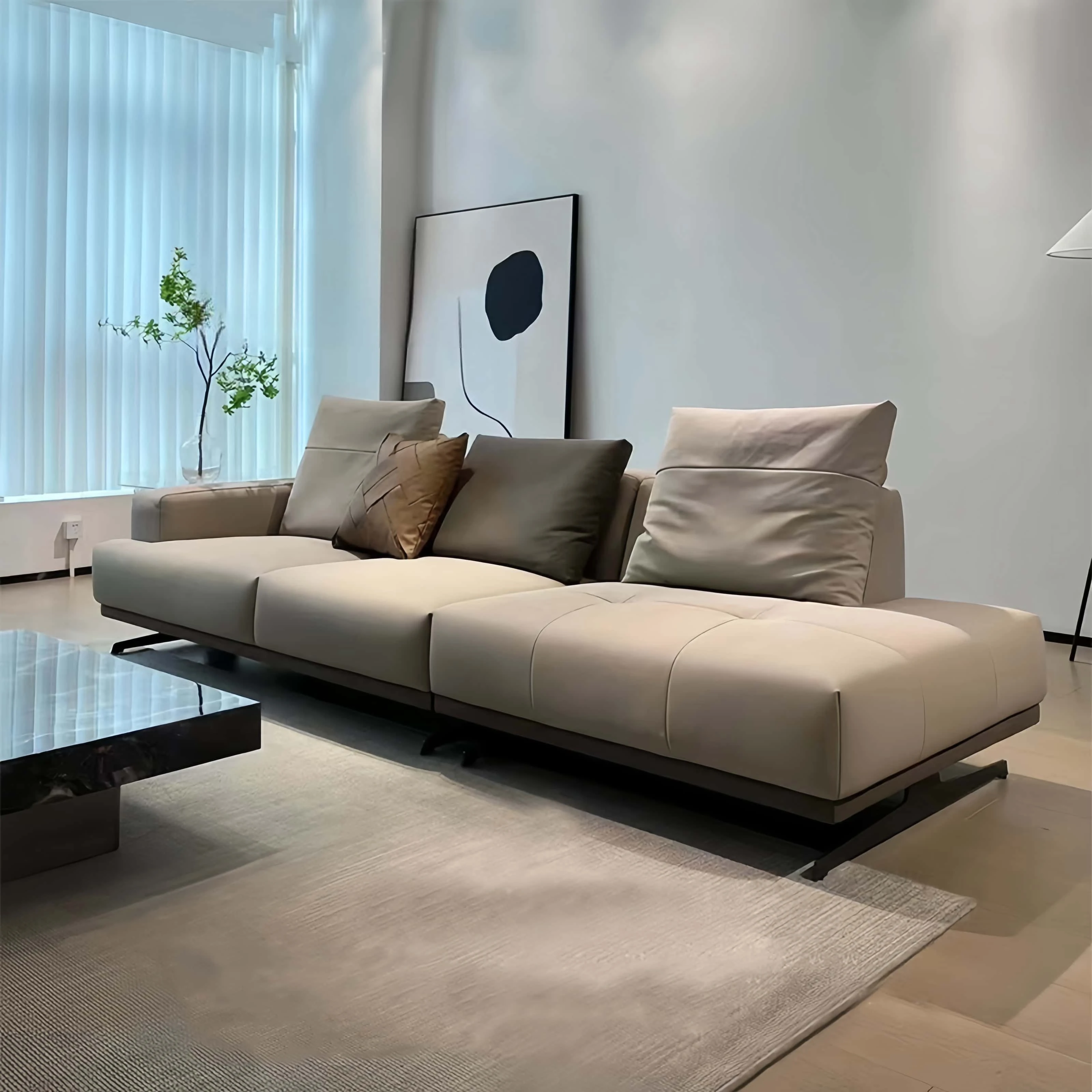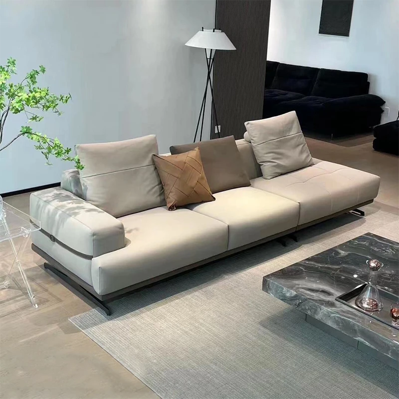 Modern Italian Minimalist Genuine Leather Sofa for Spacious Villas - Designer Creative Straight-Line Three-Seater for Large Living Rooms