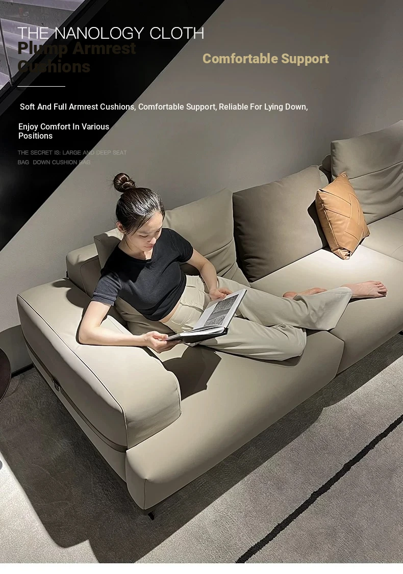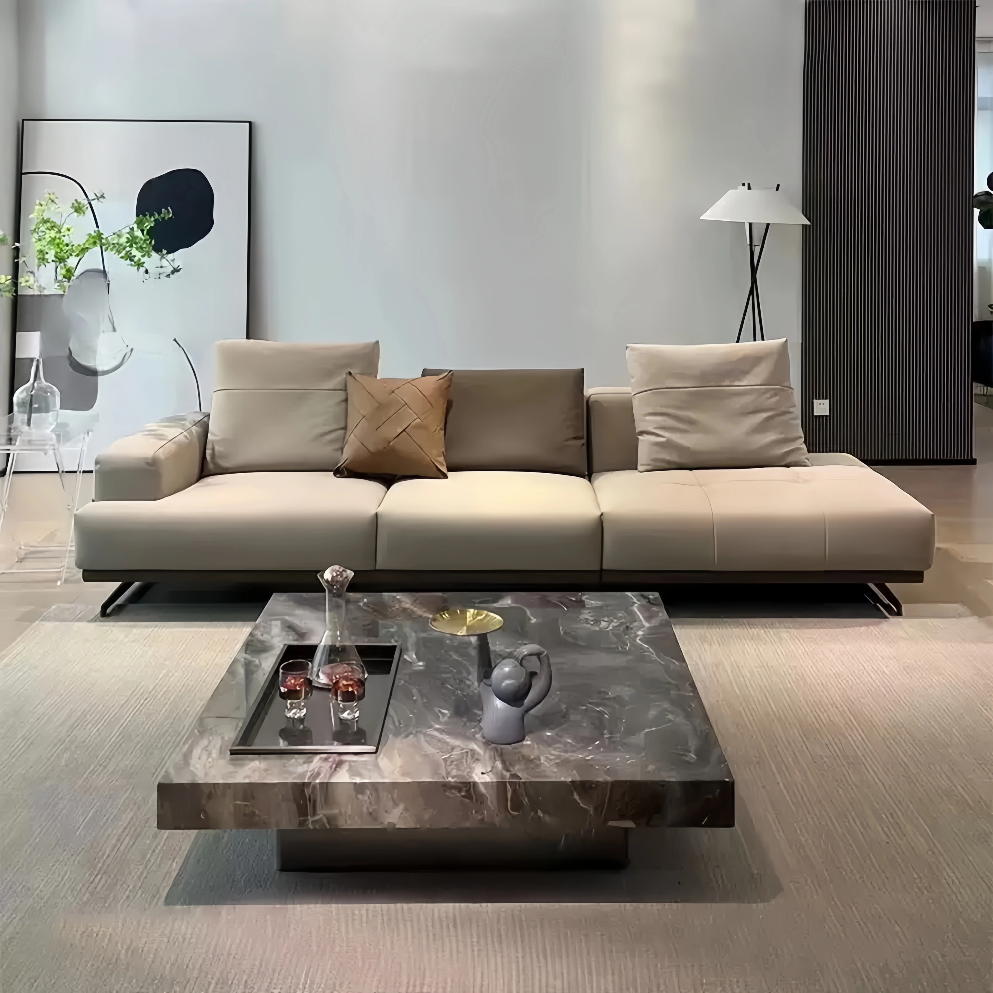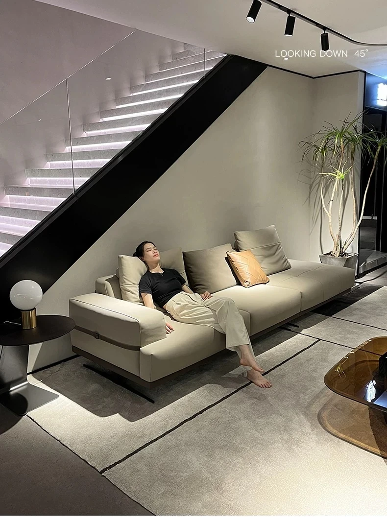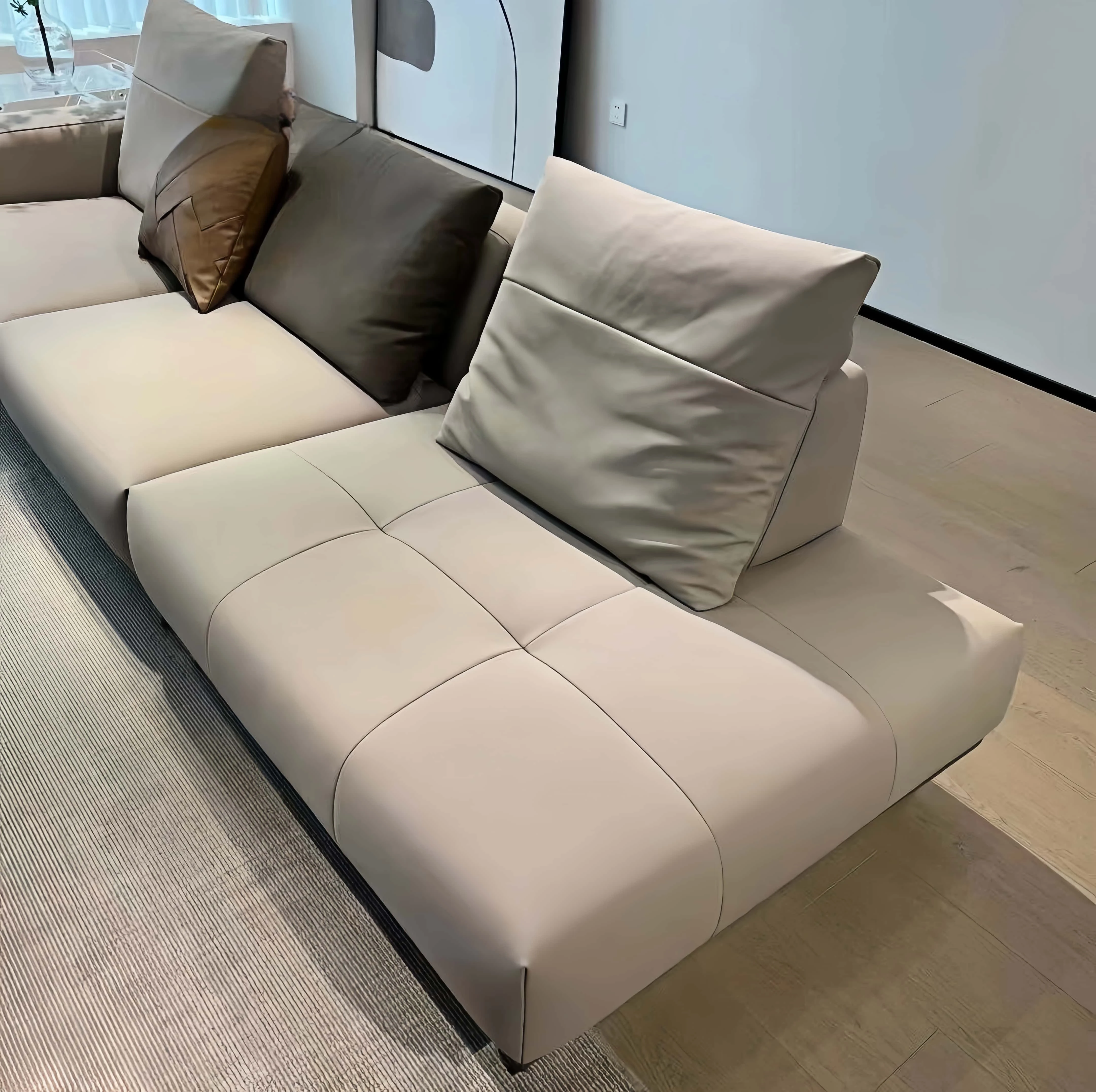 Modern Italian Minimalist Genuine Leather Sofa for Spacious Villas - Designer Creative Straight-Line Three-Seater for Large Living Rooms