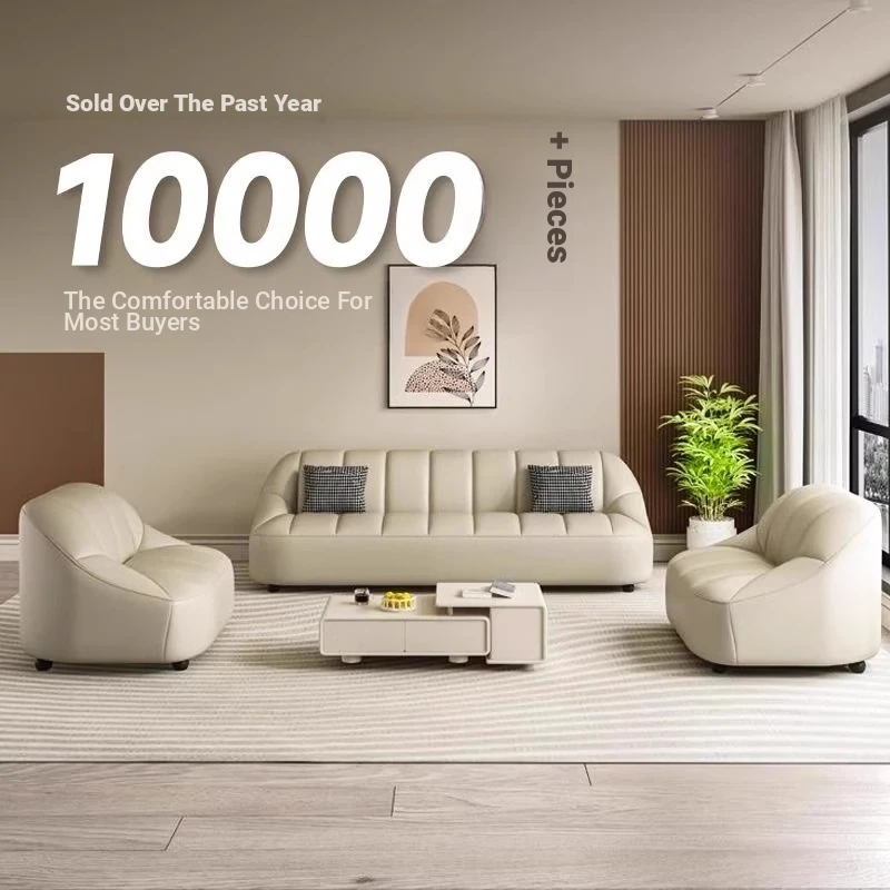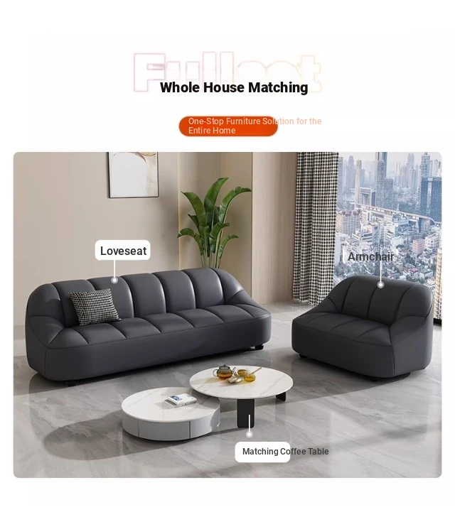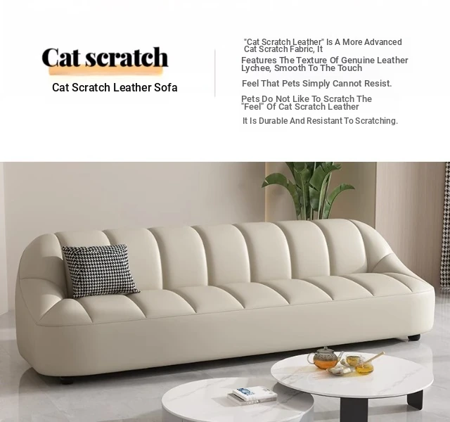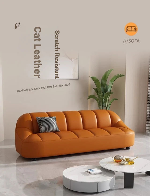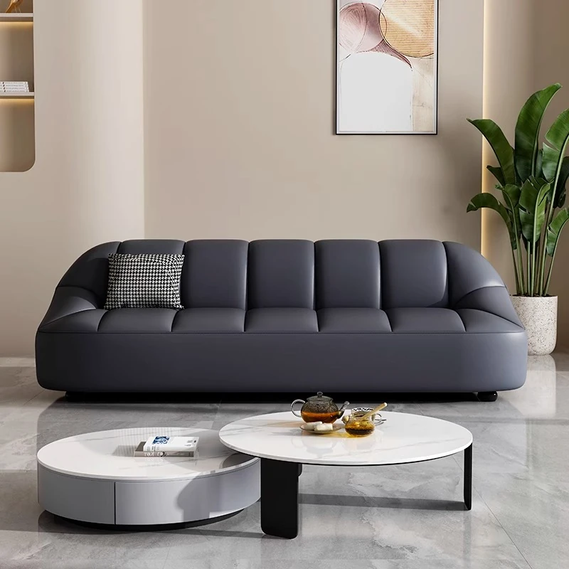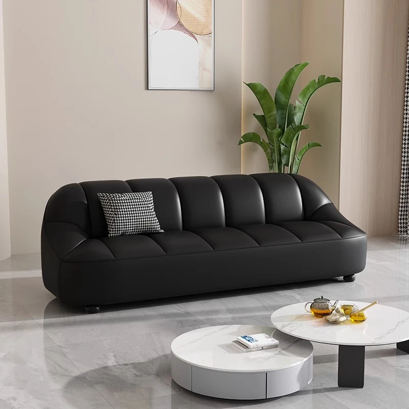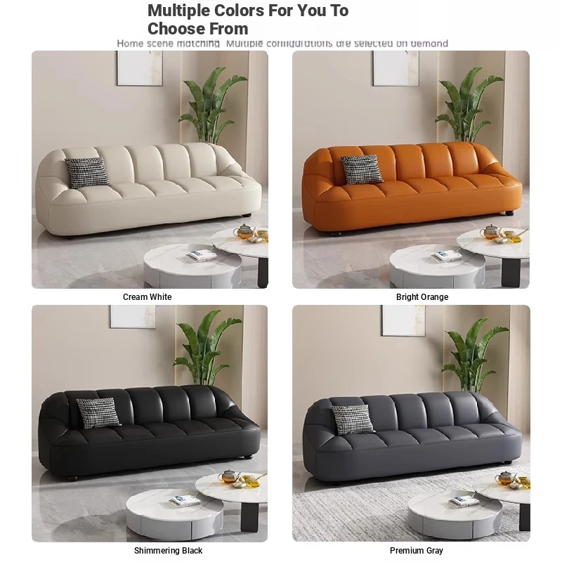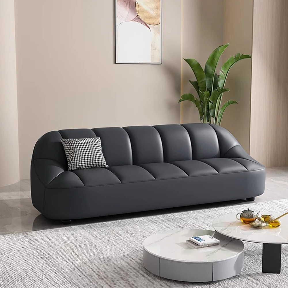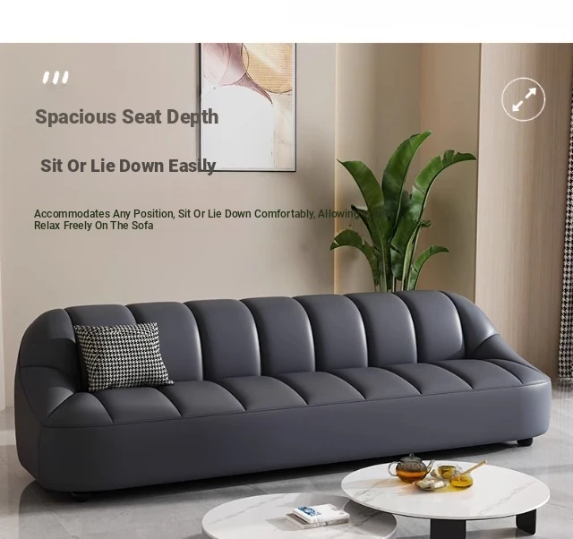 Modern Italian Minimalist Sofa for Living Room and Apartment - Stylish Luxury Office and Business Reception Leather Straight Sofa
