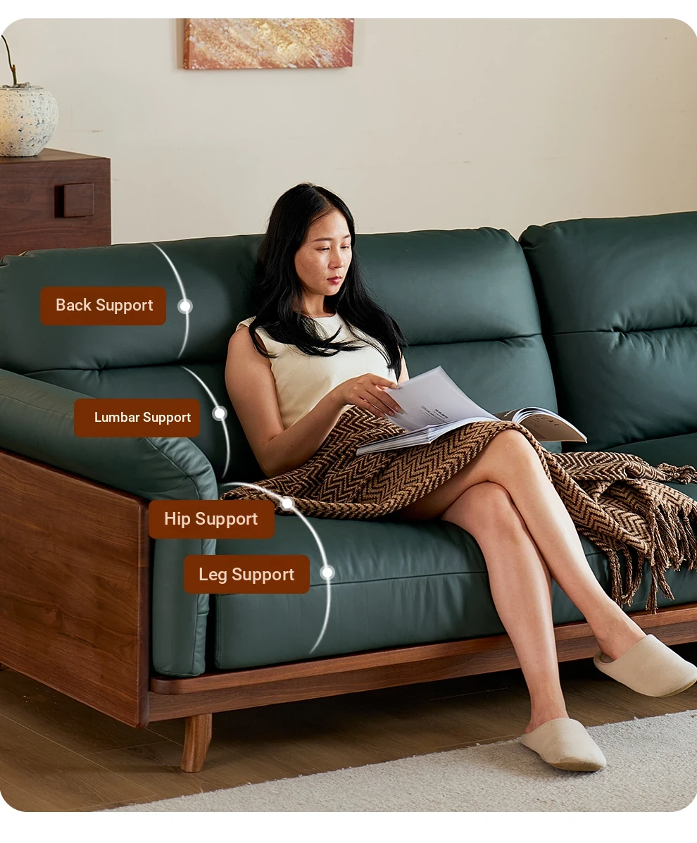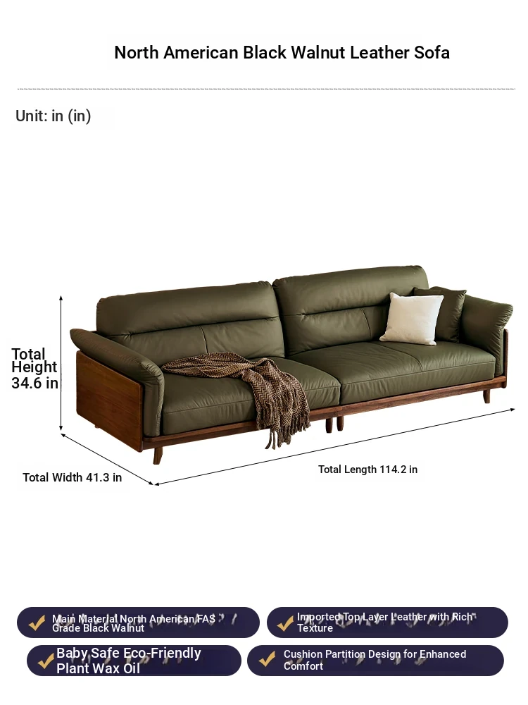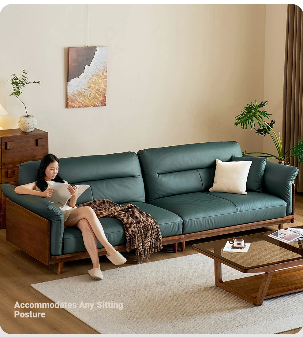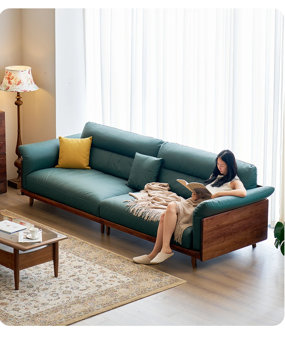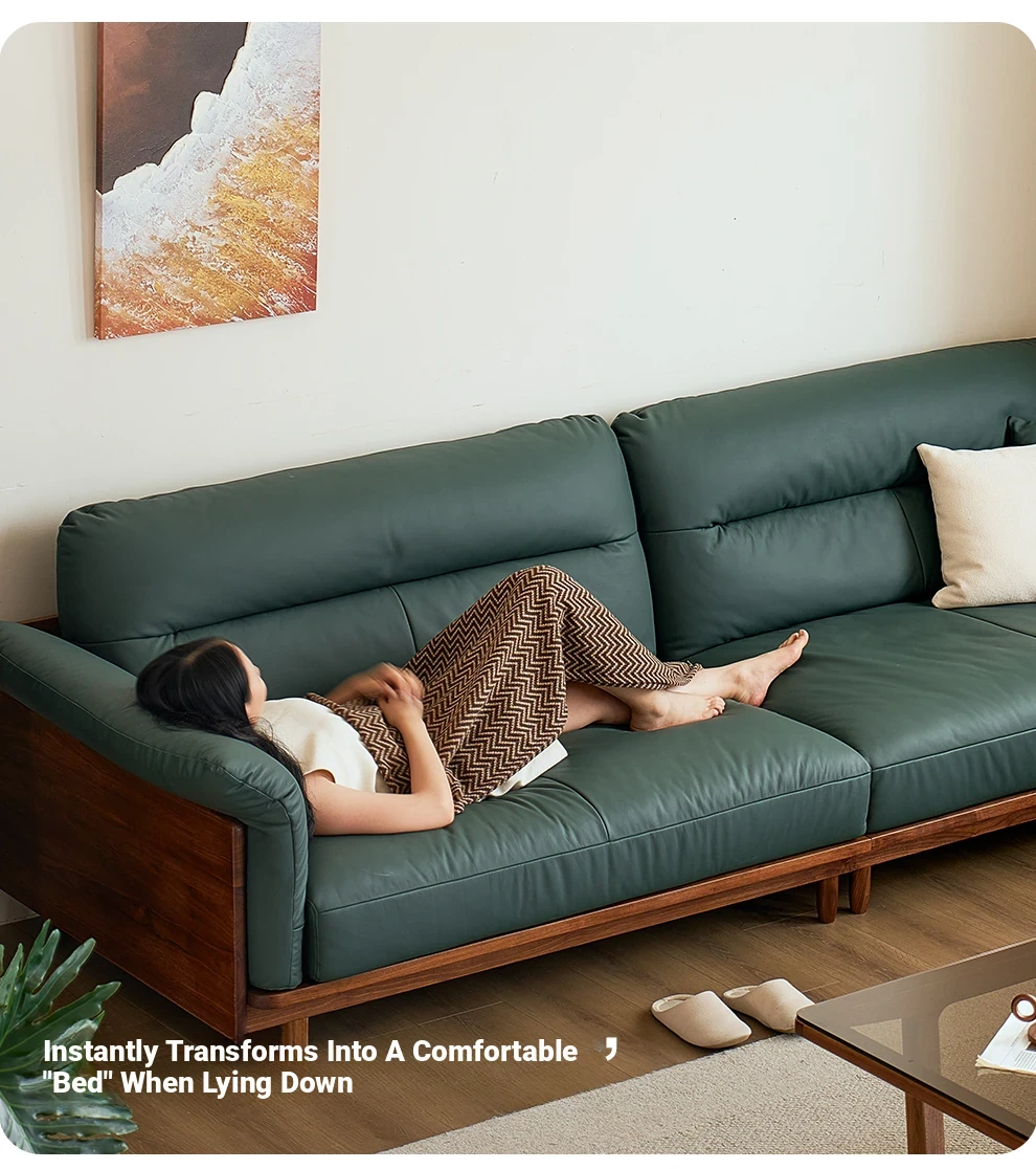 Modern Minimalist Real Leather Sofa with Solid North American Black Walnut Frame - Stylish and Durable Living Room Furniture for Home