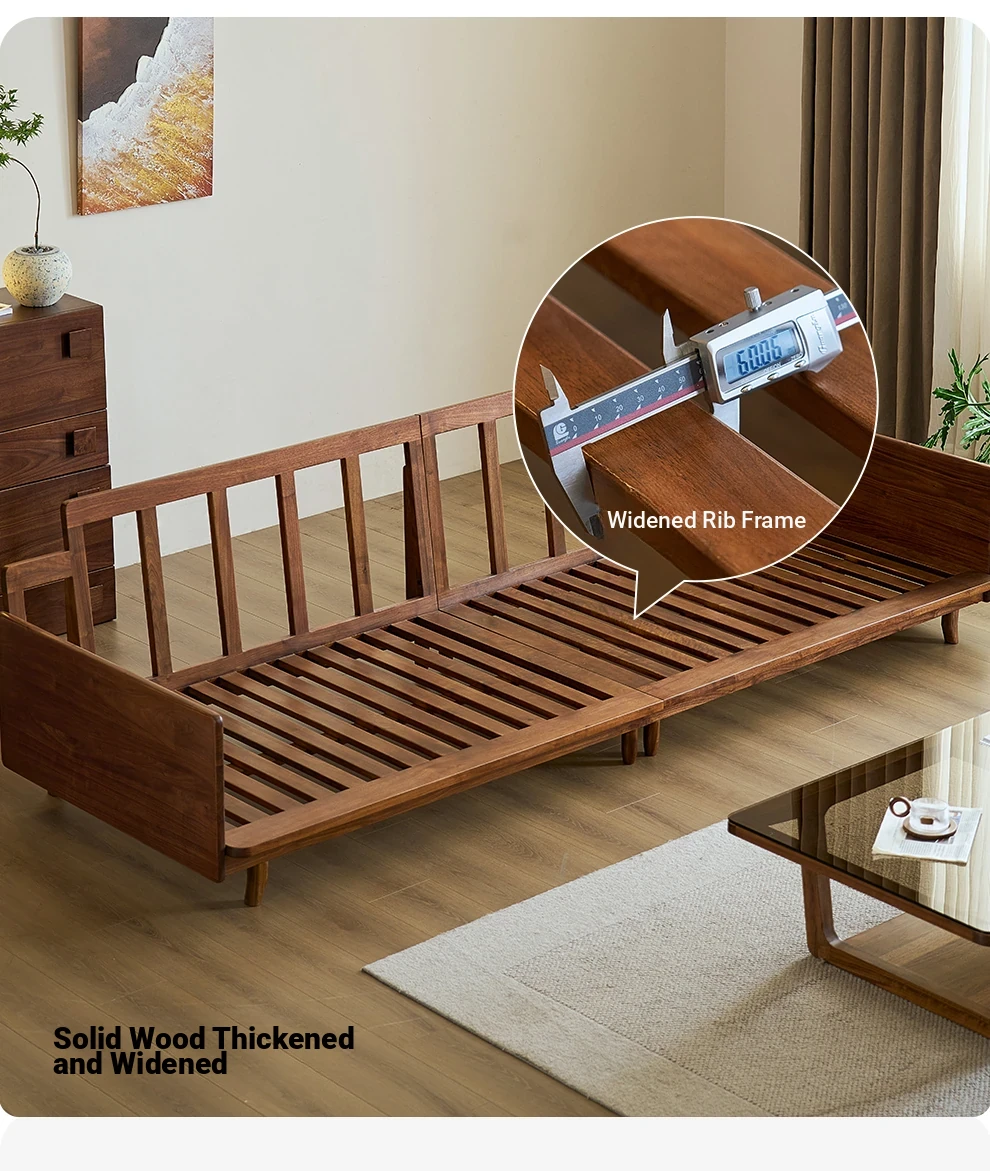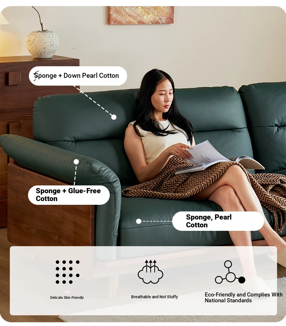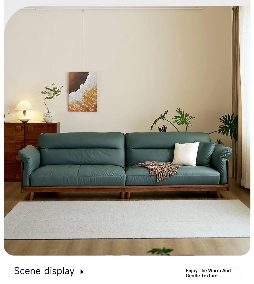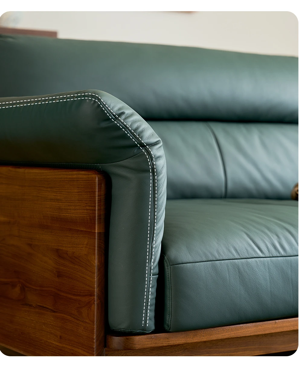 Modern Minimalist Real Leather Sofa with Solid North American Black Walnut Frame - Stylish and Durable Living Room Furniture for Home
