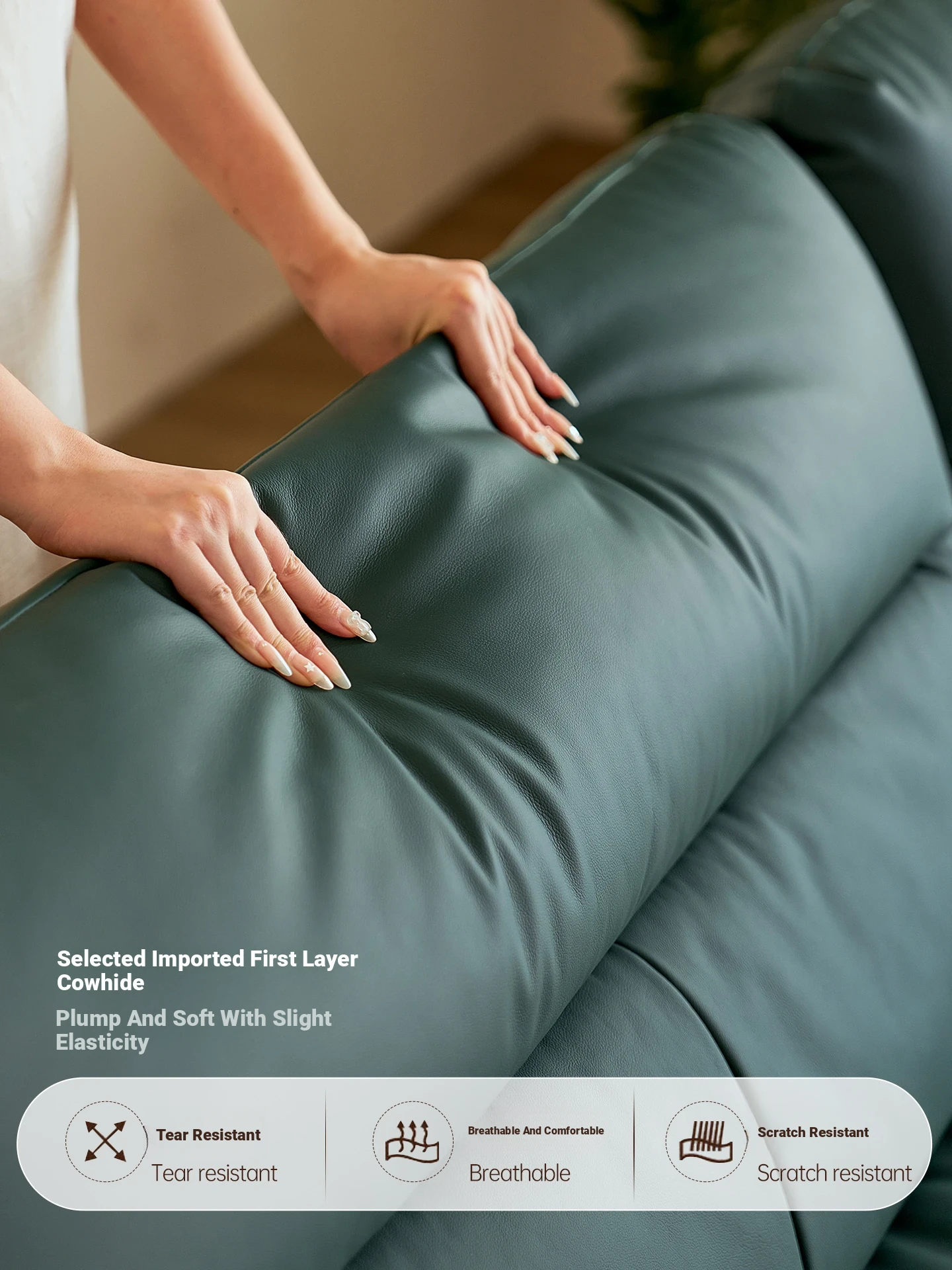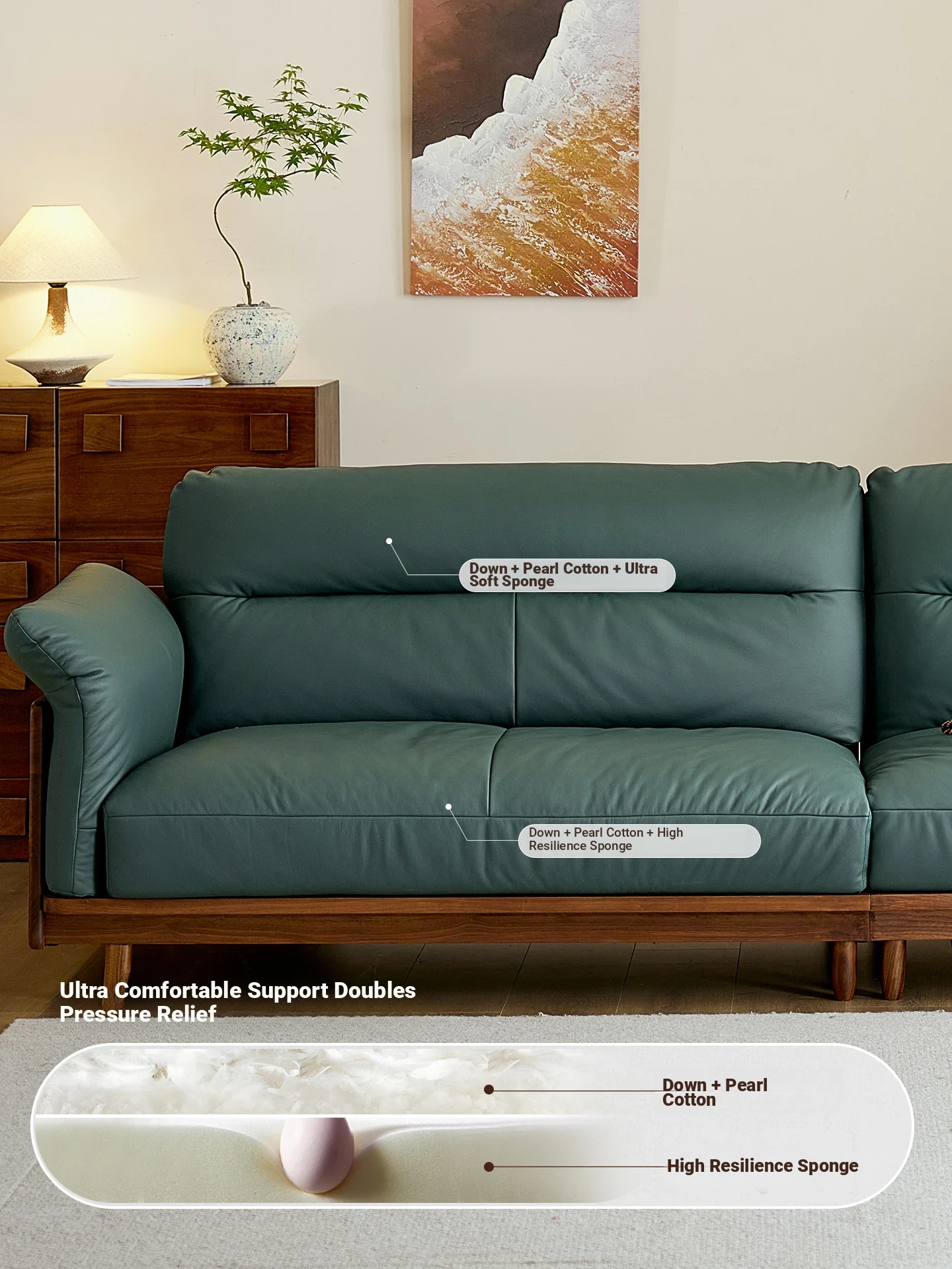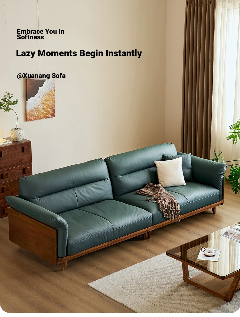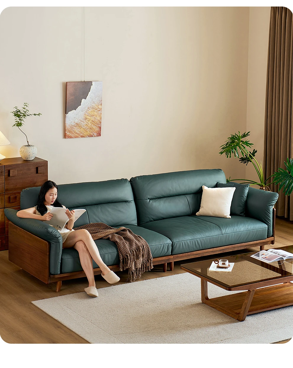Modern Minimalist Real Leather Sofa with Solid North American Black Walnut Frame - Stylish and Durable Living Room Furniture for Home
