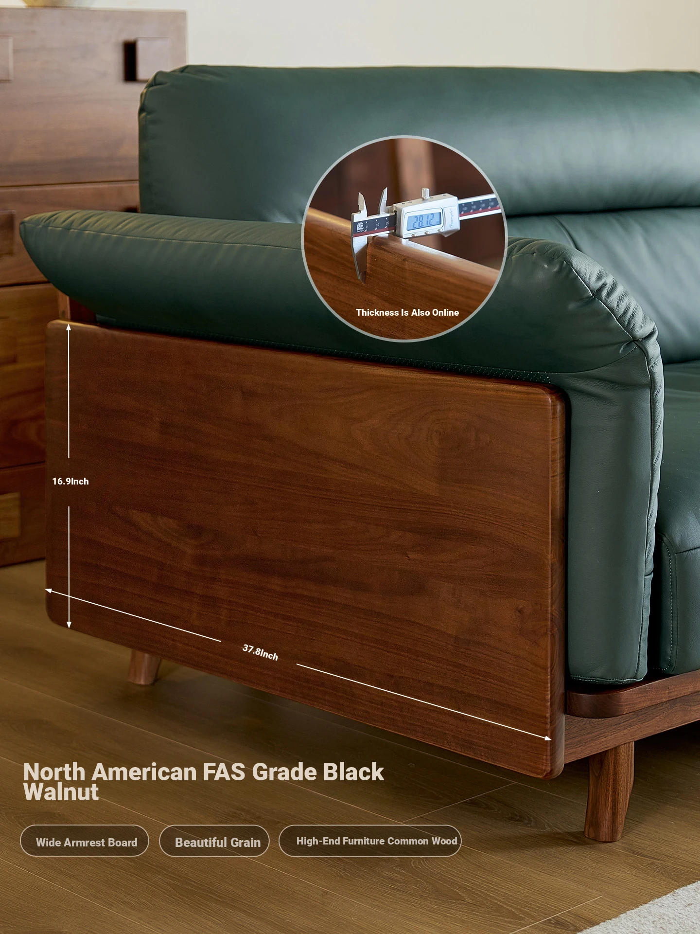 Black walnut four-person sofa [dark green]]