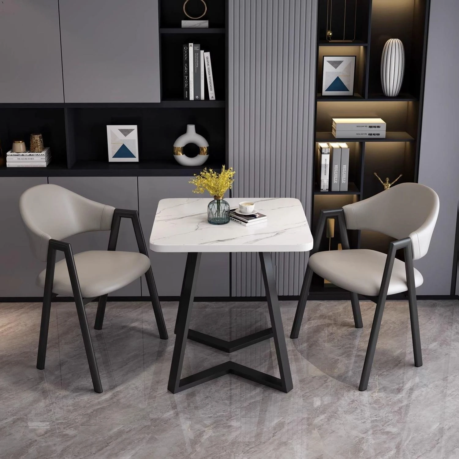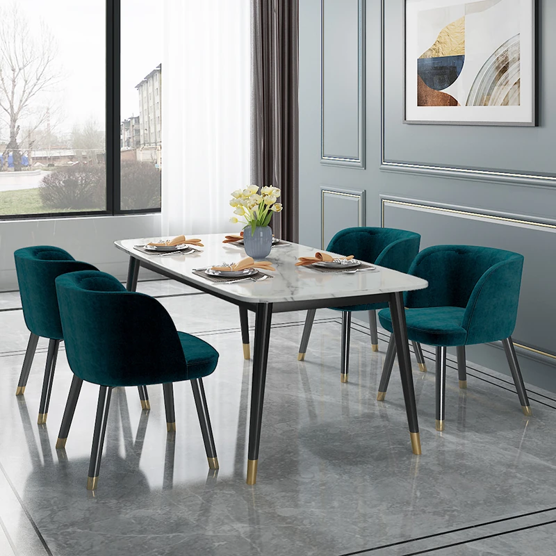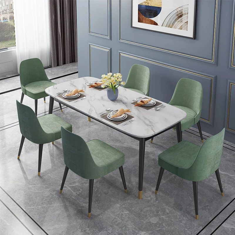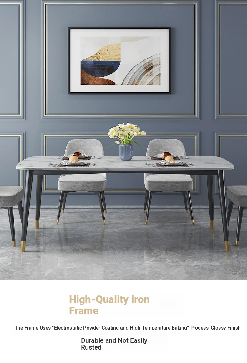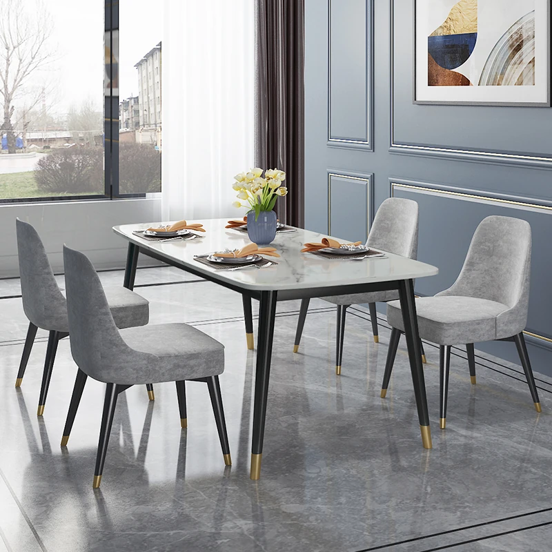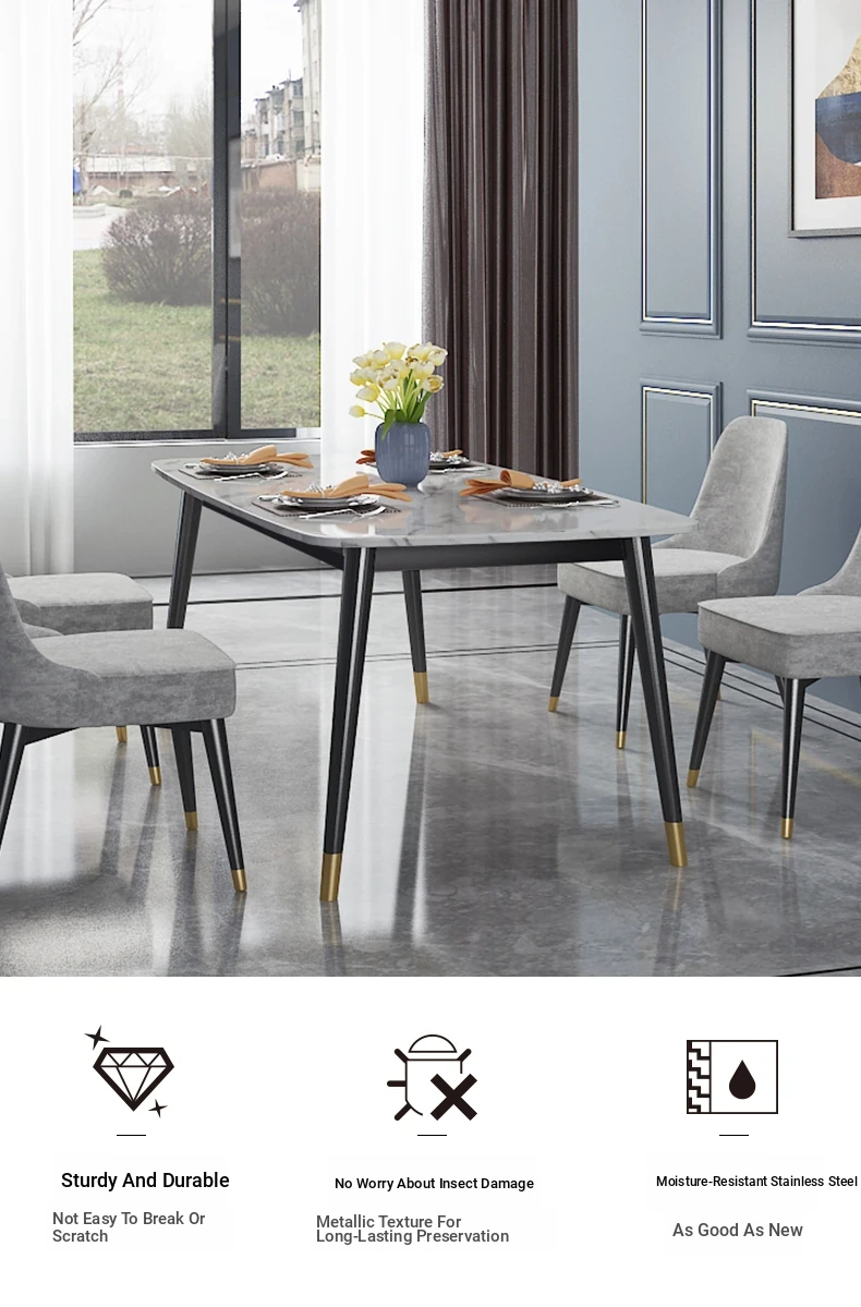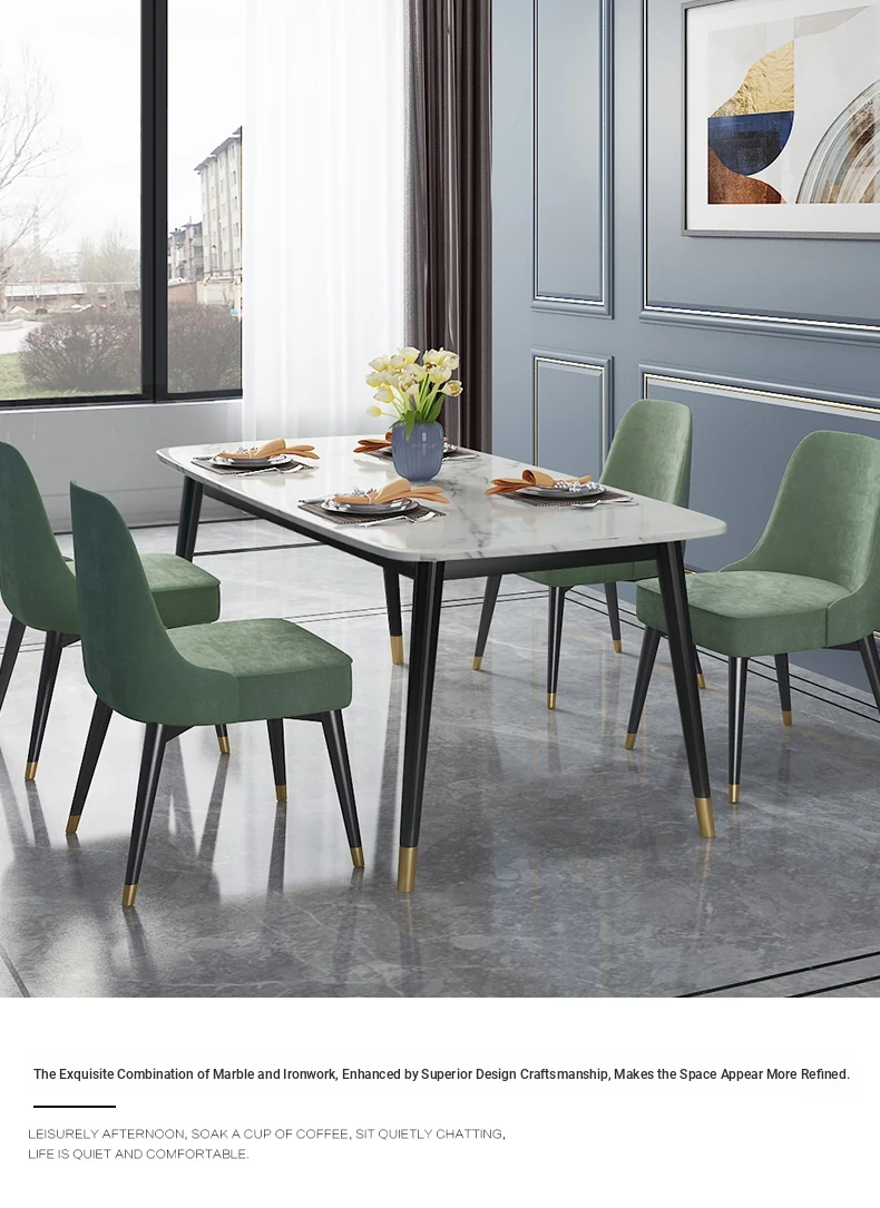 Modern Minimalist Rectangular Dining Table and Chair Set for Small Spaces - Lightweight Faux Marble, Elegant and Easy to Assemble, Perfect for Home Dining Experience.