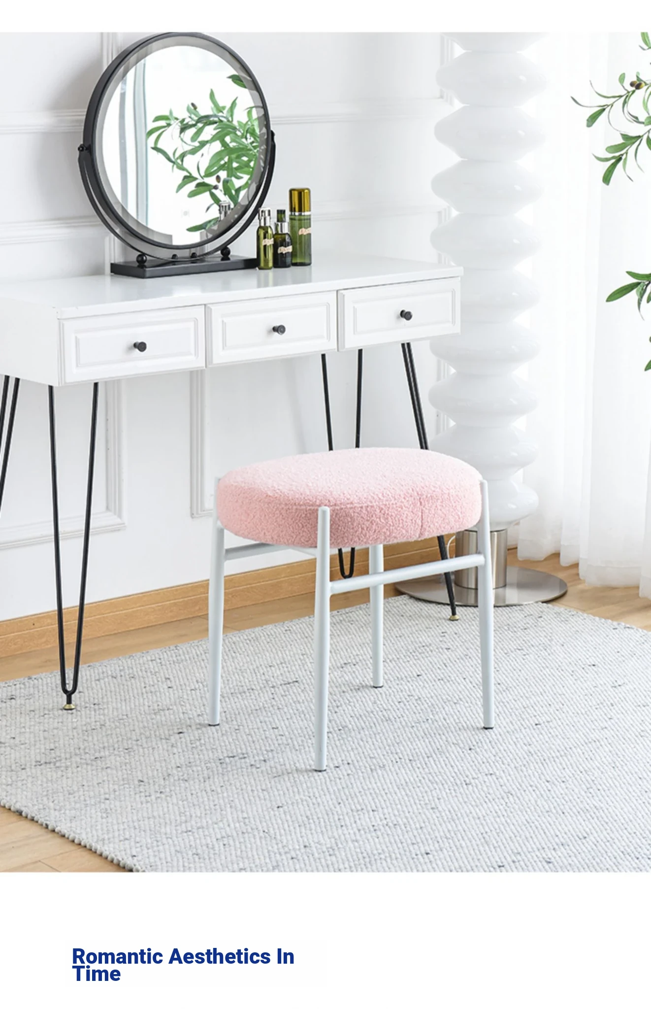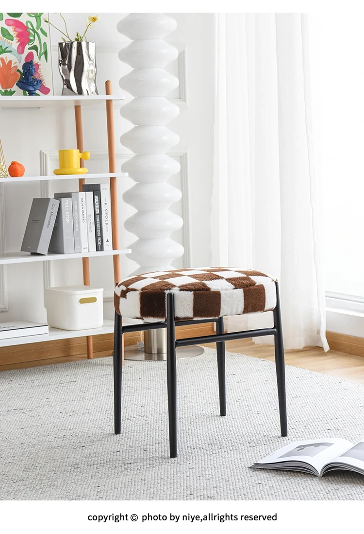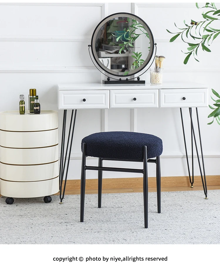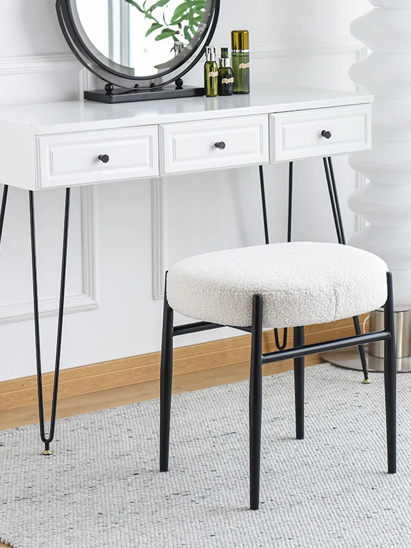 Nordic Ins Style Vanity Stool - Elegant and Minimalist Bedroom Makeup Chair, Trendy Fabric Single Seat for Home Use