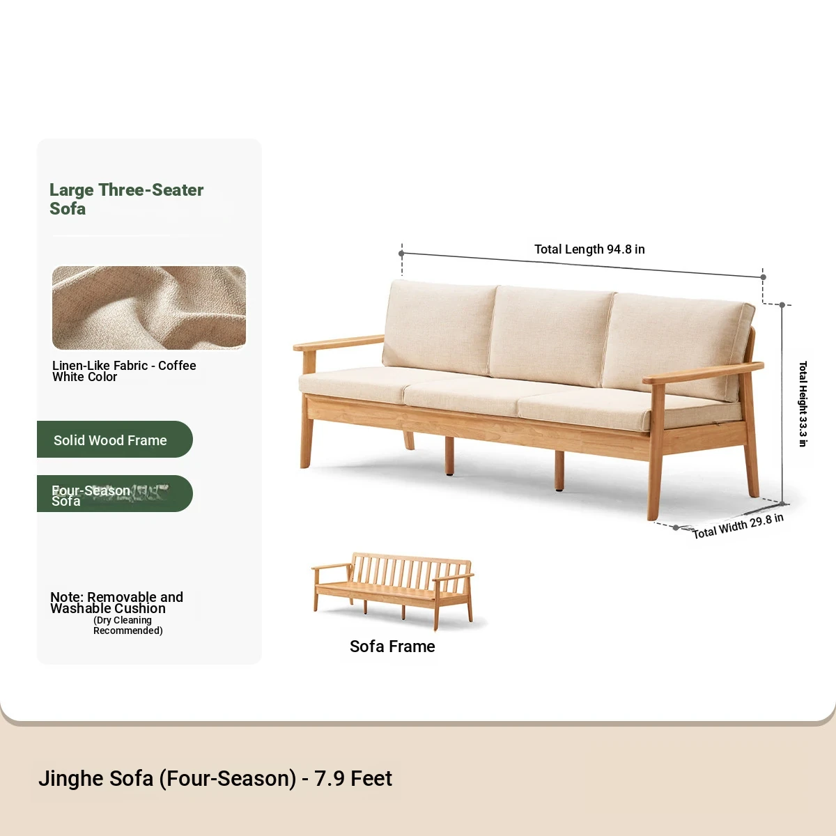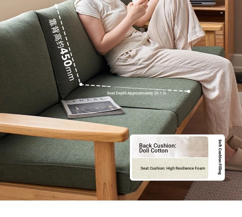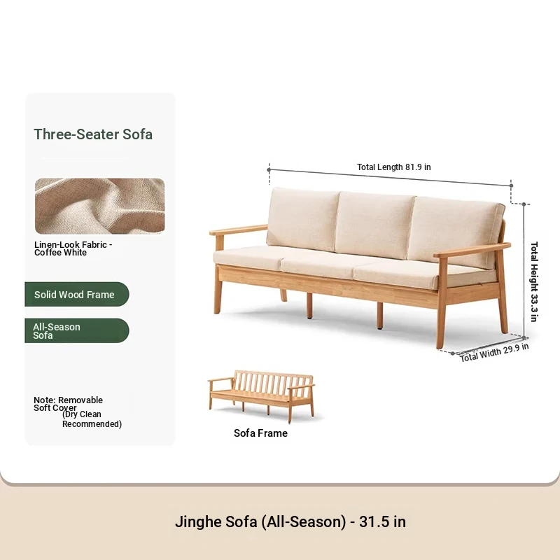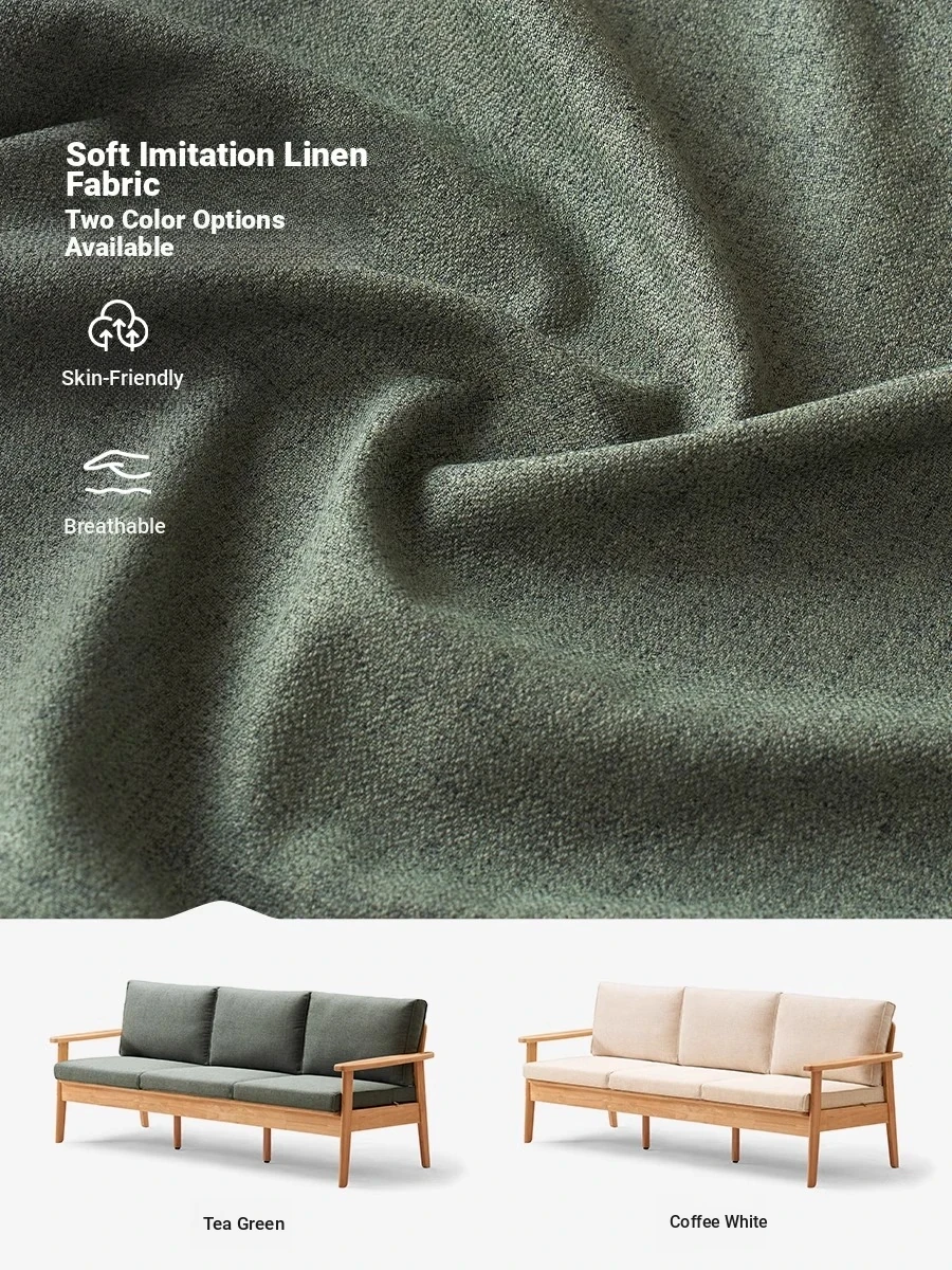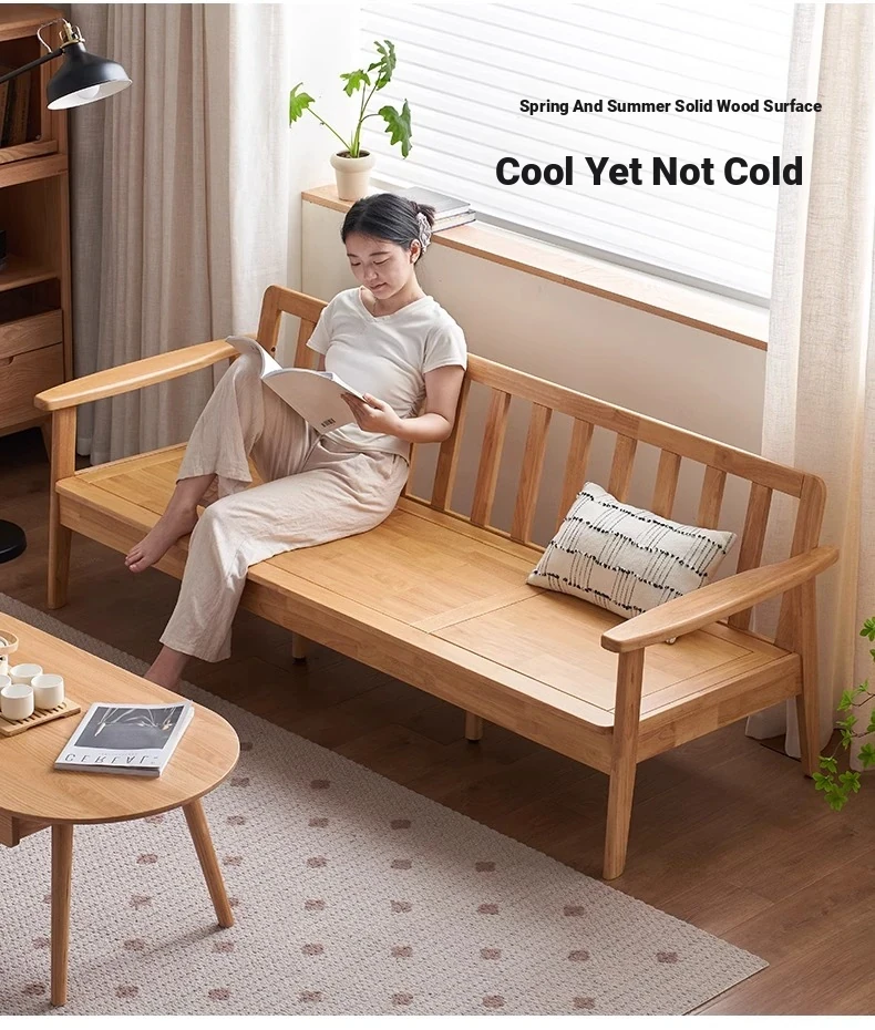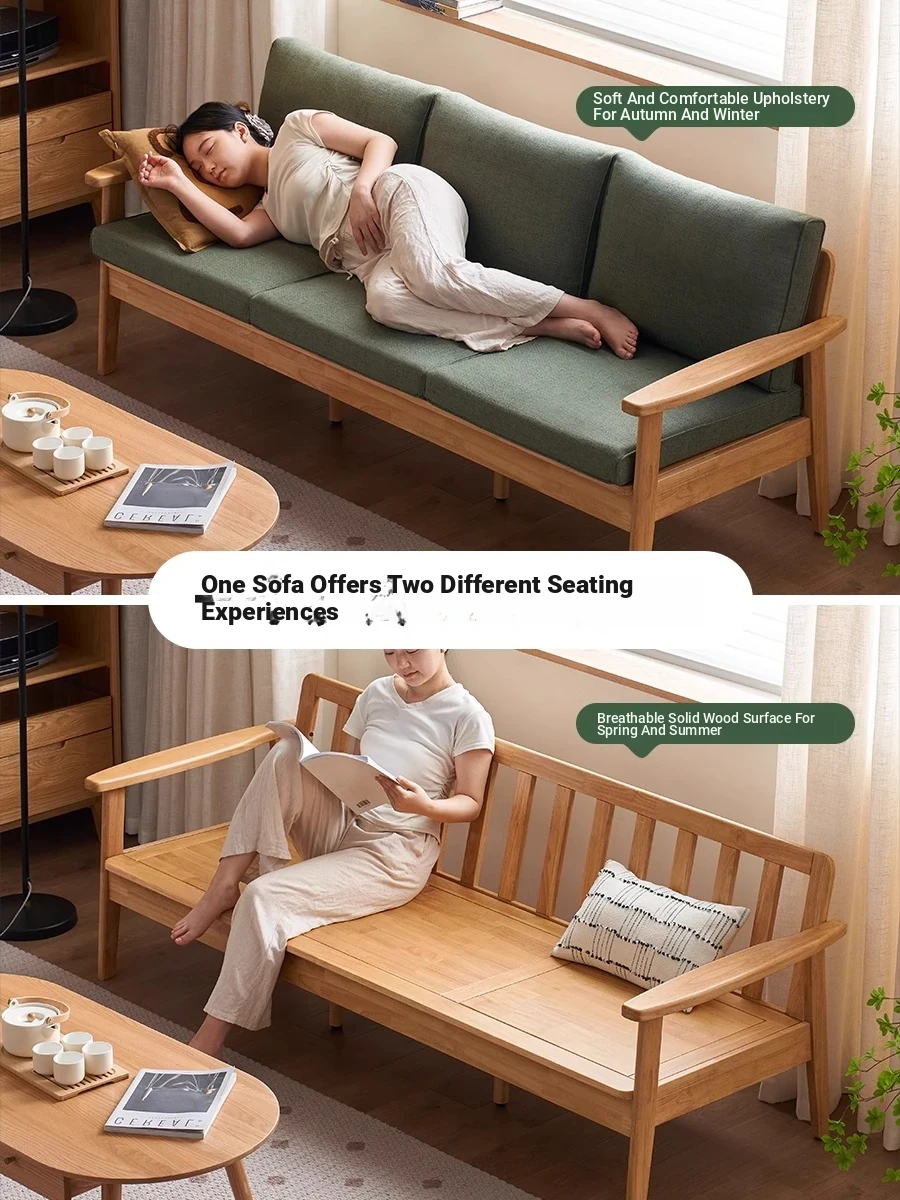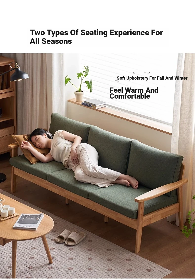 Nordic Solid Wood Sofa for Small Living Rooms - Versatile Japanese-Style Three-Seater Fabric Sofa for All Seasons, Minimalist Design Perfect for Cozy Spaces