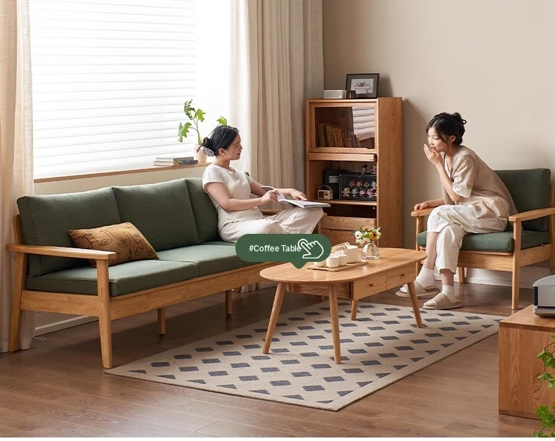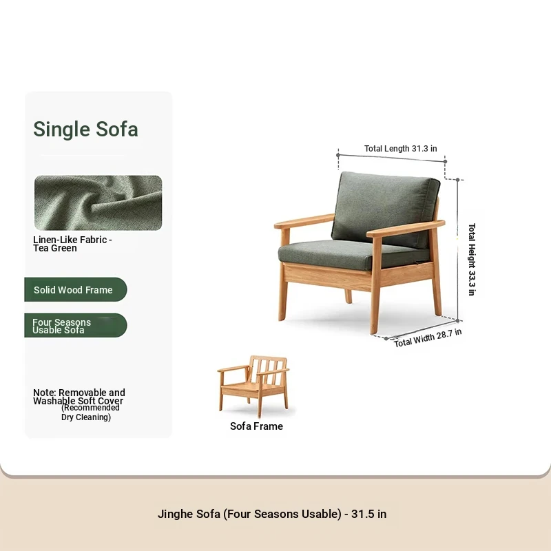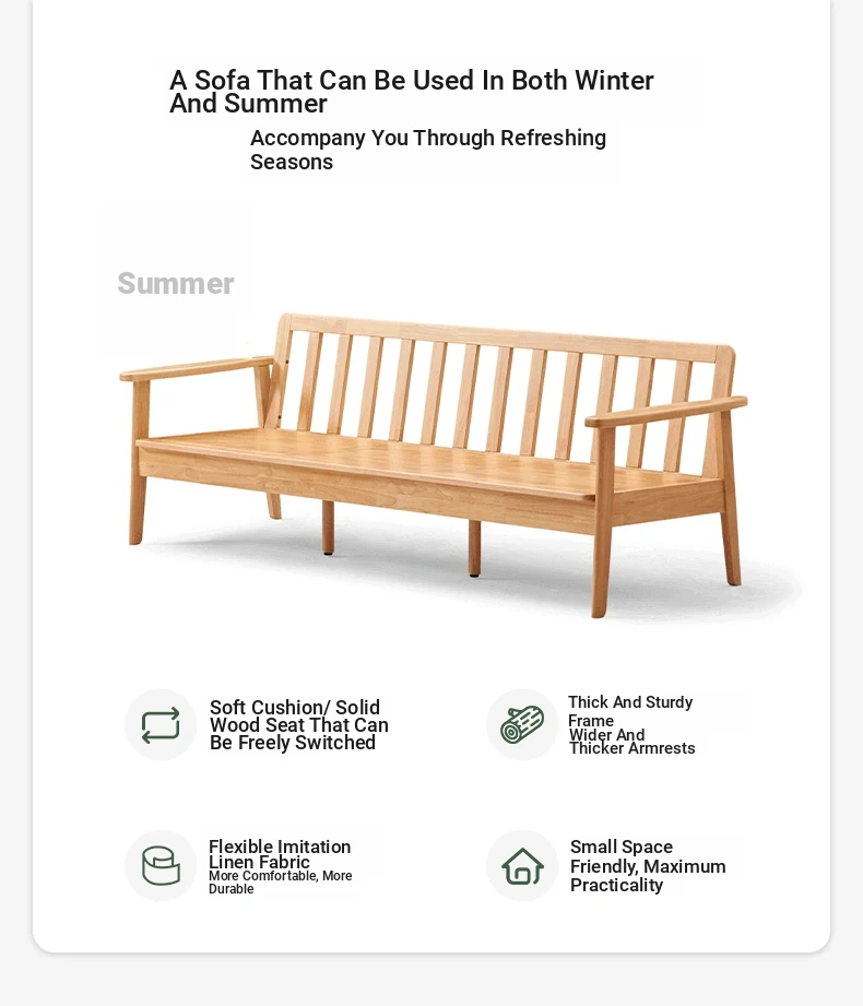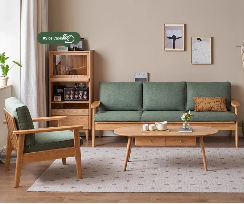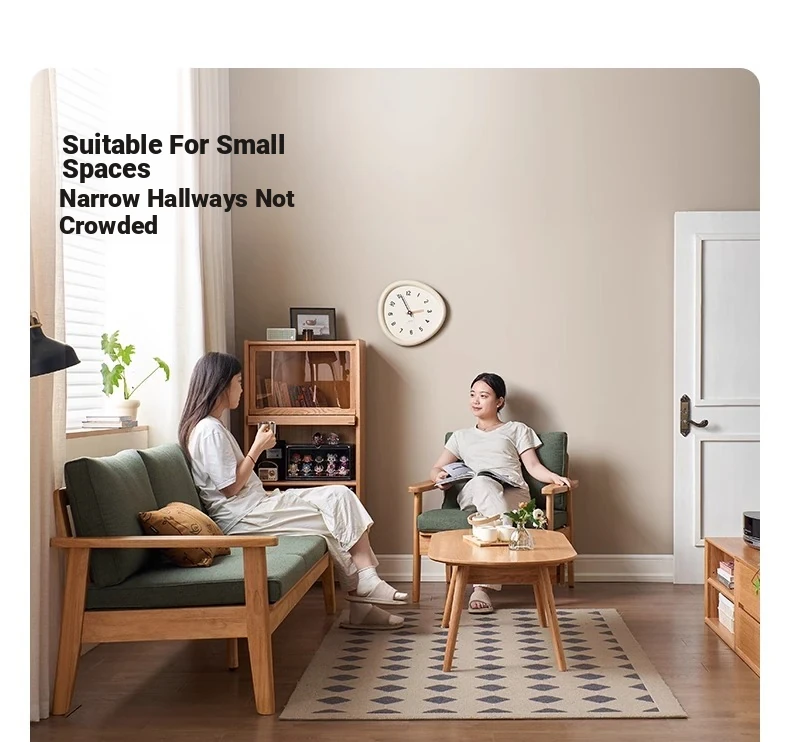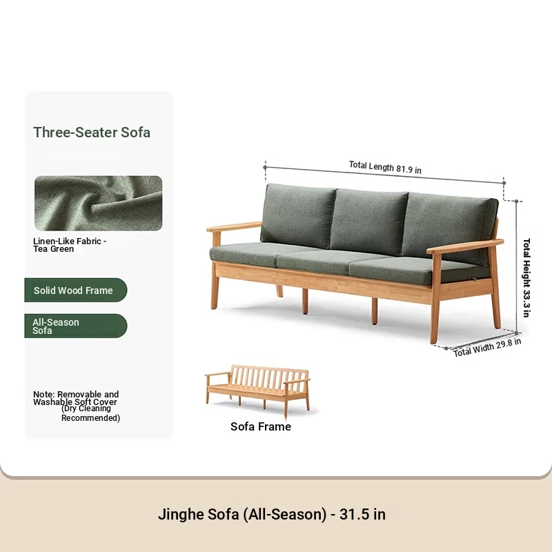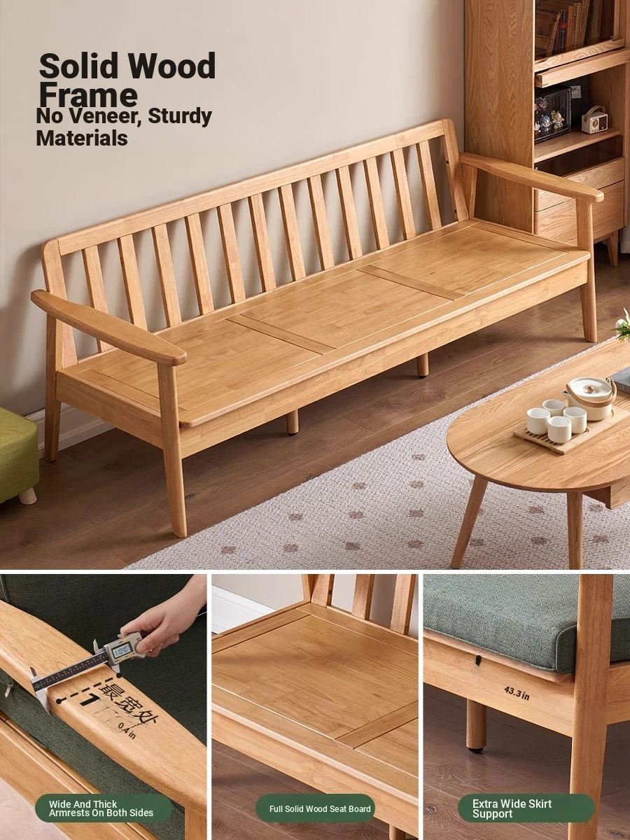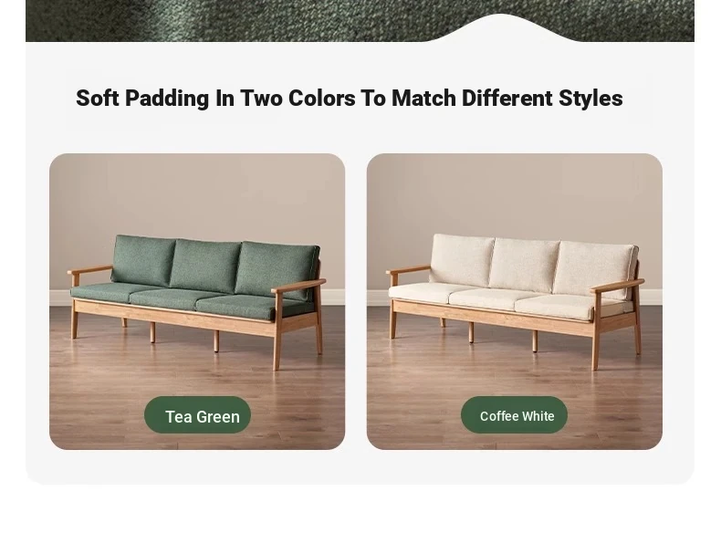 Nordic Solid Wood Sofa for Small Living Rooms - Versatile Japanese-Style Three-Seater Fabric Sofa for All Seasons, Minimalist Design Perfect for Cozy Spaces