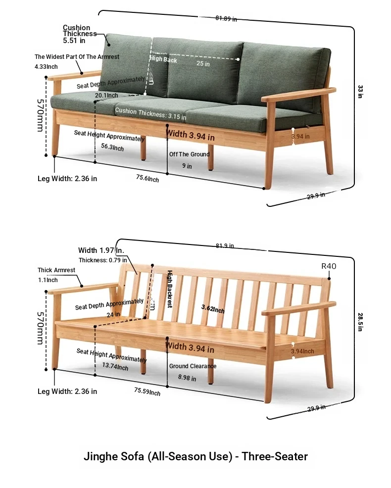 Winter and suiner dual-purpose three-person sofa (tea cyan pad) 81.81in*29.84in*28.50in