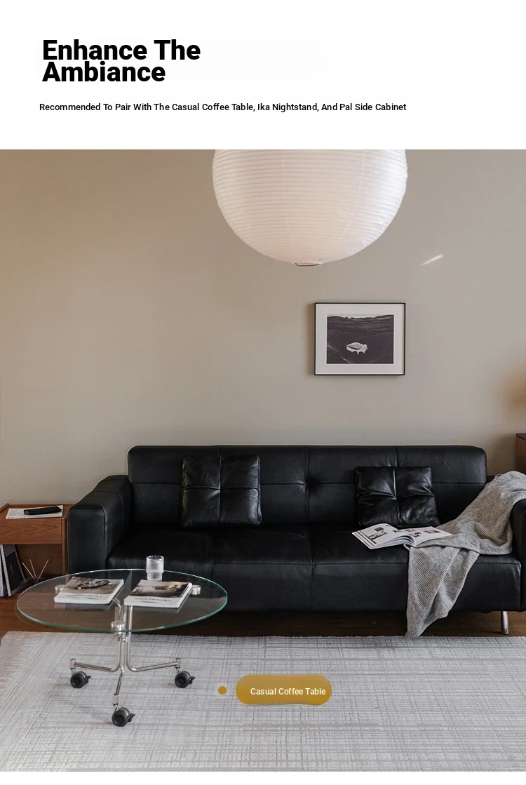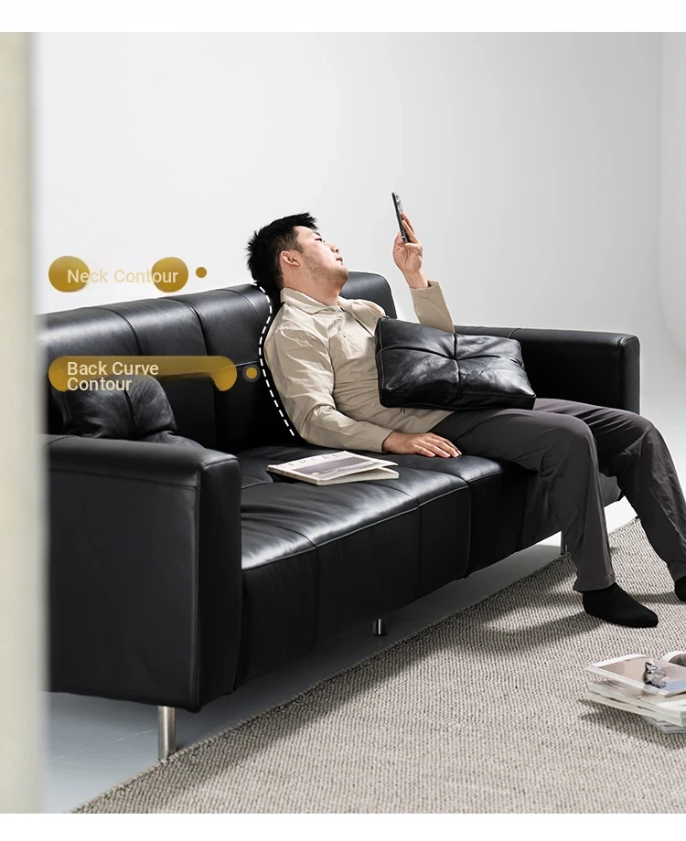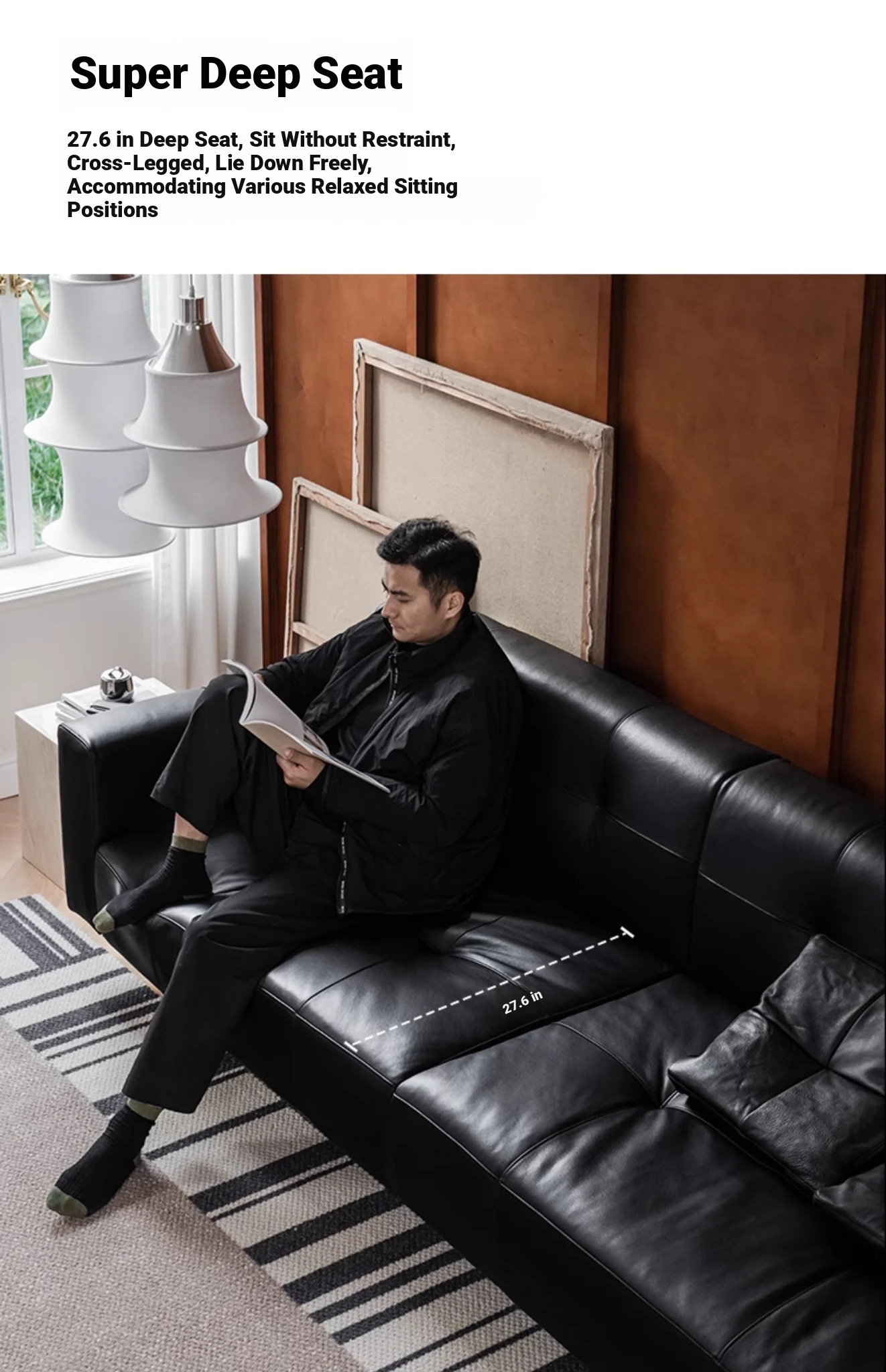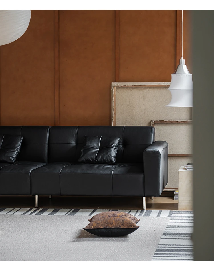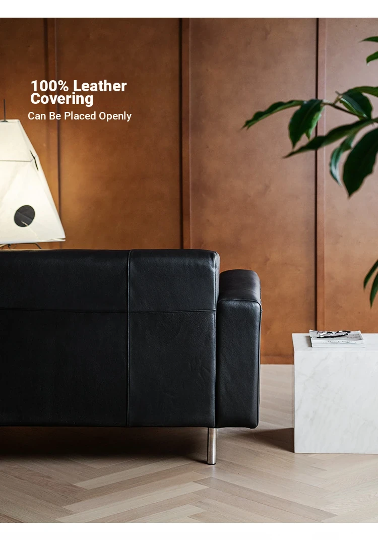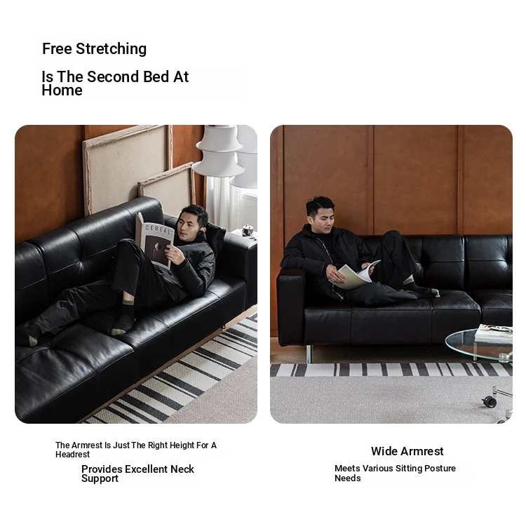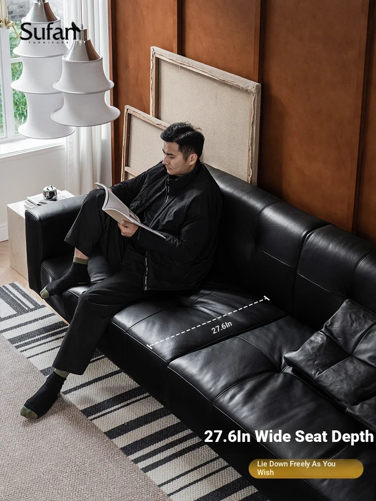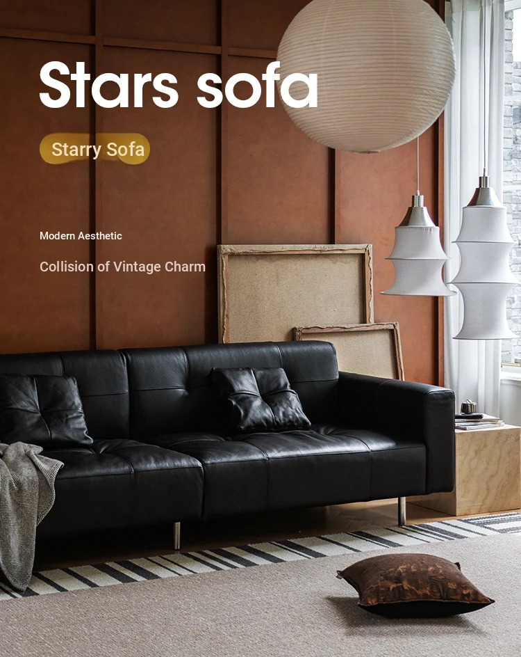 Shufan Starry Sky Sofa - Vintage Black Top-Grain Leather, Perfect for Small Spaces