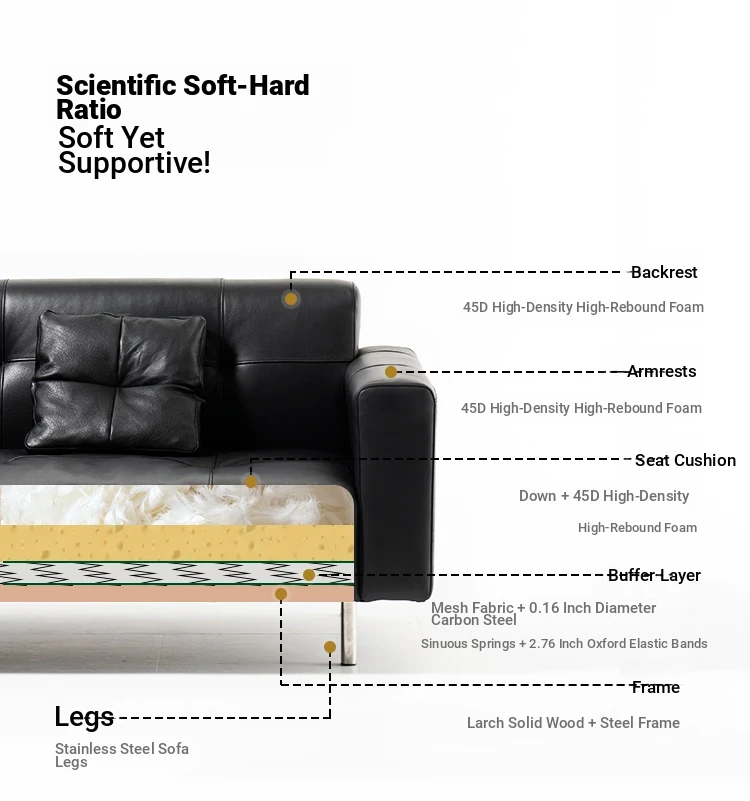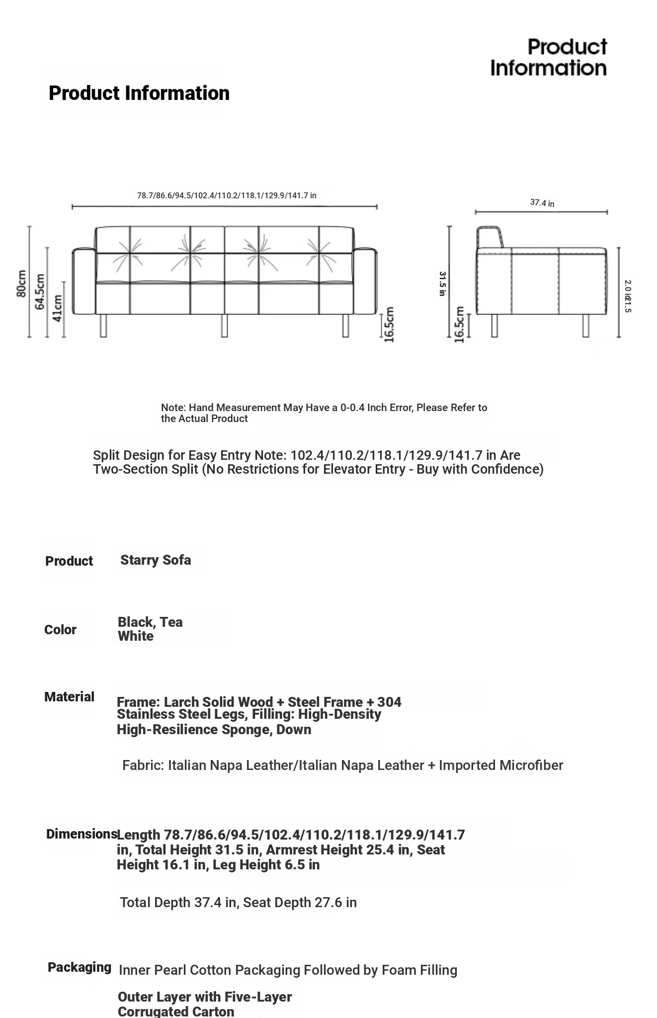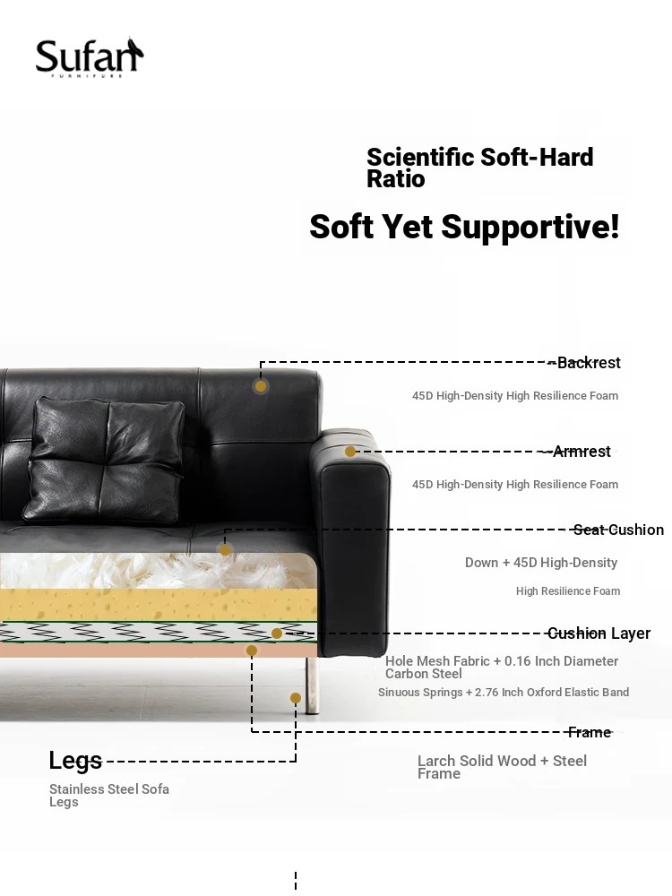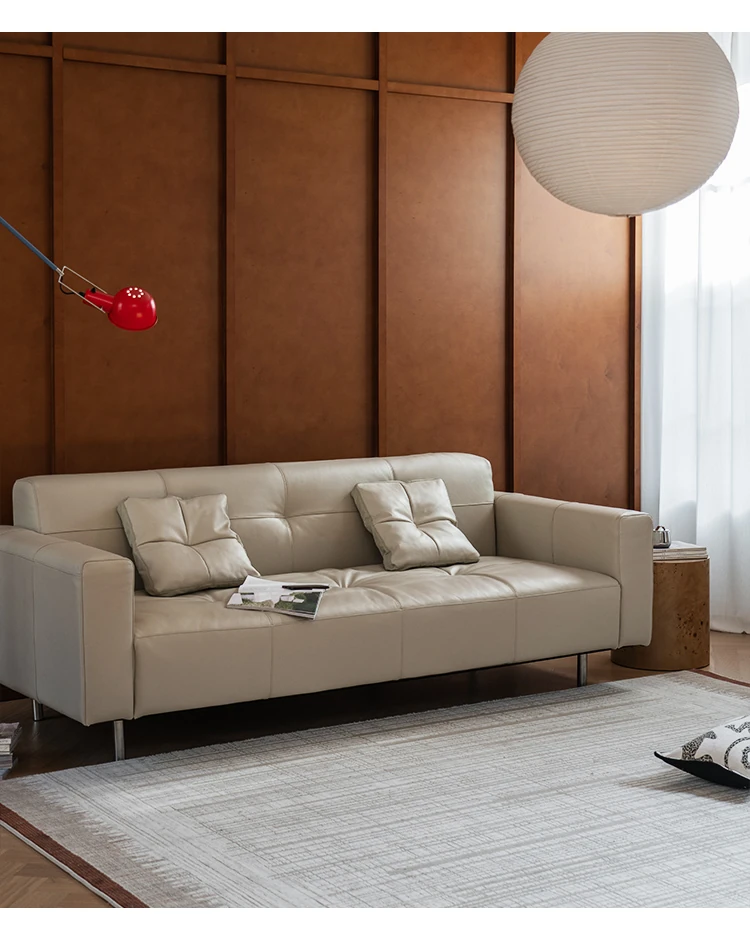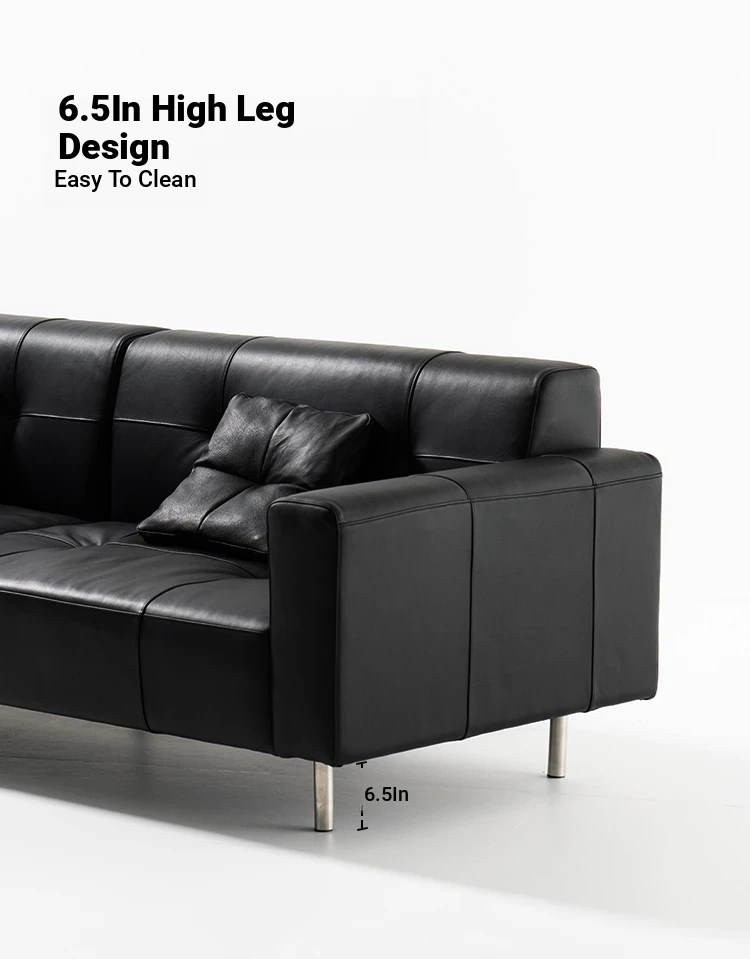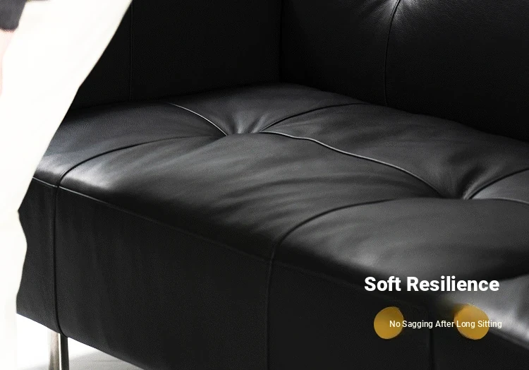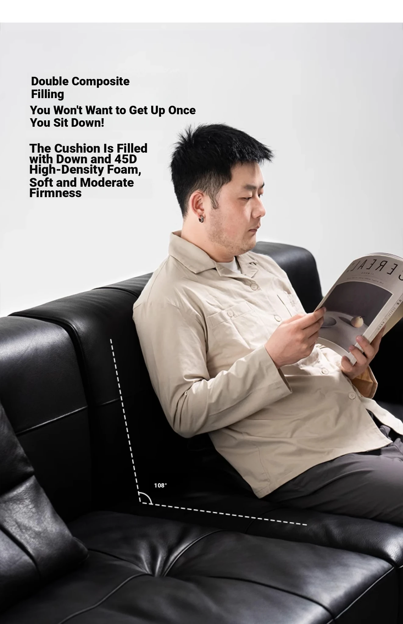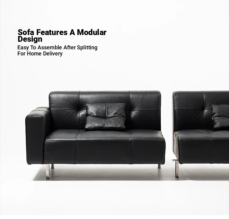 Shufan Starry Sky Sofa - Vintage Black Top-Grain Leather, Perfect for Small Spaces