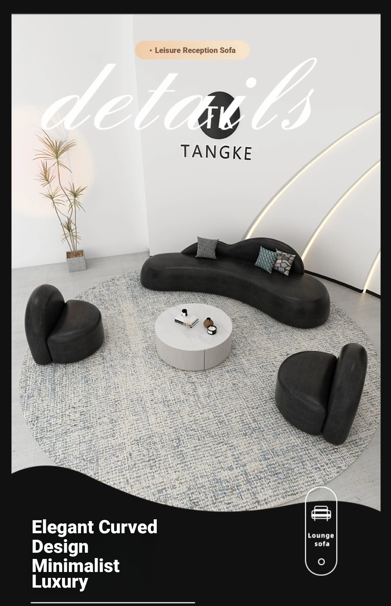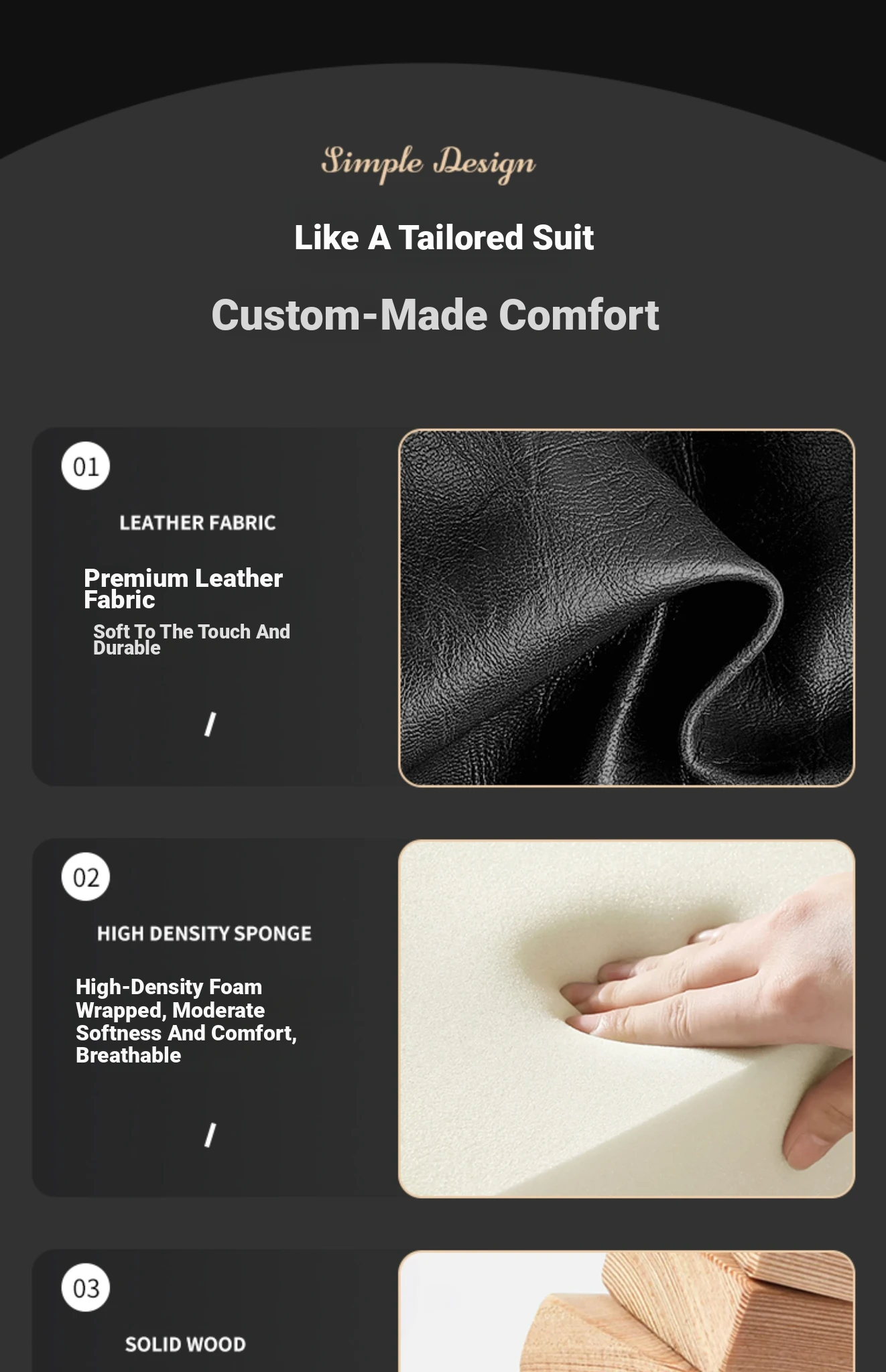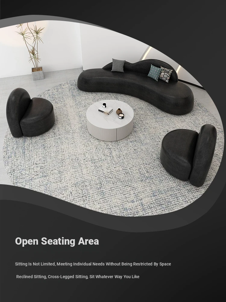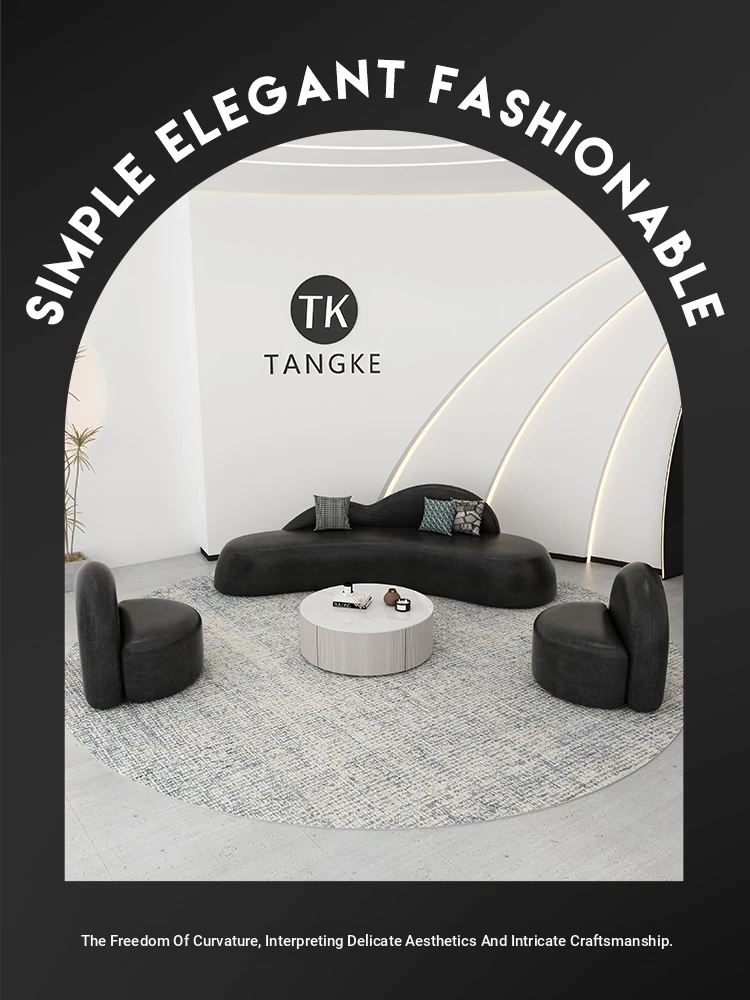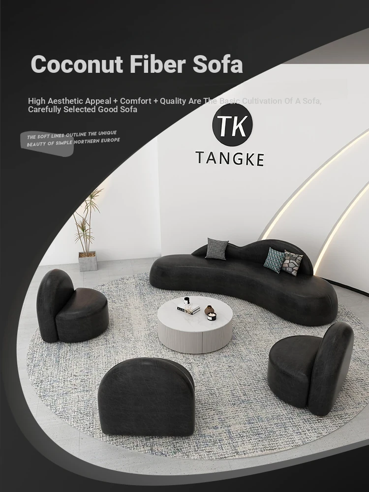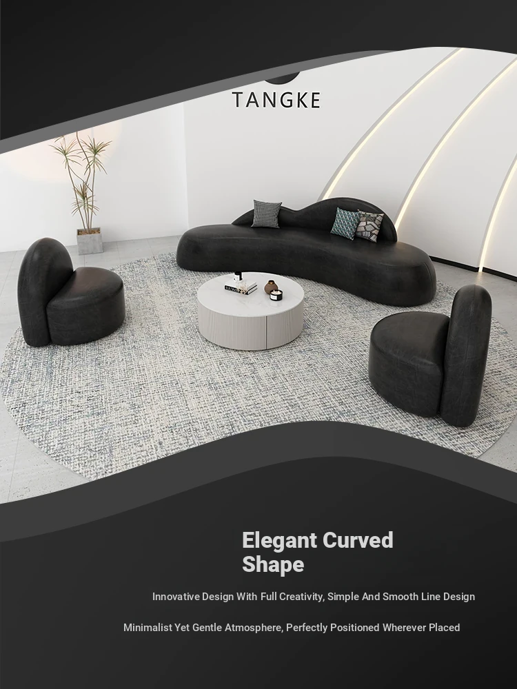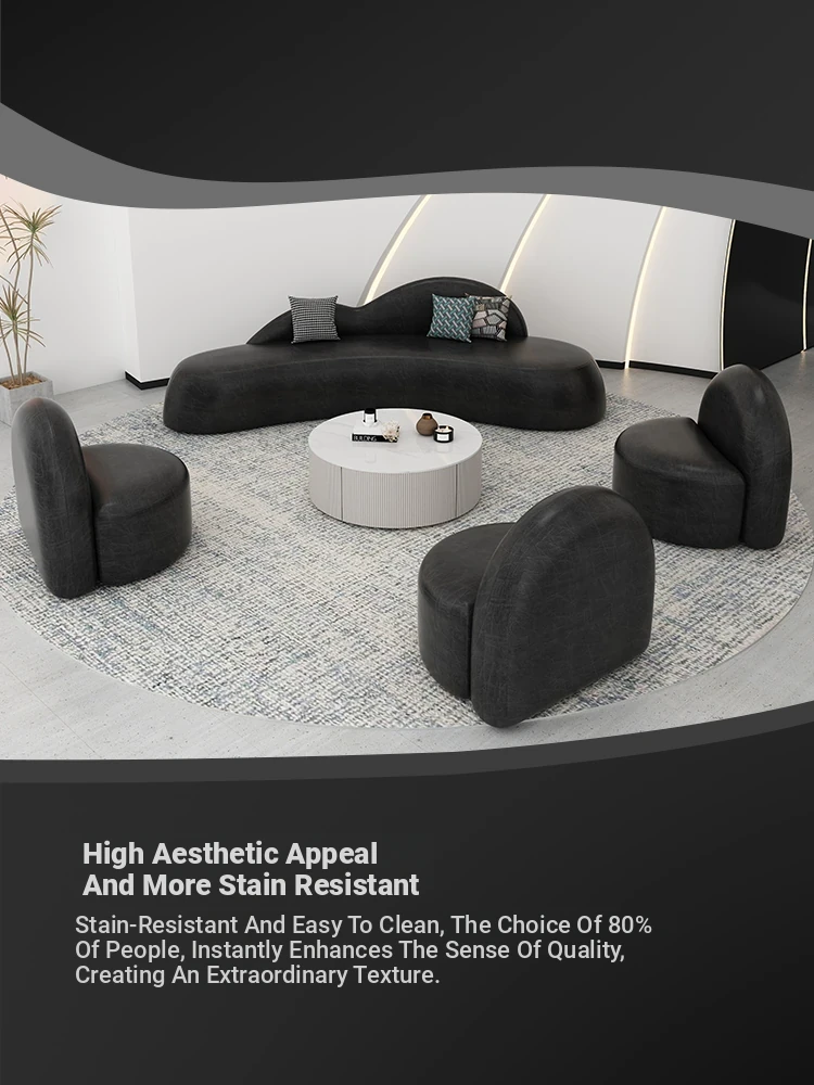 Stylish Shaped Faux Leather Sofa for Small Living Rooms, Perfect for Sales Offices, Beauty Salons, and Reception Areas - Comfortable Three-Seater Design