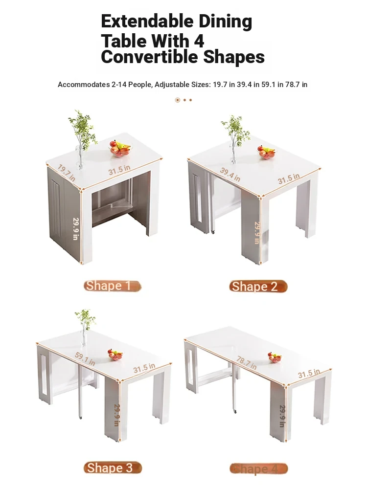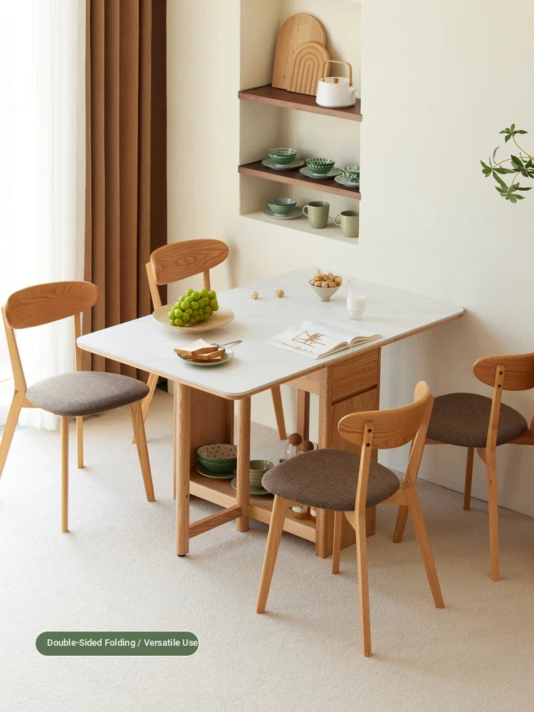 Modern Minimalist Solid Wood Folding Dining Table for Small Spaces – Ultra-Thin Multi-Functional Expandable Table with Rock Plate Surface, Perfect for Home Dining