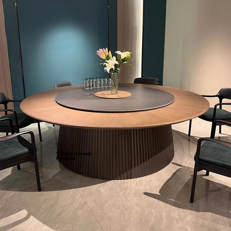 Electric Rotating Round Table with Solid Wood for Hotels - New Chinese Style Dining Table for 20 People, Perfect for Restaurants, Private Rooms, and Clubs. Ideal for Elegant Dining Experiences!