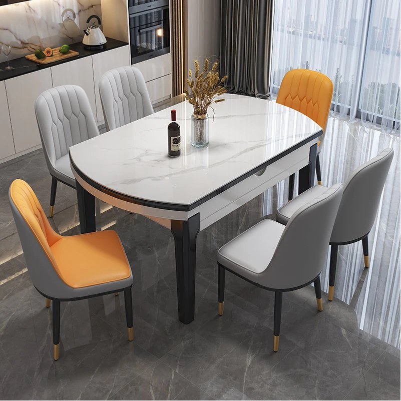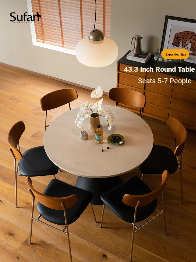 Shufan Expandable Round Dining Table / Foldable and Stretchable Oval Dining Table with Stone Top for Small Spaces - Japanese Vintage Home Dining Table