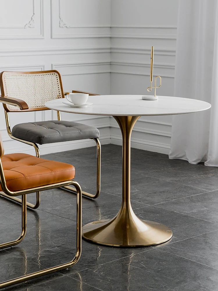 Nordic Minimalist Light Luxury Home Dining Table with Stainless Steel Titanium Gold Legs - White Tulip Round Conference Table