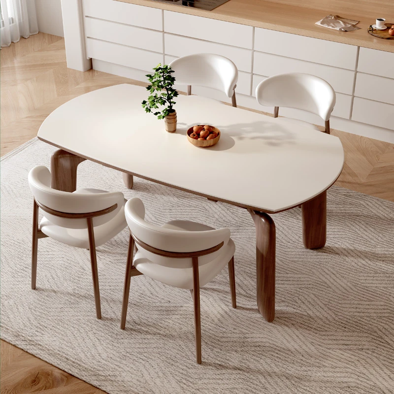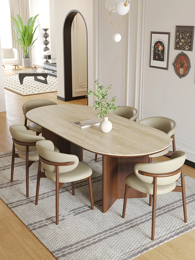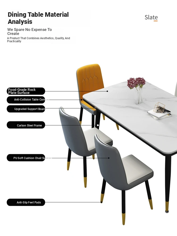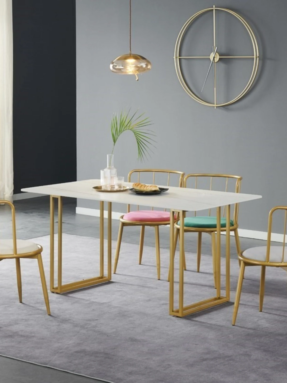 Modern Minimalist Luxury Rectangular Dining Table Set with Stone Surface for Small Spaces – Ideal for Stylish Homes and Cozy Dining Experiences