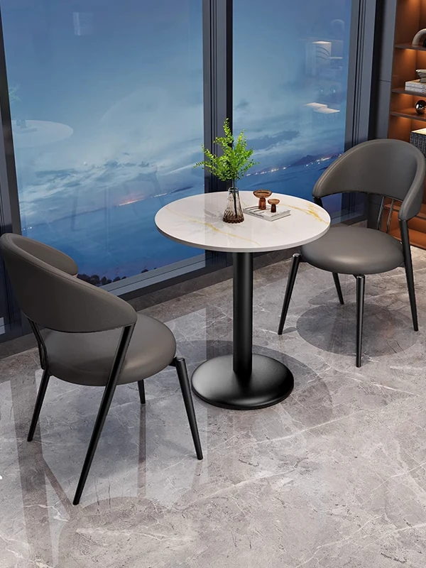 Stylish Luxury Ceramic Reception Table and Chair Set for Beauty Salons - Perfect for Relaxation Areas, Meeting Spaces, and Cozy Balconies with Small Round Tables and Chairs.