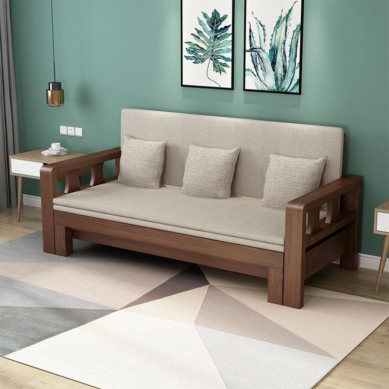 "Free Home Delivery in Hong Kong - Versatile Chinese Solid Wood Sofa Bed, Foldable for Dual Use as Sofa and Bed, Perfect for Small Living Spaces, Available in Single and Double Sizes"