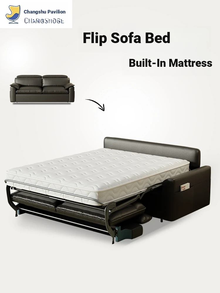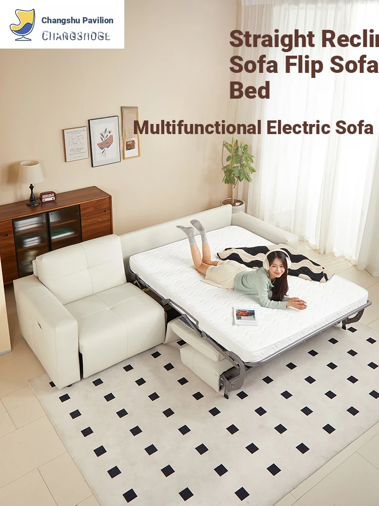 Premium Genuine Leather Convertible Sofa Bed - 2025 New Model, Foldable 2-in-1 Multifunctional Electric Sofa for Living Room