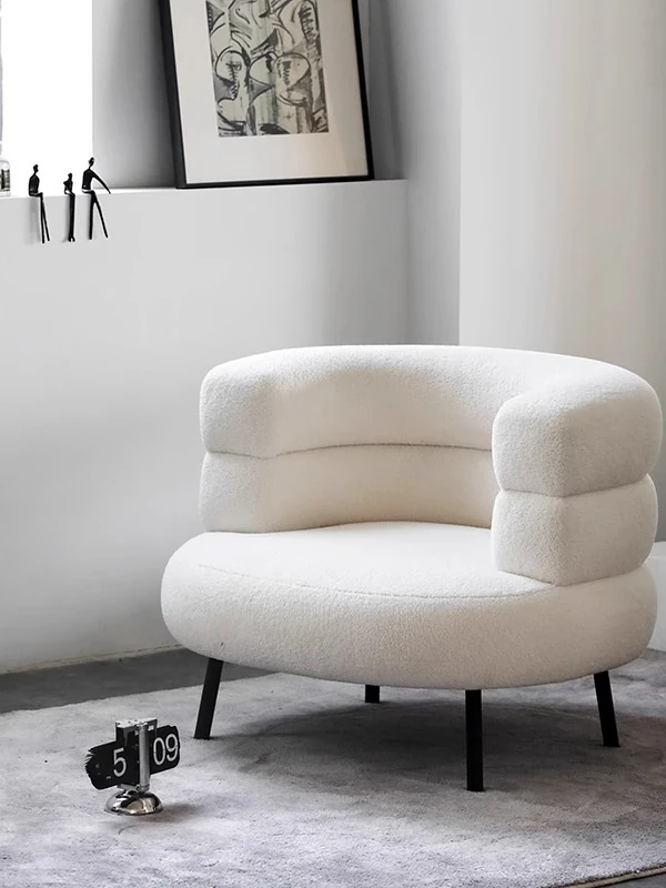 Creamy Minimalist Luxury Leisure Chair - Cozy Creative Sofa for Balcony or Living Room, Single Lamb Fleece Armchair, Perfect for Relaxation
